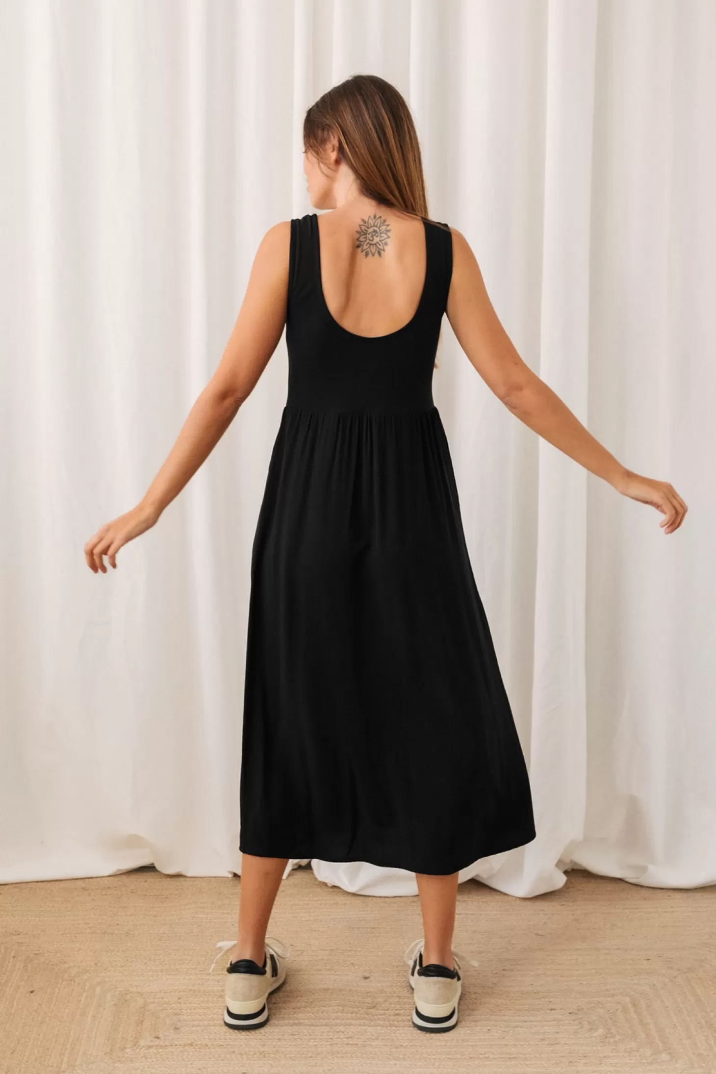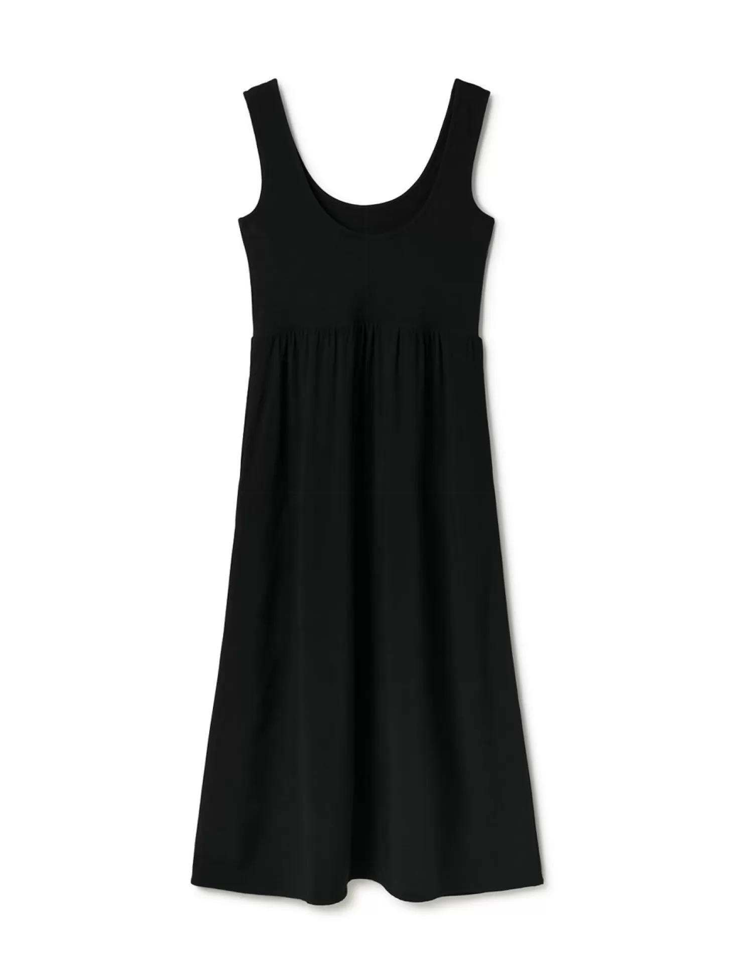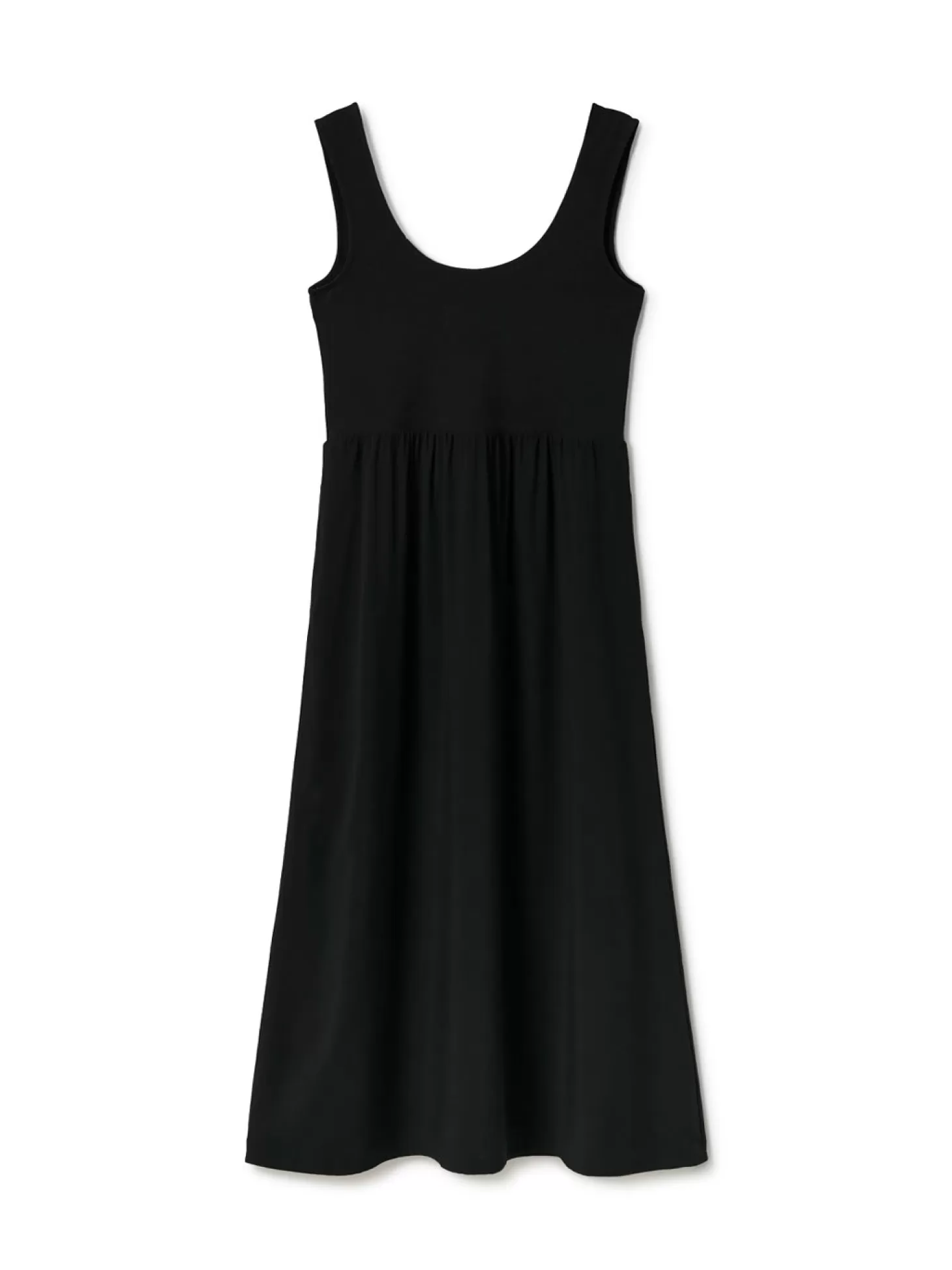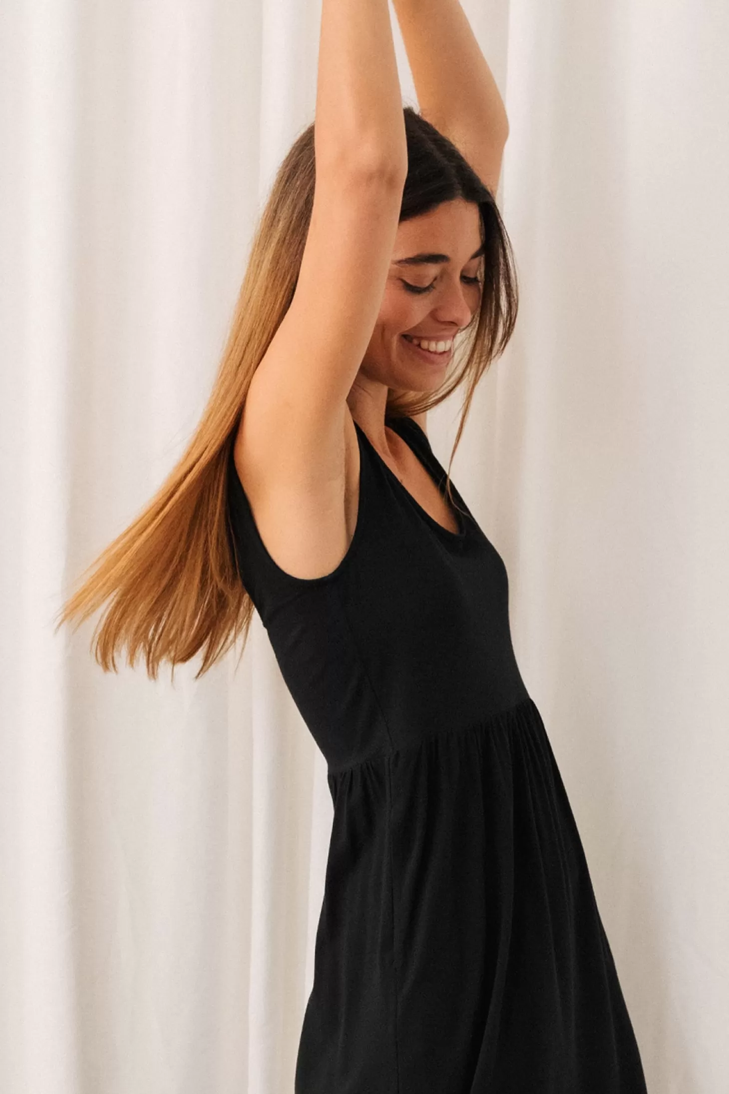 Die obere Hälfte des Soisalo besteht aus dem weichsten Bio-Jersey-Stoff, während die untere Hälfte aus der umweltfreundlichsten Viskose besteht, die es gibt. Es verfügt über eine schöne Scoop-Rückenlinie.