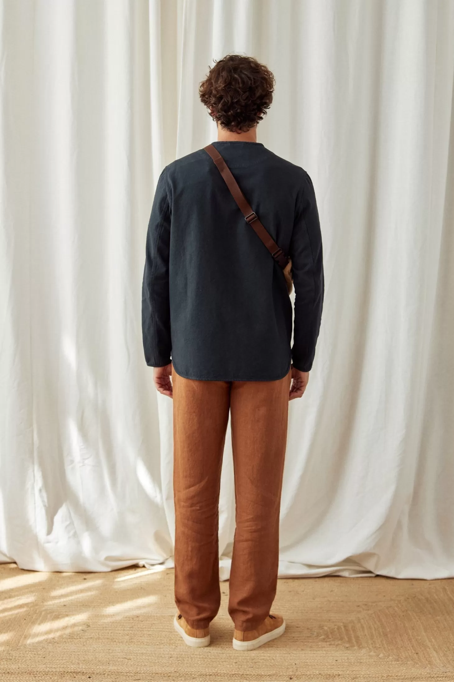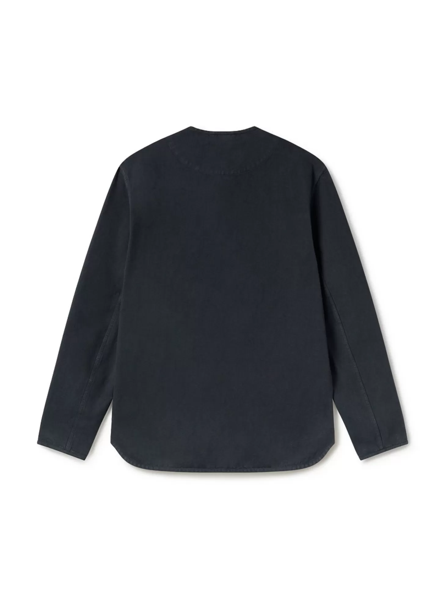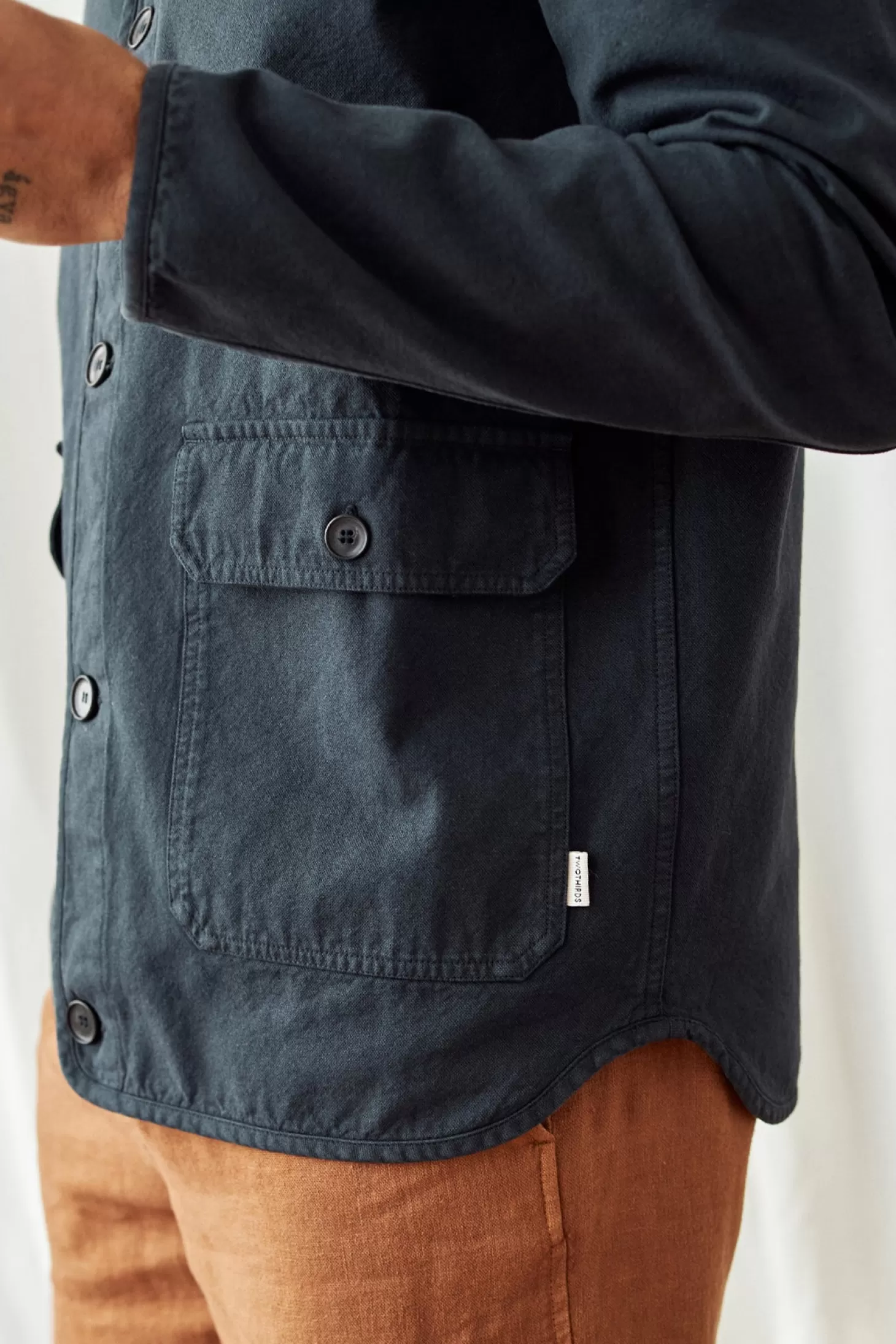Eine leichte Canvas-Jacke, die den umweltfreundlichsten Stoff aus Altbeständen mit atemberaubenden Designmerkmalen wie einem kragenlosen Ausschnitt und zwei Vordertaschen kombiniert.
