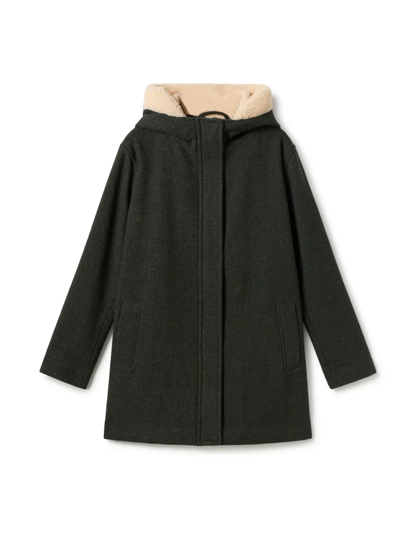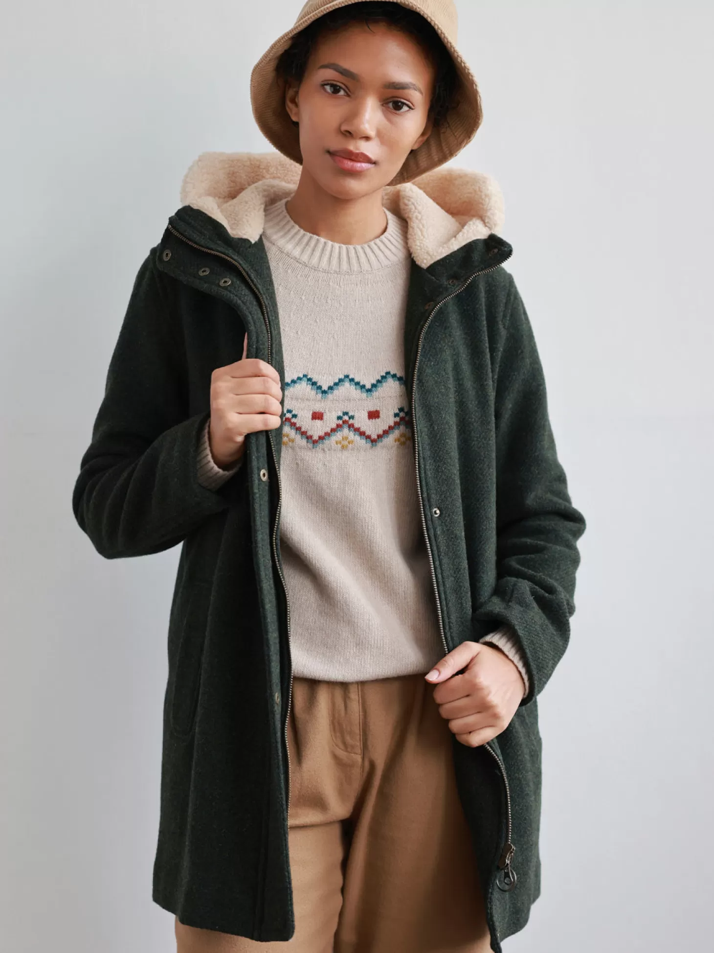 Nickelfreie Druckknöpfe schließen die Knopfleiste dieser umweltfreundlichen Jacke und sorgen zusammen mit der mit Sherpa-Fleece gefütterten Kapuze und den verstärkten Leistentaschen dafür, dass du dich bei jedem Wetter wohlfühlst.