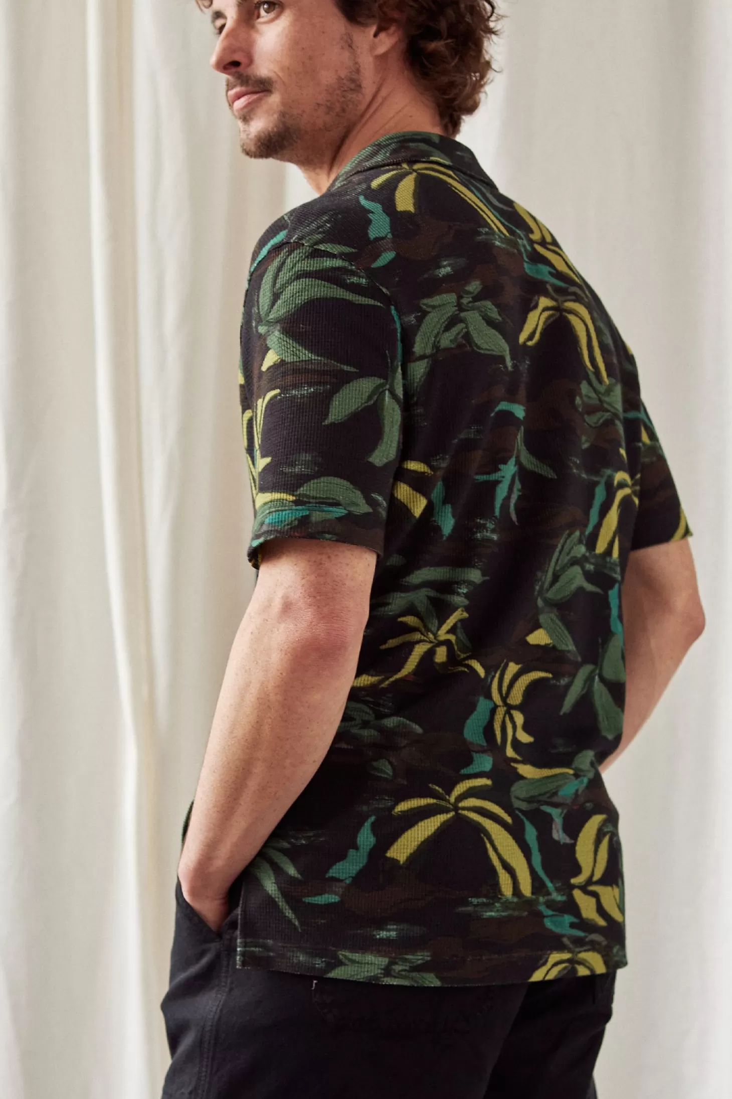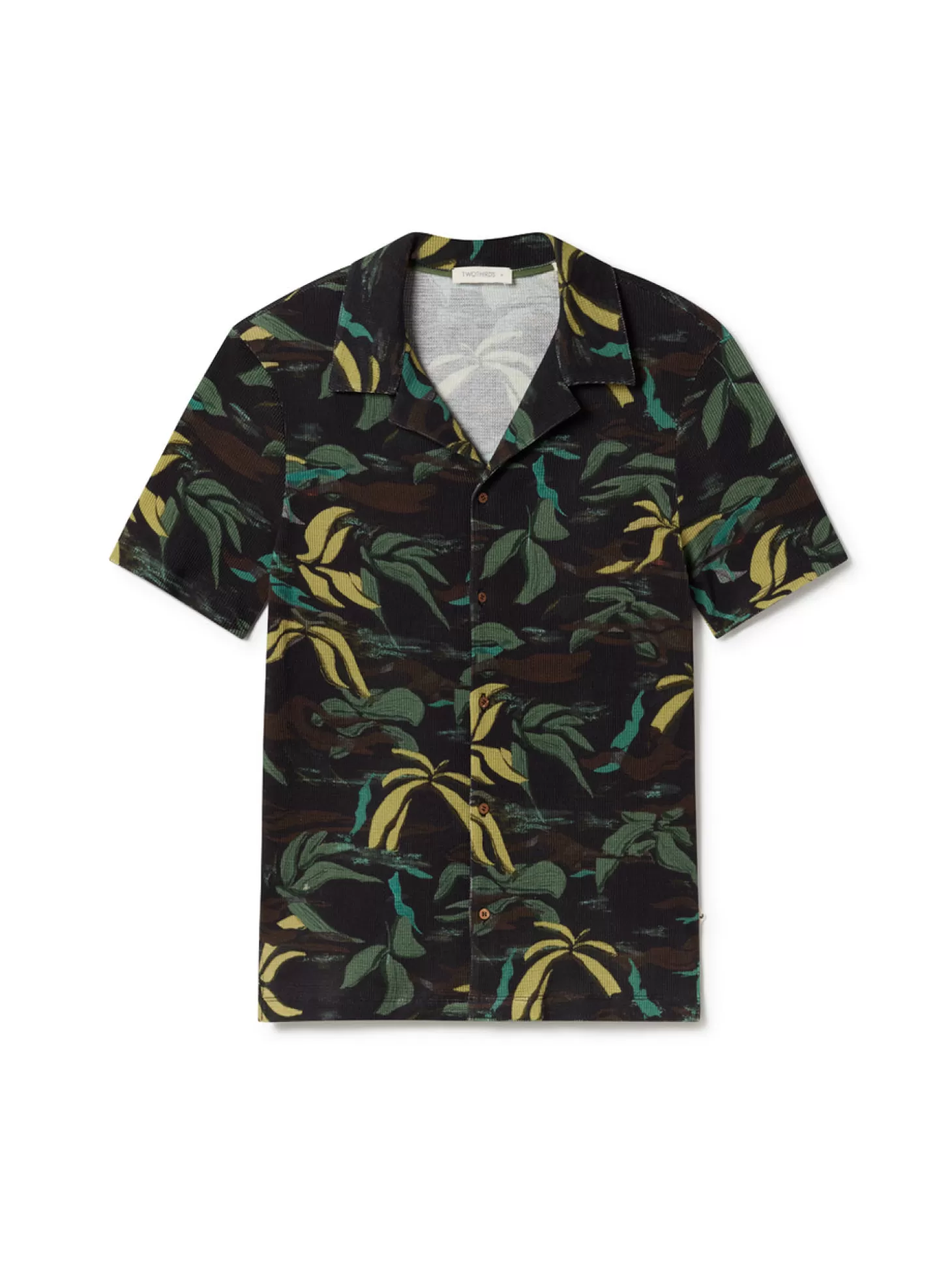 Ein Guayabera-Sommerhemd aus Mikrowaffelstoff, so atmungsaktiv, dass du überall Strandstimmung mit hinnehmen kannst. Digital bedruckte Palmen zieren die Vorder- und Rückseite.