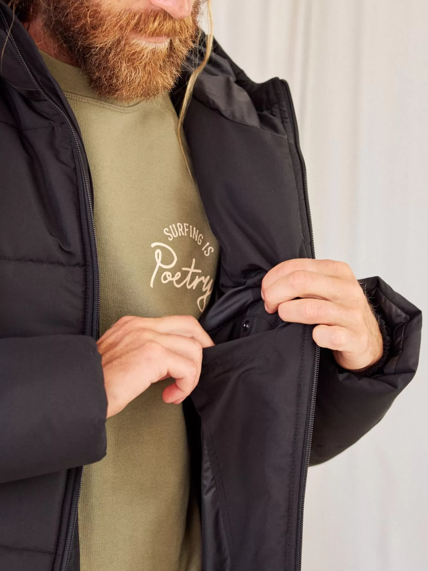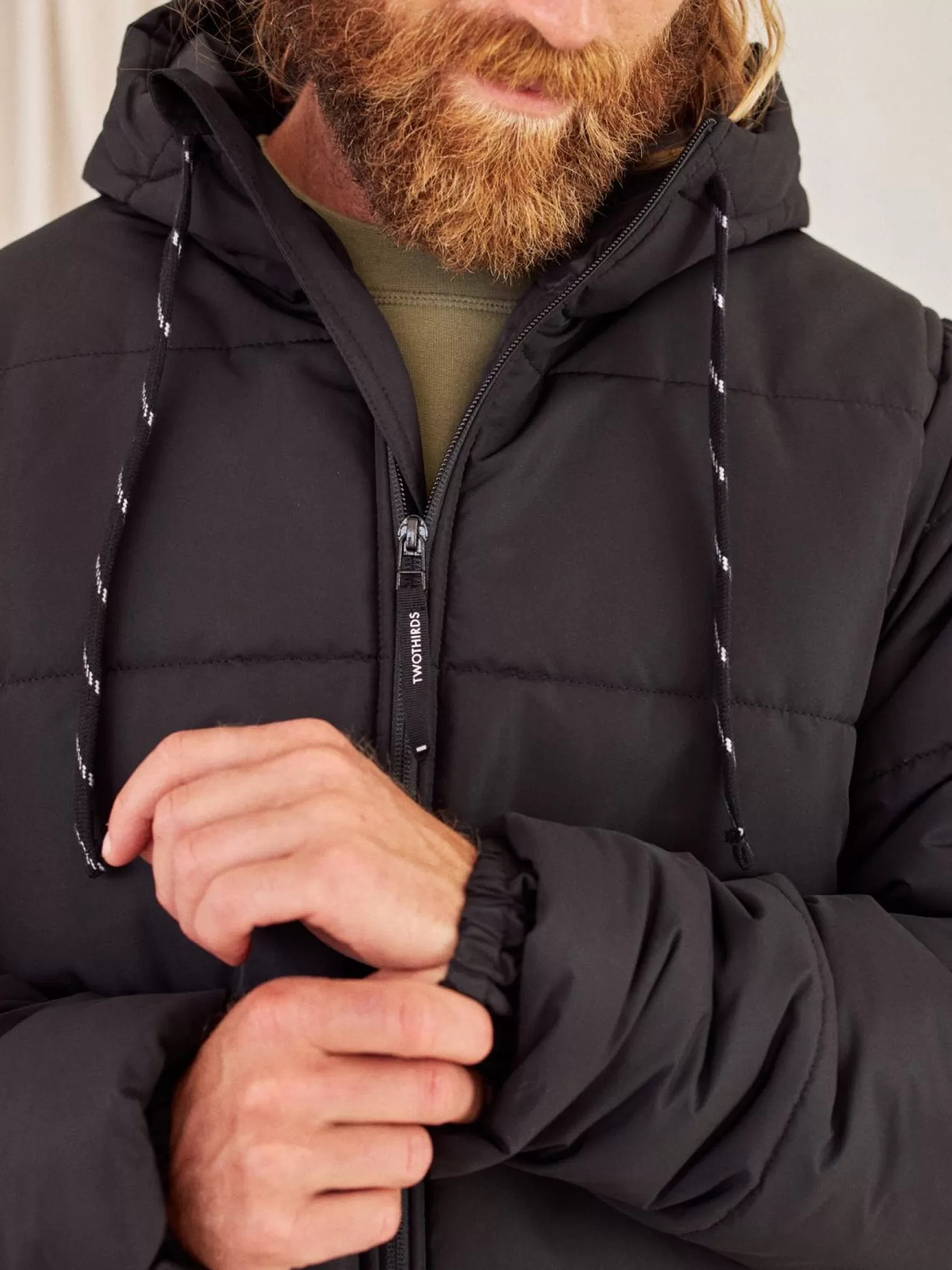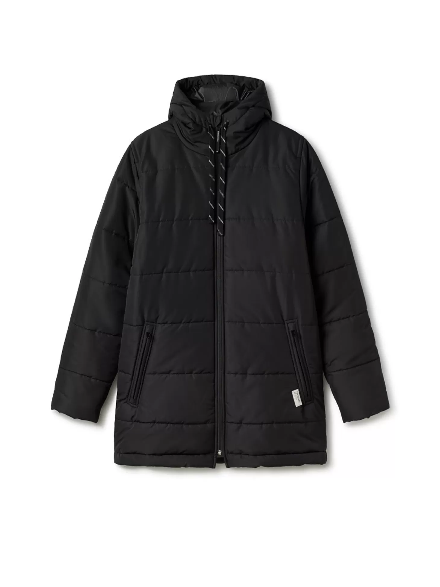 Die Mokongai-Steppjacke weist den Winter in die Schranken. Sie nutzt die Kraft von recyceltem Kunststoff und verfügt über drei Taschen, einen hohen Kragen und eine Kapuze mit Kordelzug sowie elastische Bündchen.