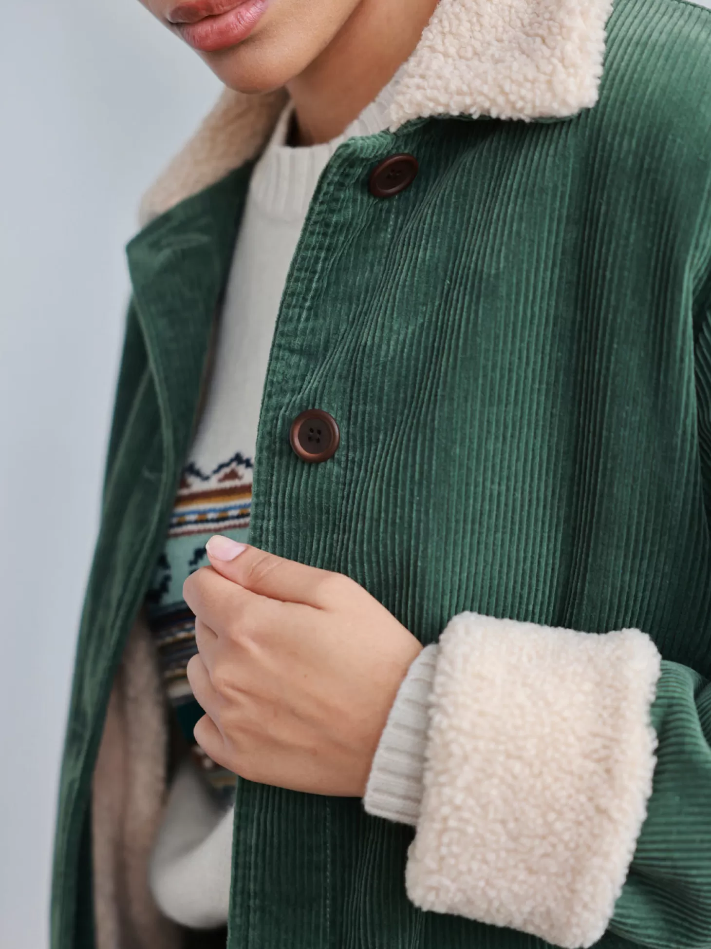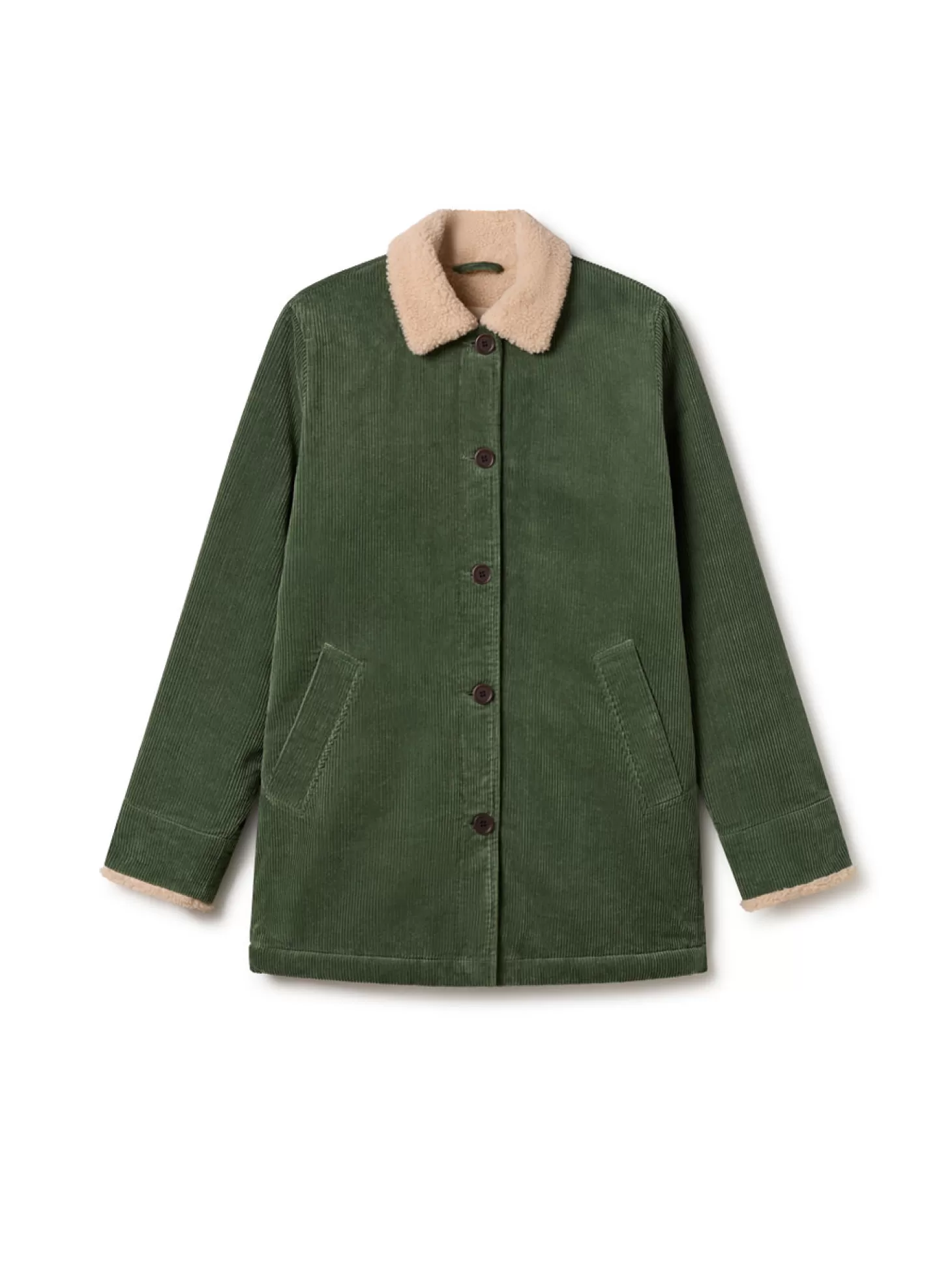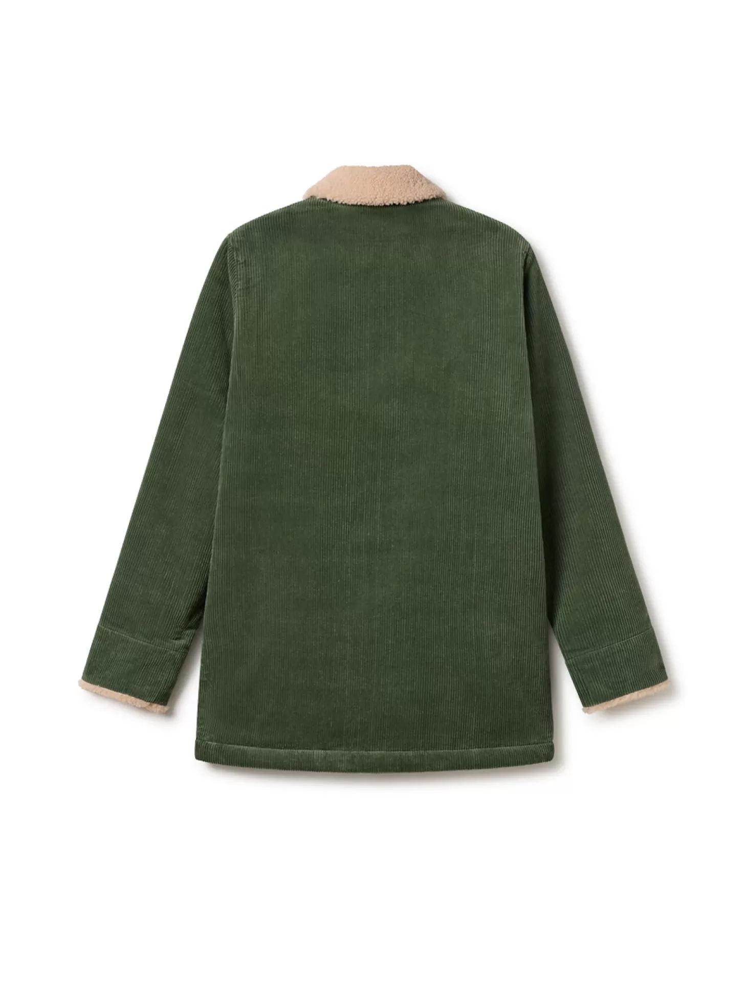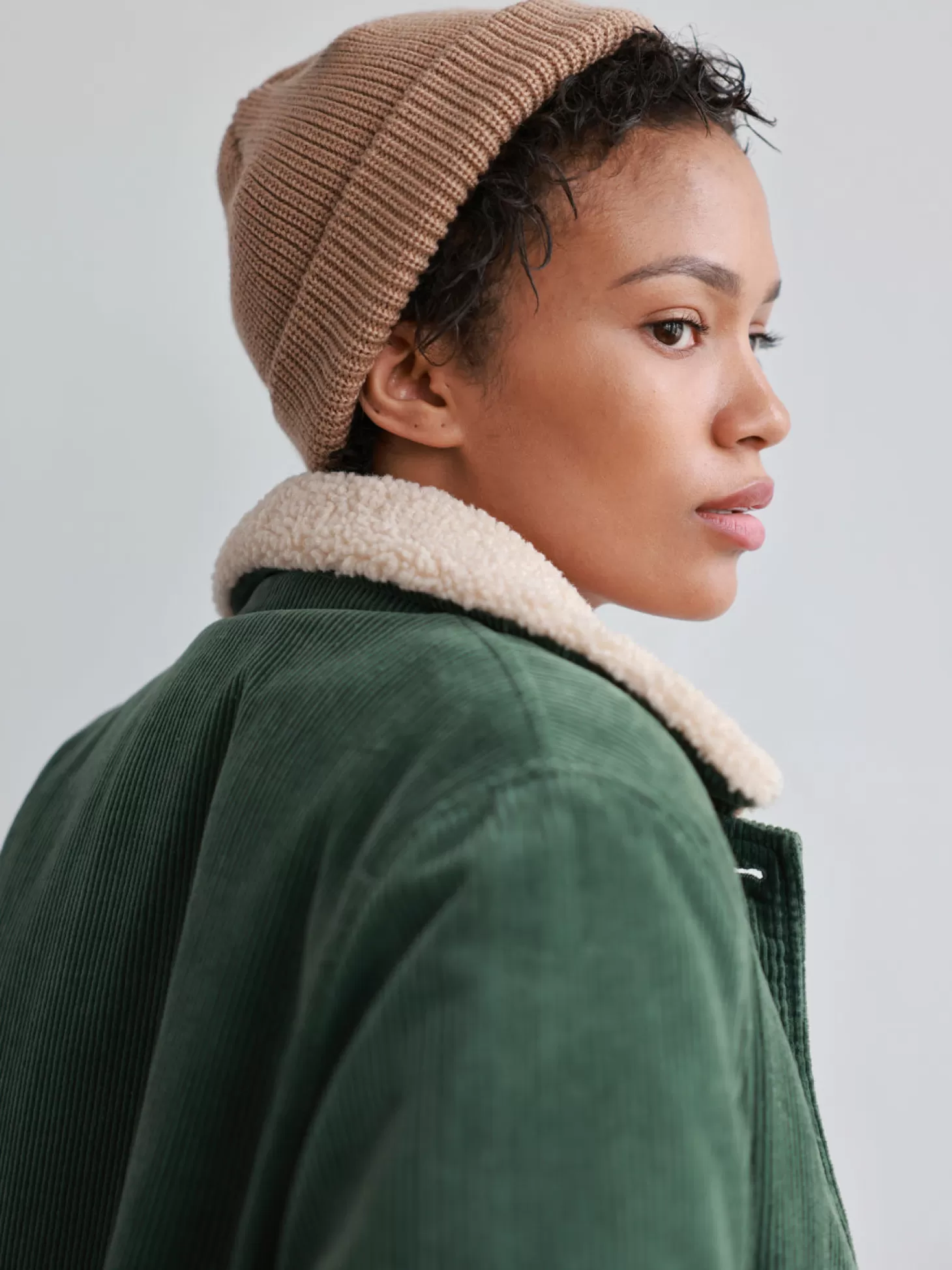 Die Russell ist eine mittelschwere, nachhaltige Jacke mit zwei Druckknopftaschen und Ärmelbündchen, die für mehr Stil oder Komfort auch hochgekrempelt werden können.