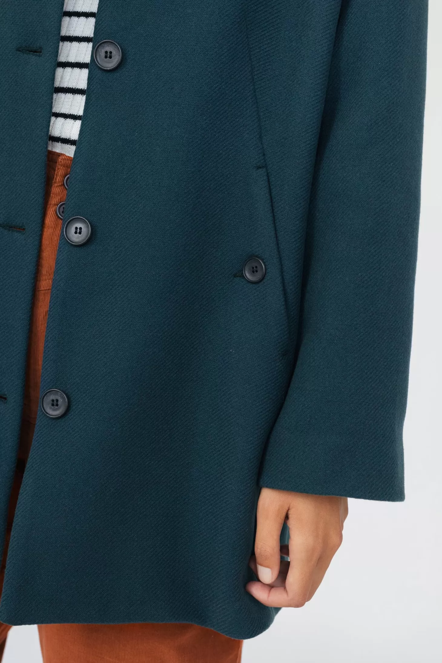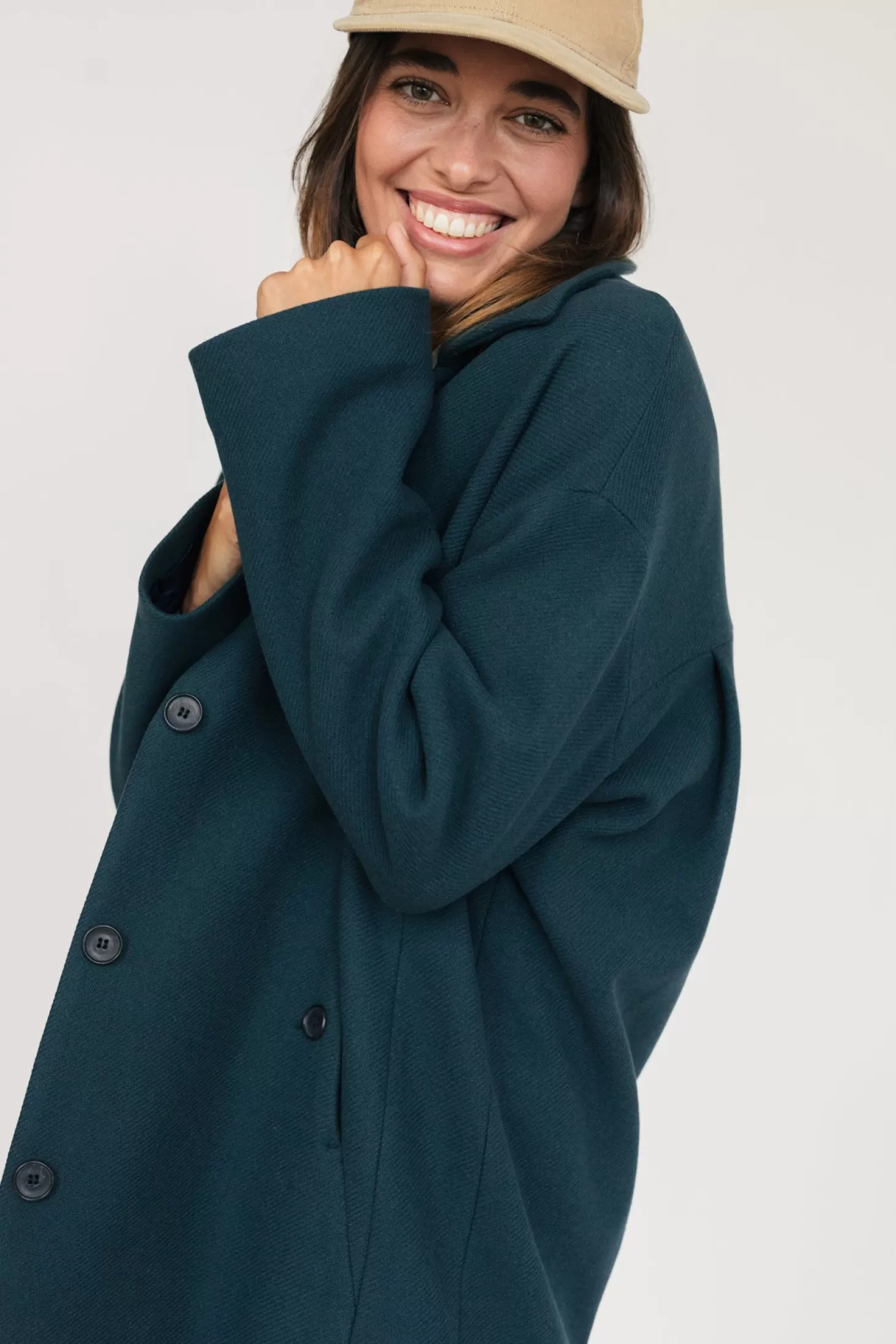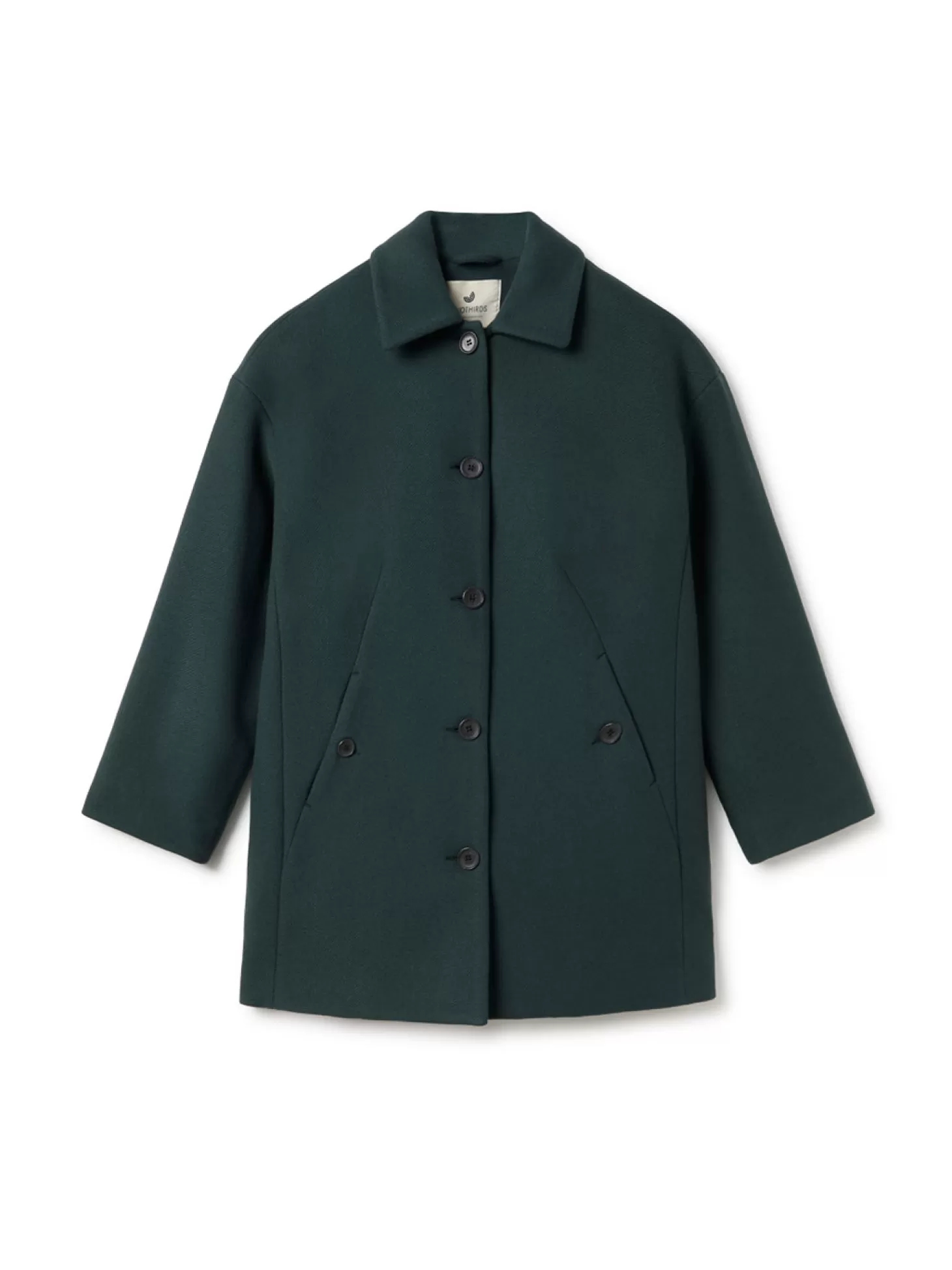 Spezieller doppelt spaltbarer italienischer Stoff kombiniert die besten Eigenschaften hochwertiger Schurwolle und recycelter Materialien und kreiert so den Scilly, einen zeitlosen mittelschweren Mantel mit zwei Vordertaschen.