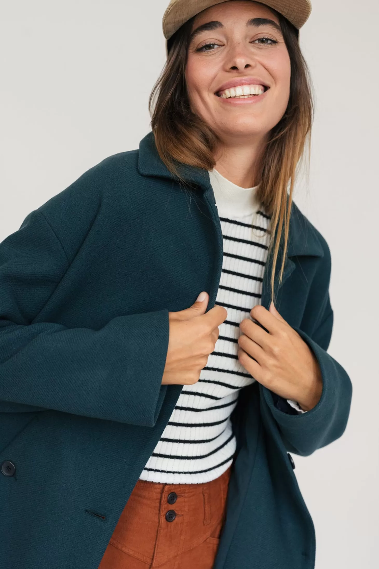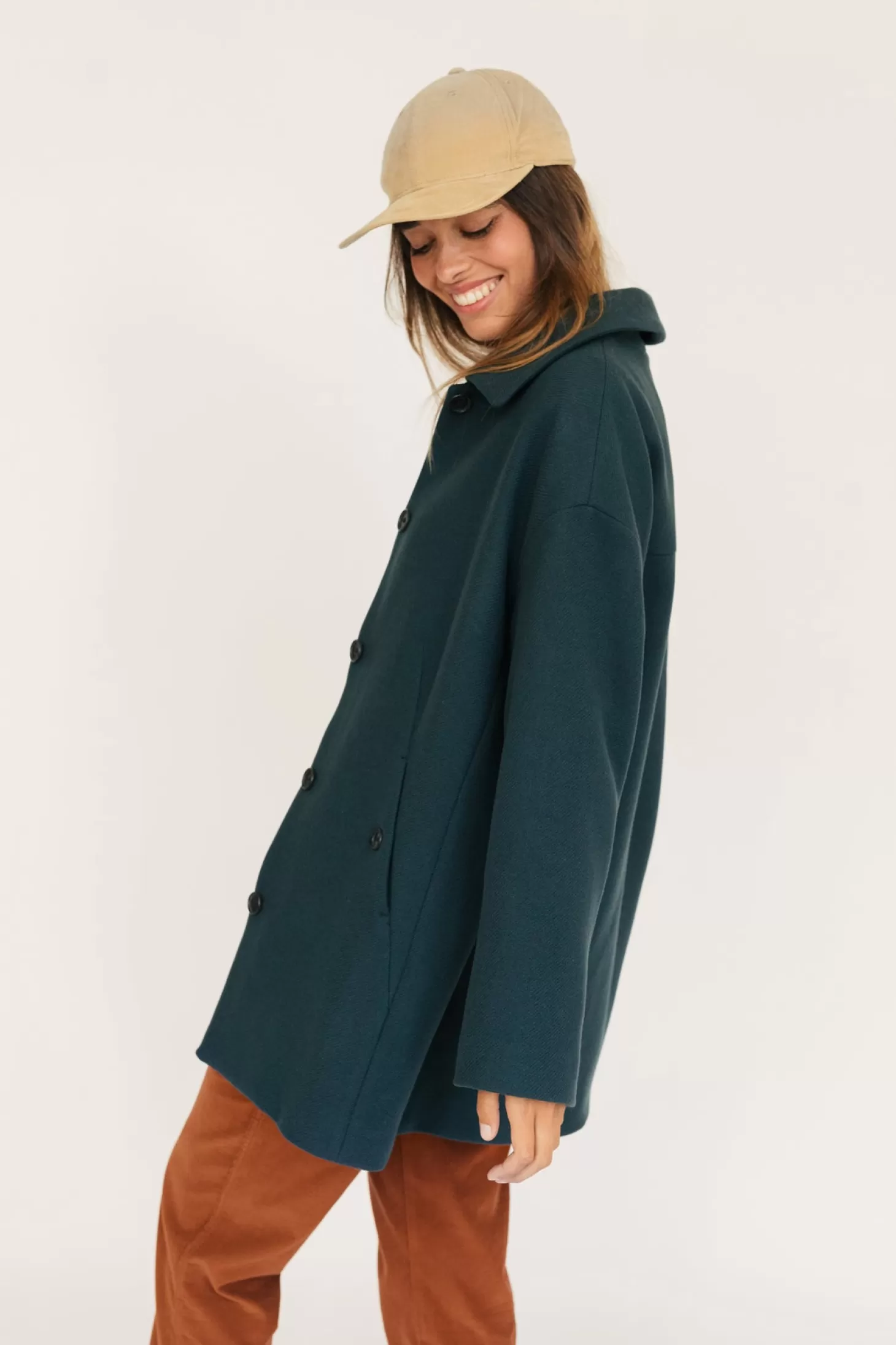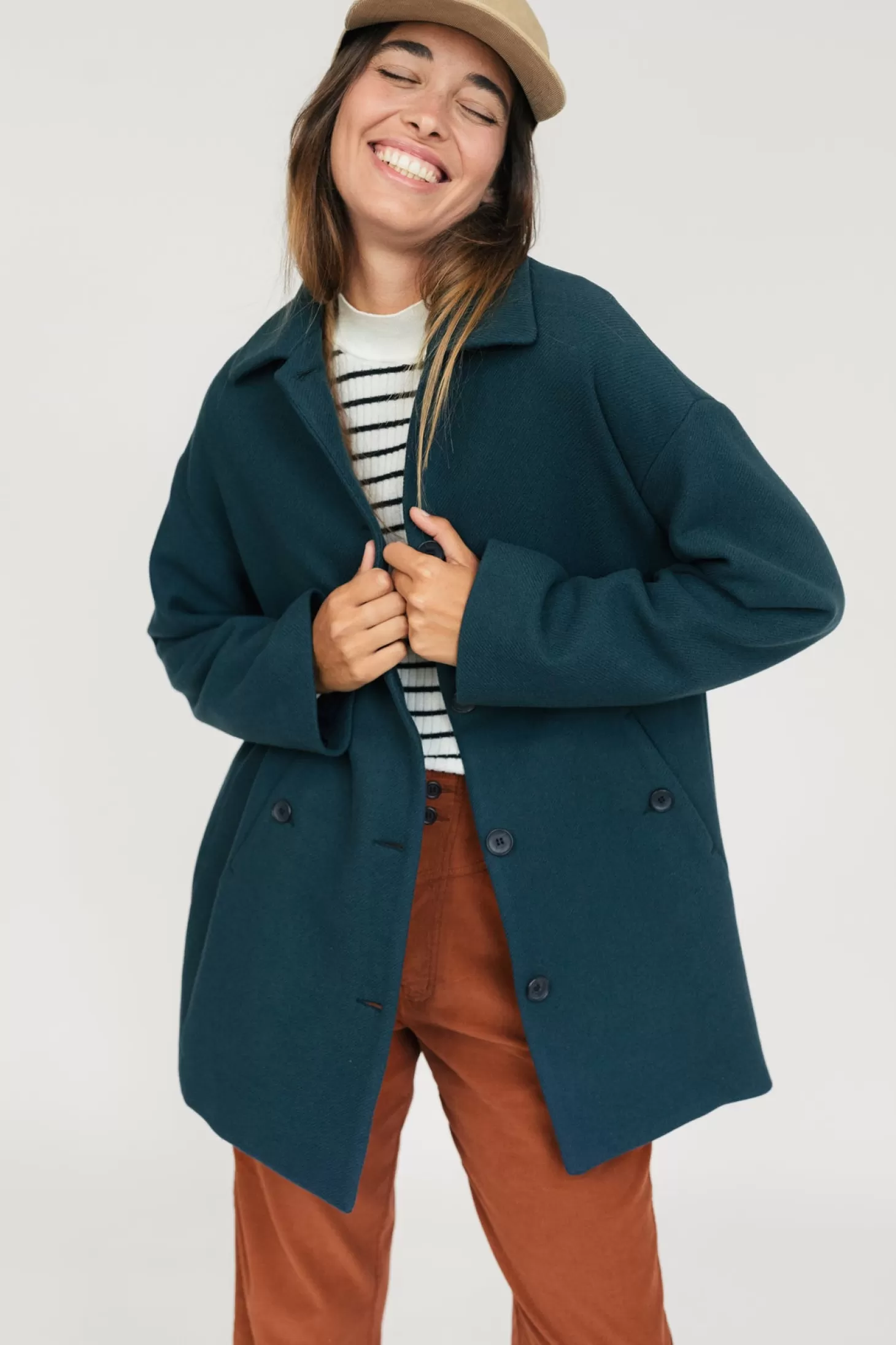 Spezieller doppelt spaltbarer italienischer Stoff kombiniert die besten Eigenschaften hochwertiger Schurwolle und recycelter Materialien und kreiert so den Scilly, einen zeitlosen mittelschweren Mantel mit zwei Vordertaschen.
