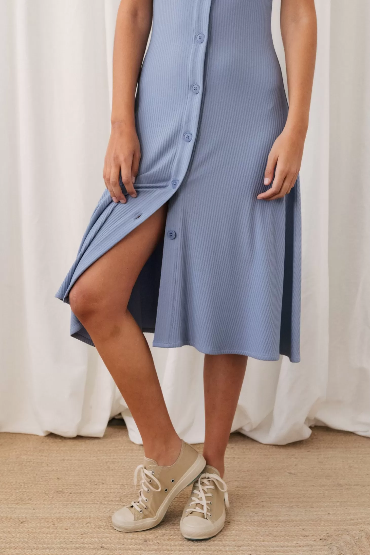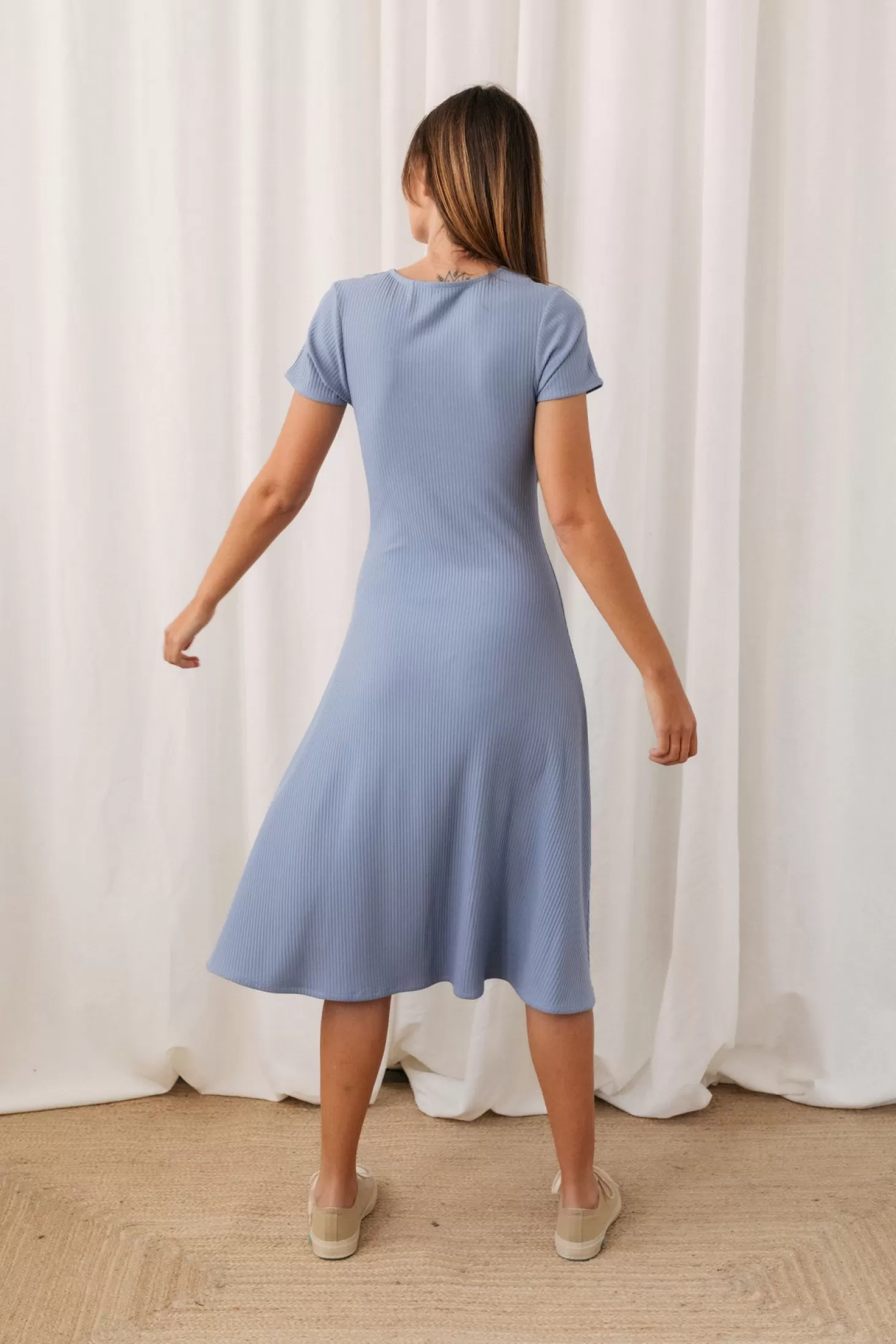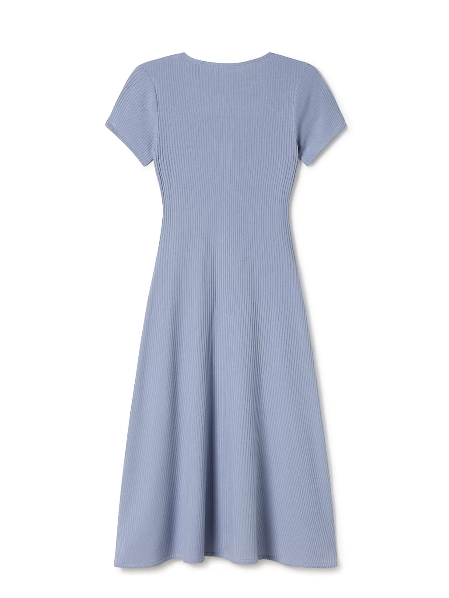 Das nachhaltige Kleid Varpasalo besteht aus den glattesten, leichtesten, atmungsaktivsten und flexibelsten Viskosefasern und verfügt über ein fühlbares vertikales Rippendesign, das sanft zur Haut ist.
