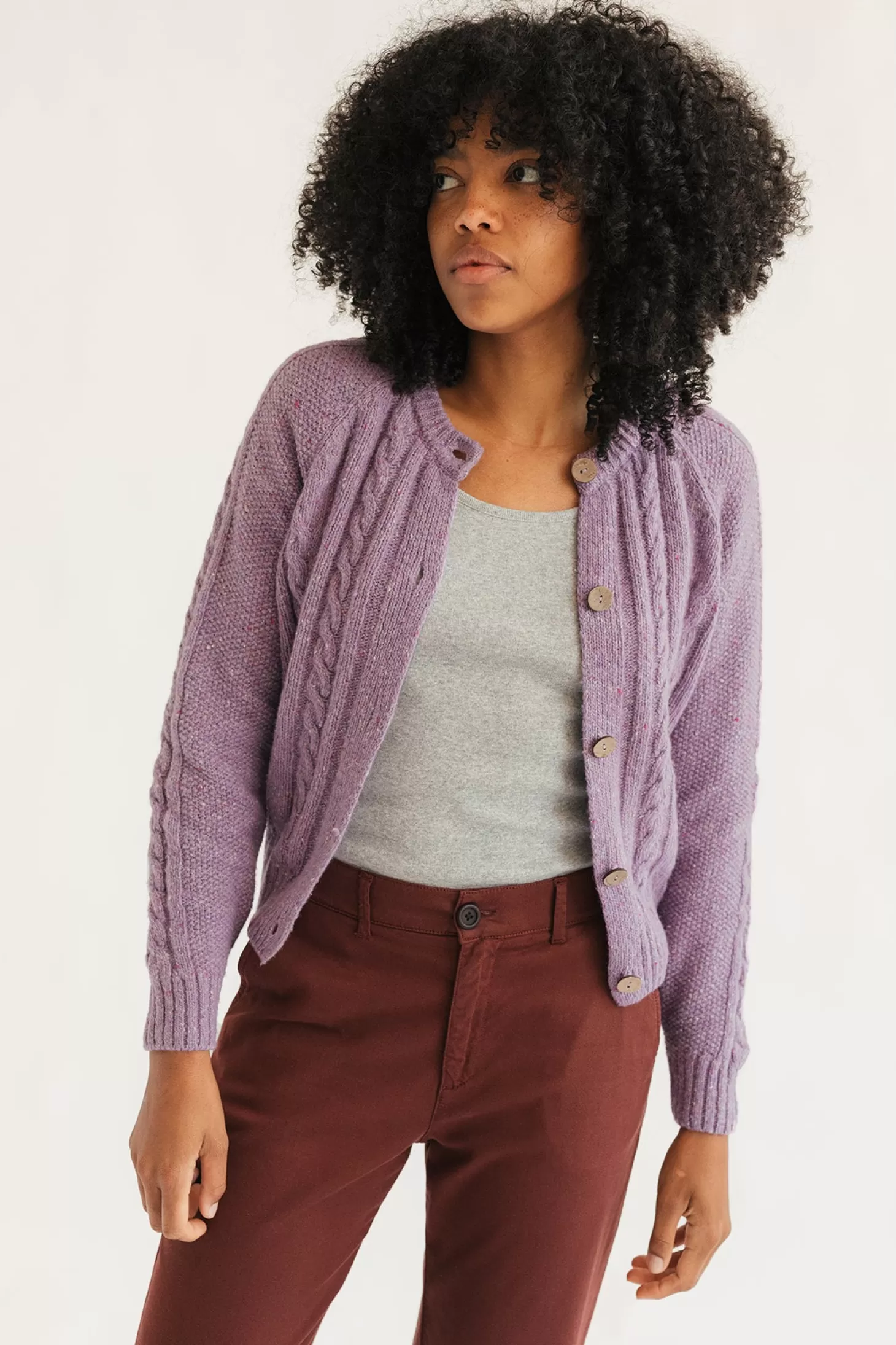 An eye-catching Aran knit design combines with striking colours and nep-infused yarn to create the Taborcillo ethical cardigan. Beautifully fashioned raglan sleeves combine with ribbed edges.