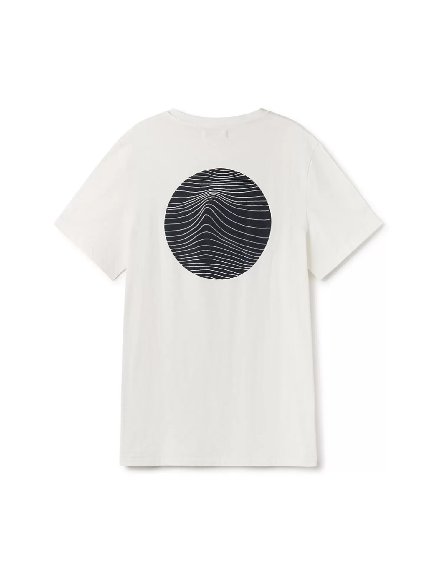 Das Barbeira-T-Shirt verkörpert unsere Liebe zum Meer. Entworfen in einer schlichten Farbe und im Standardstil, mit der Aufschrift „We are Ocean“ auf der Brust und einem kreisförmigen dunkelblauen Aufdruck, der Meereswellen imitiert.
