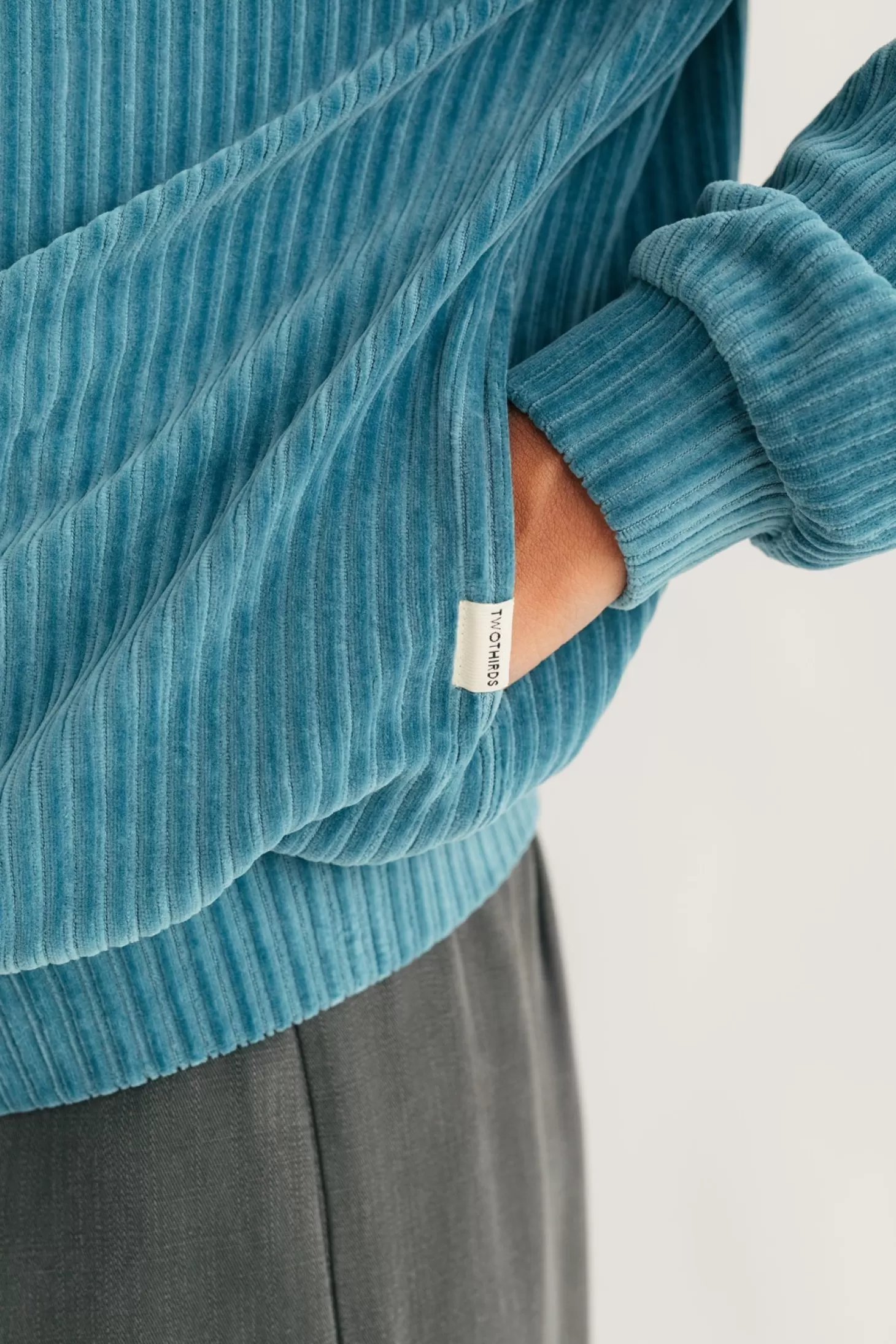 Das Fram ist ein leichtes, nachhaltiges Sweatshirt mit Reißverschluss, das vielseitig genug ist, um auch als umweltfreundliche Jacke zu dienen. Es hat die weichsten vertikalen Rippen und unser gesticktes Wal-Logo.