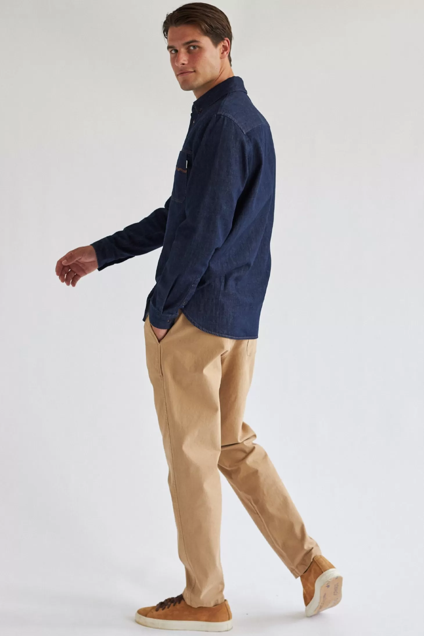 Es gibt Bio-Jeanshemden und dann gibt es unser nachhaltiges Hemd Horssten … Seine Denim-Stone-Wash-Optik und die dekorative, gewellte Naht auf der Tasche bedeuten, dass es einen legendären Status erlangen wird.