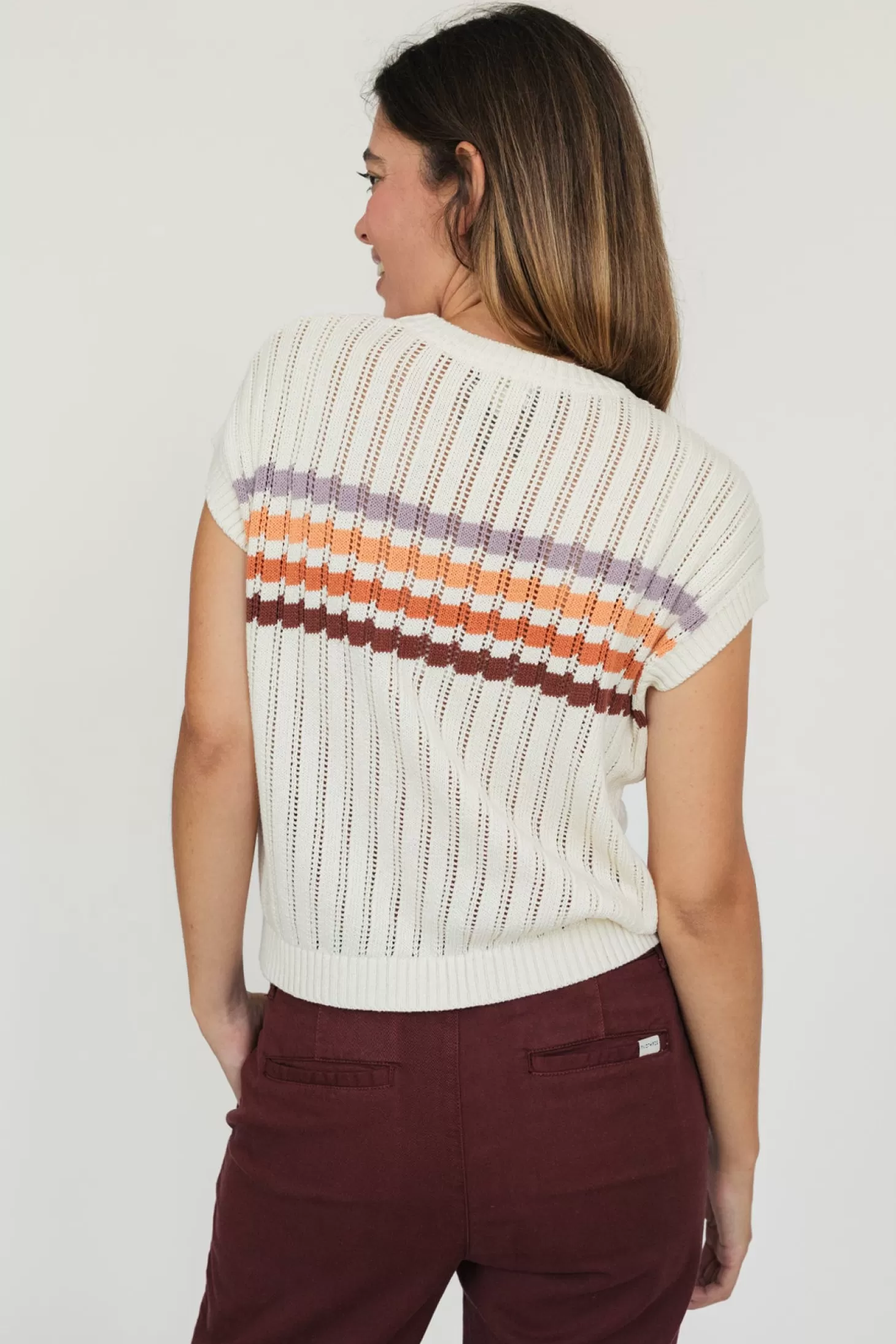 Boasting an openwork knit design, capped sleeves and beautiful stripes, the Motutapu is a piece that can be paired effor…