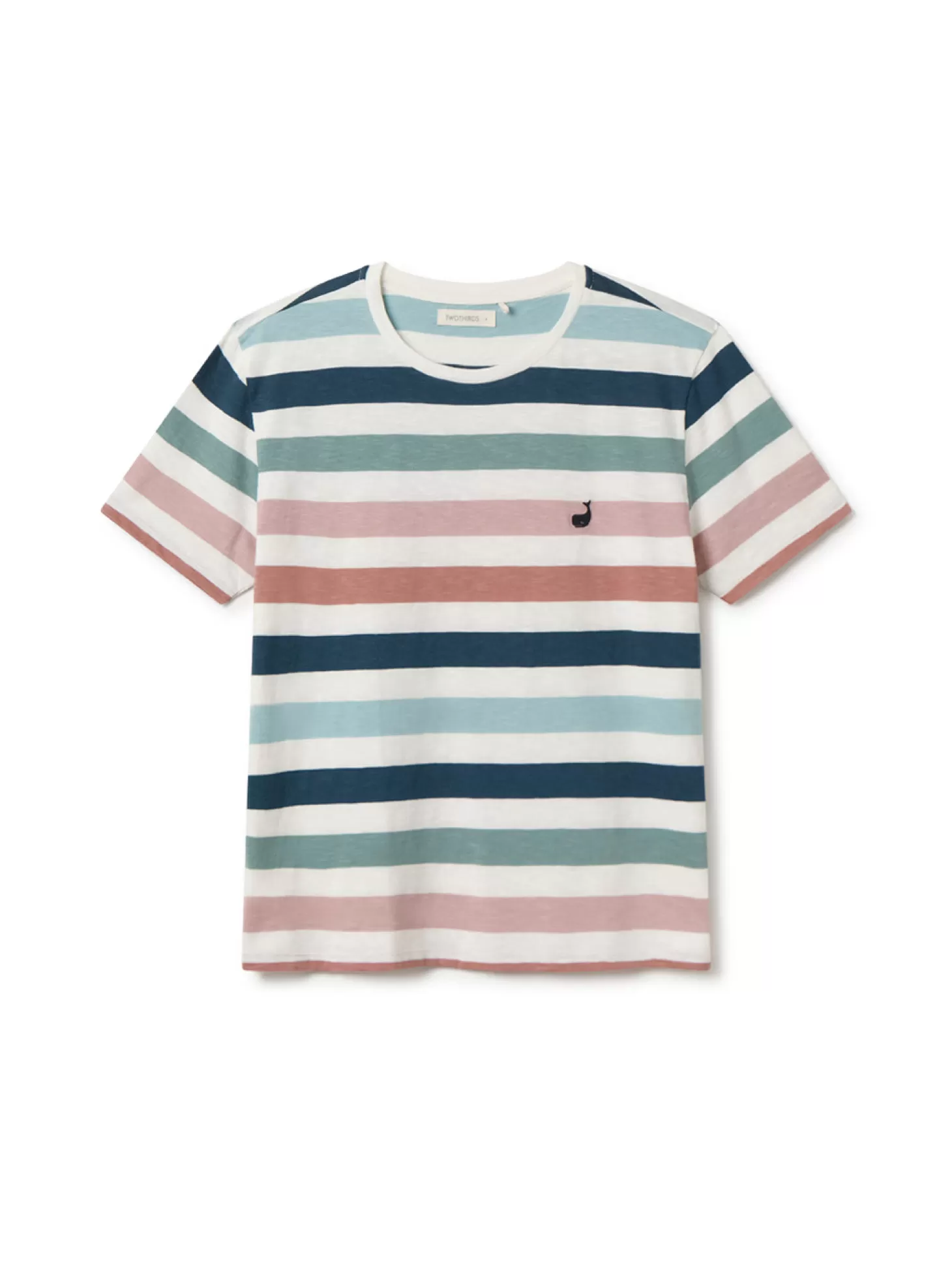 Ein klassisches TWOTHIRDS Sommershirt, dessen gedruckte Streifen bei jedem Stück wechseln, sodass dein Shirt zu 100 % einzigartig ist. Unser gestickter Wal und das weiche, leichte Material halten dich kühl.