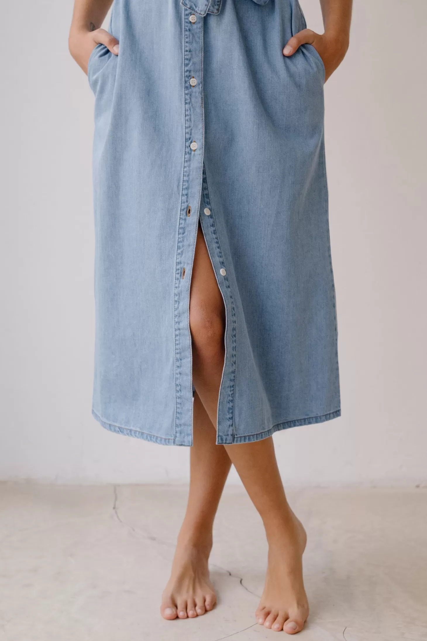 Unser berühmter Ocean Denim wurde jetzt zum nachhaltigsten und stilvollsten Kleid verarbeitet: dem Arapaoa, das mit einem passenden Gürtel und praktischen Seitentaschen geliefert wird.
