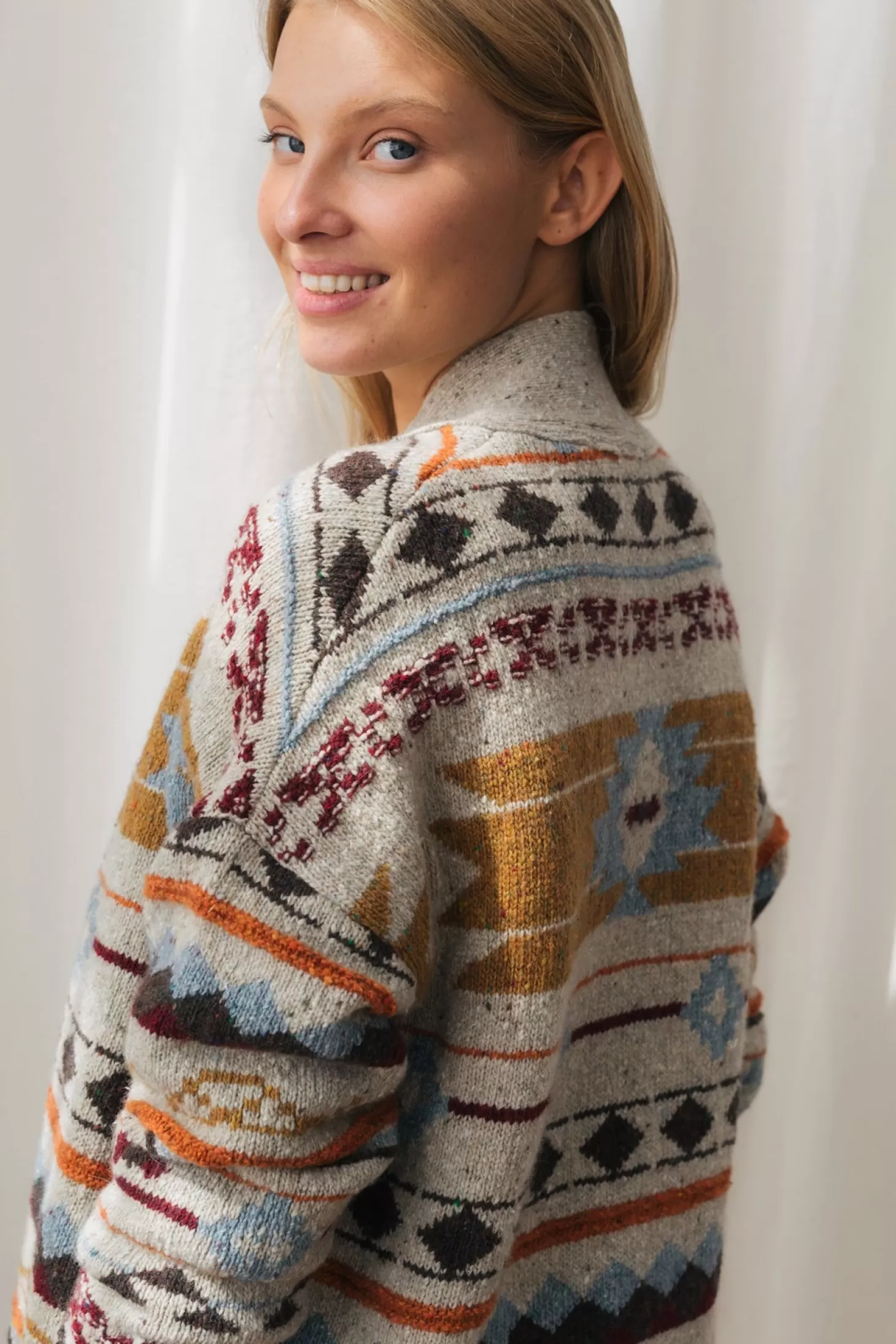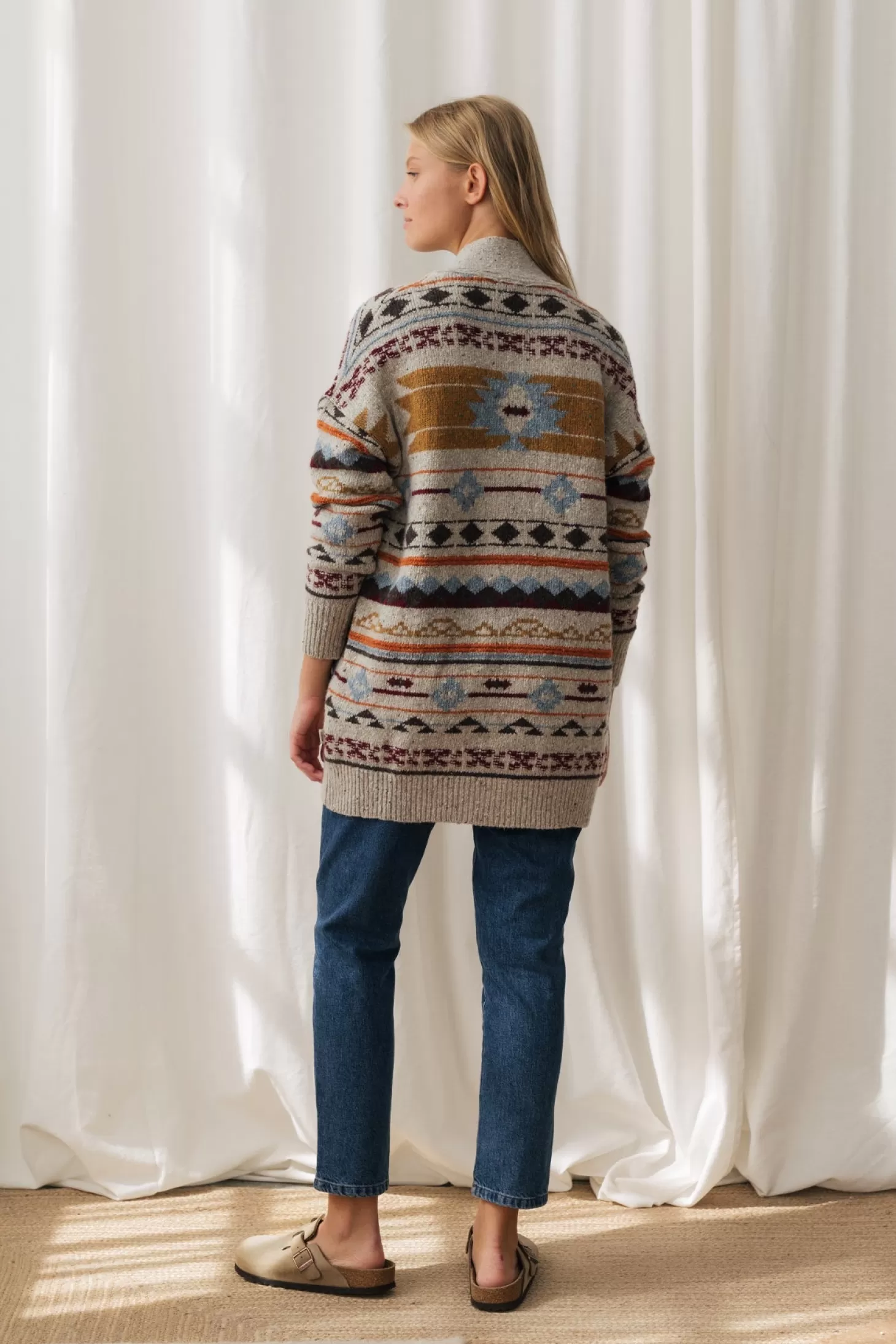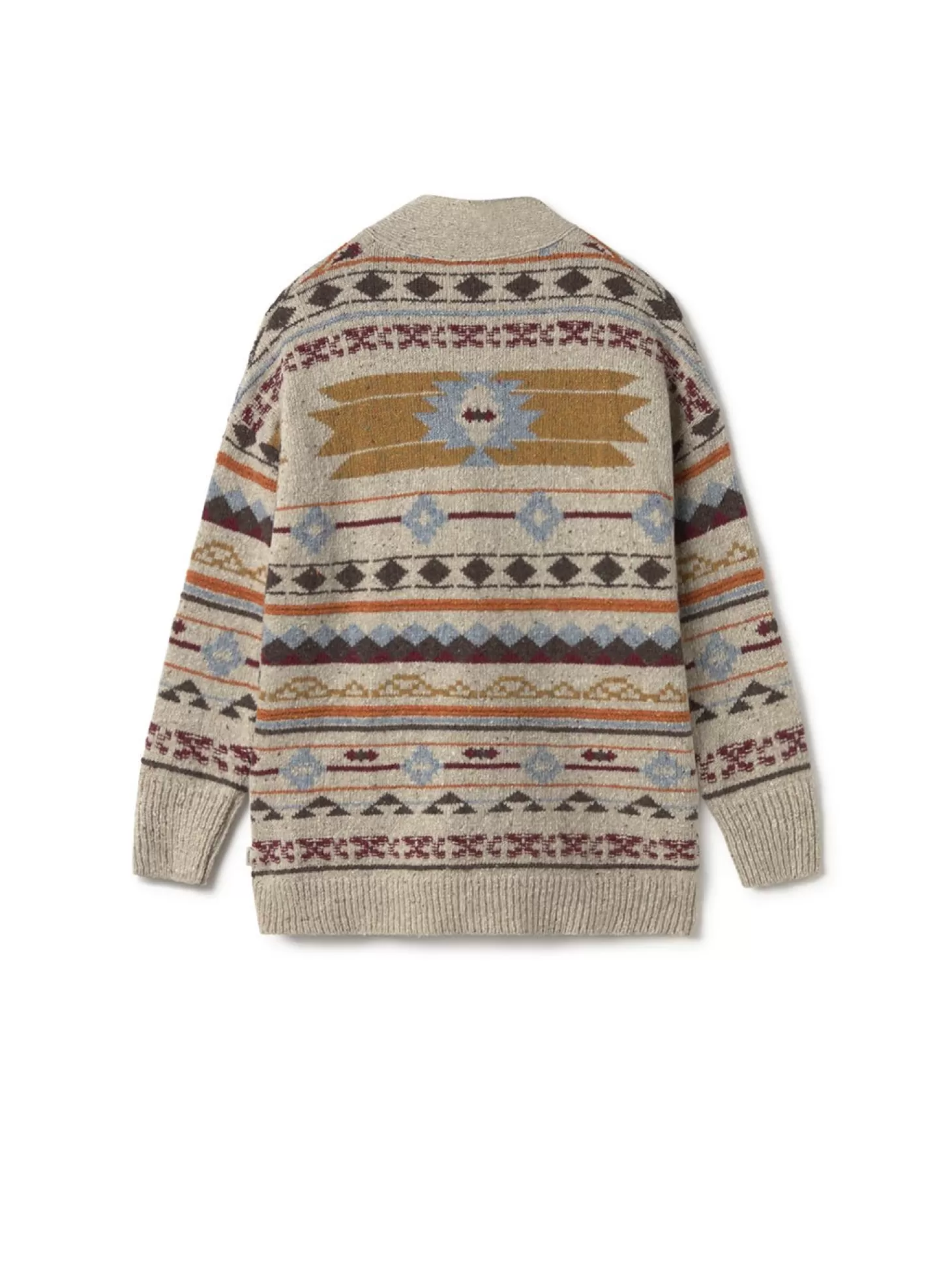 This jacquard sustainable cardigan comes with patterns designed to keep you as connected as possible to nature and the o…