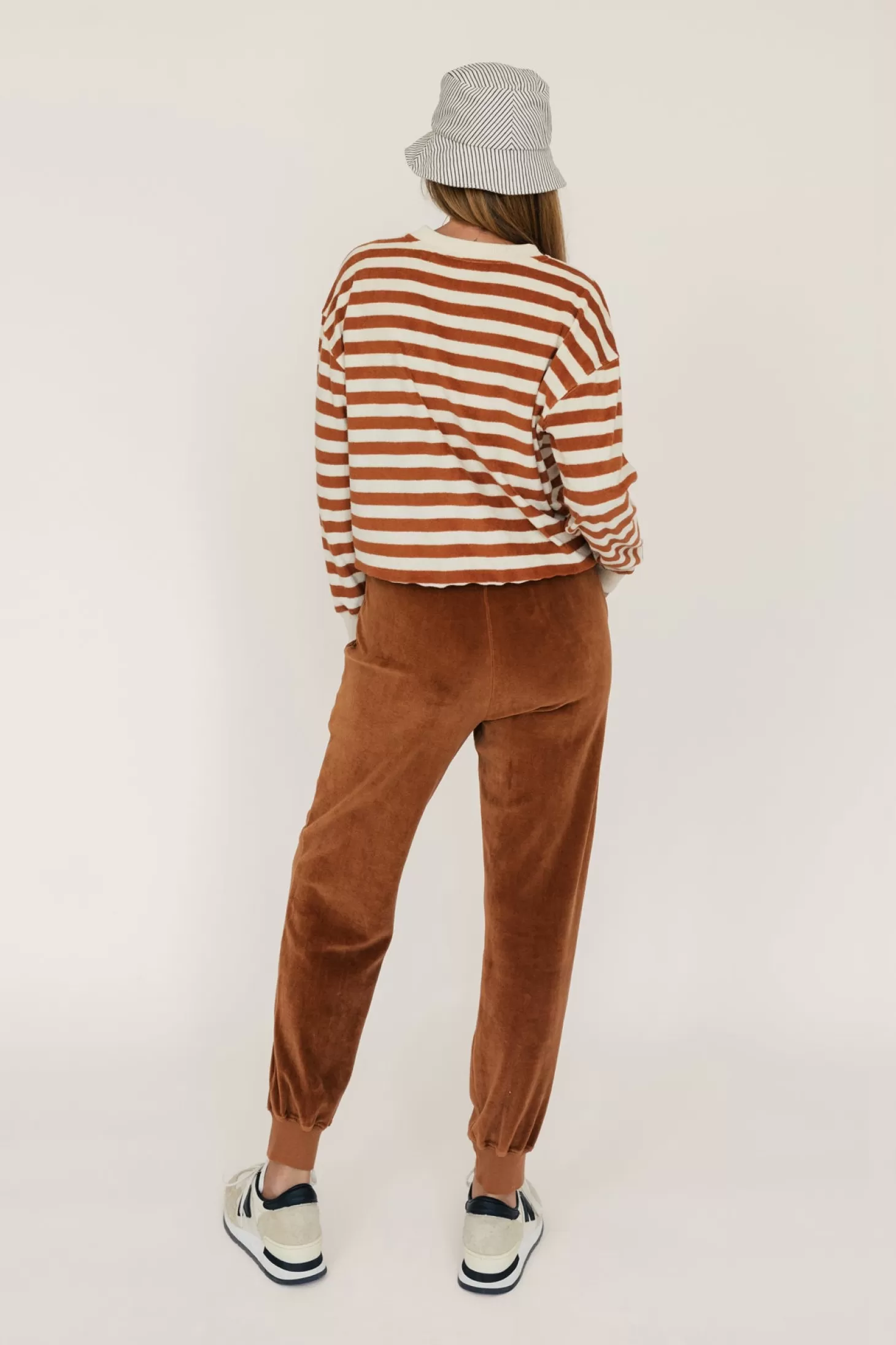 Die Krivus ist aus weichem Samtstoff gefertigt und eine nachhaltige Hose, die sich sowohl als umweltfreundliche Loungewe…