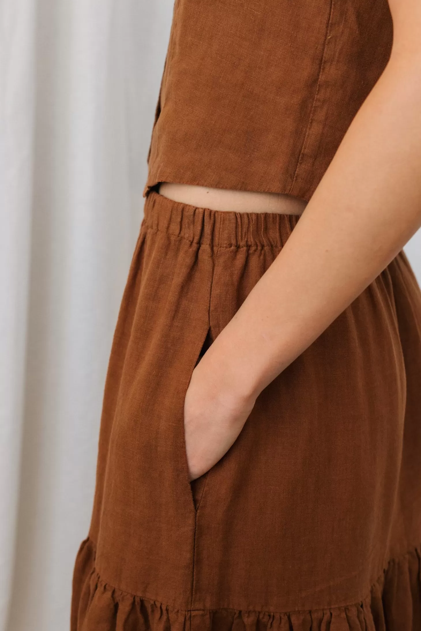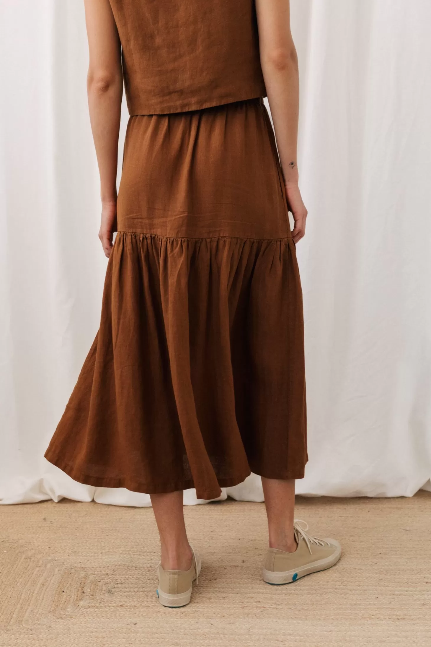 Wenn der Sommer vor der Tür steht, ist es ein wahres Vergnügen, in nachhaltige Leinenröcke zu schlüpfen. Der Lehman ist keine Ausnahme. Er verfügt über einen hochflexiblen Gummibund und zwei Seitentaschen.