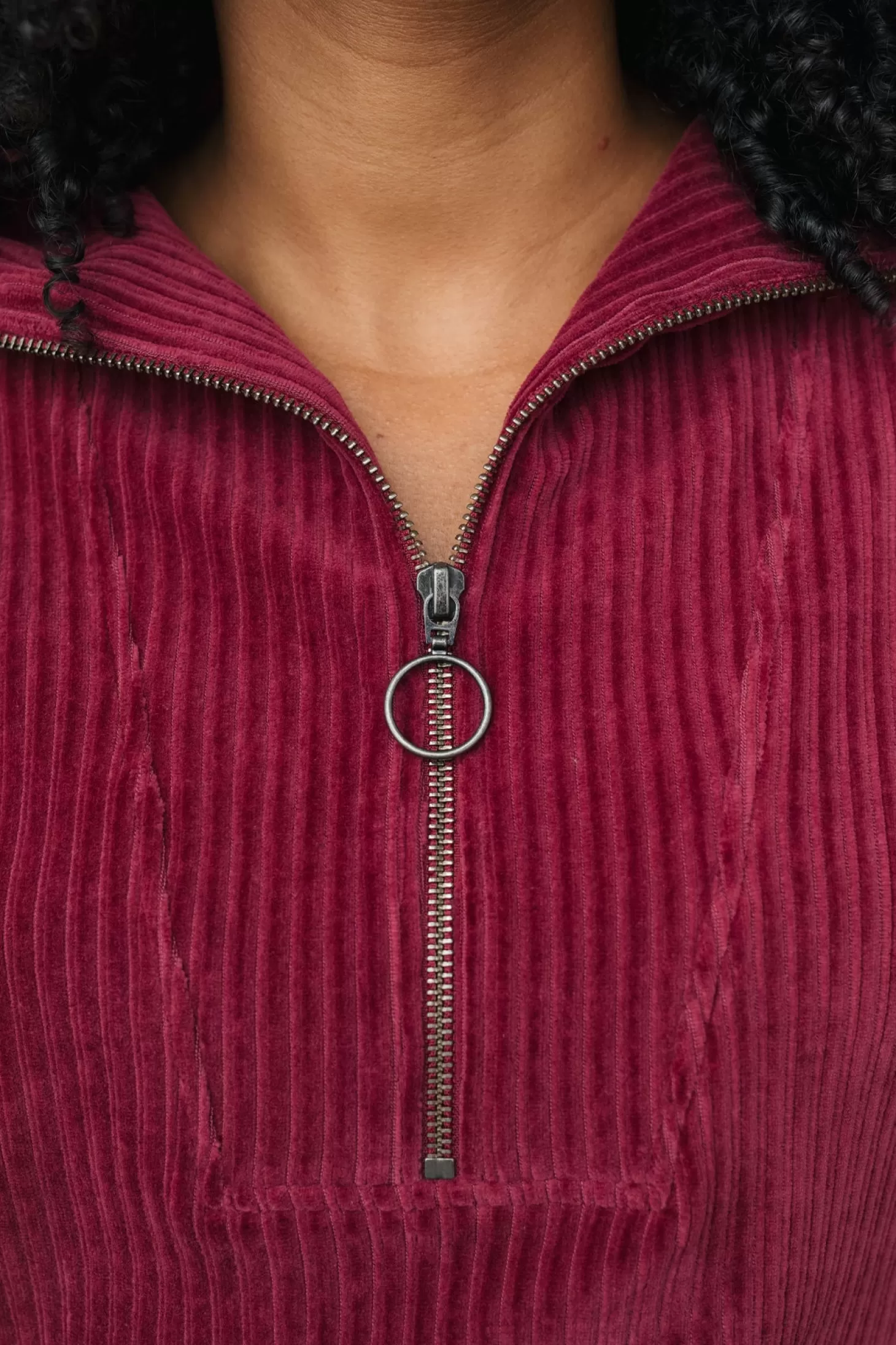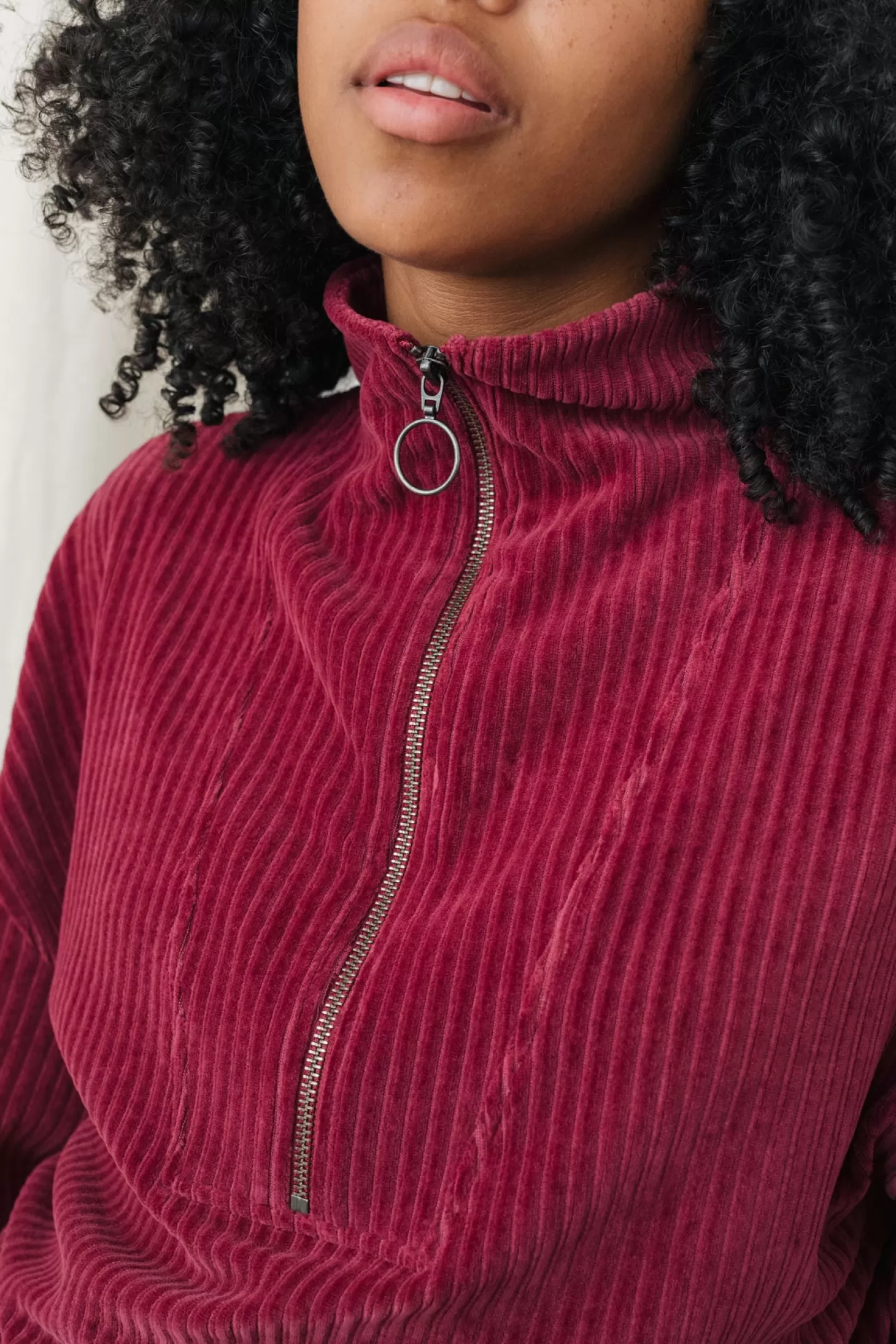 Reiche, üppige Samtrippen formen den vielleicht weichsten nachhaltigen Pullover, den wir je kreiert haben. Das minimalistische Design zeichnet sich durch überschnittene Schultern und einen hohen Hals aus.
