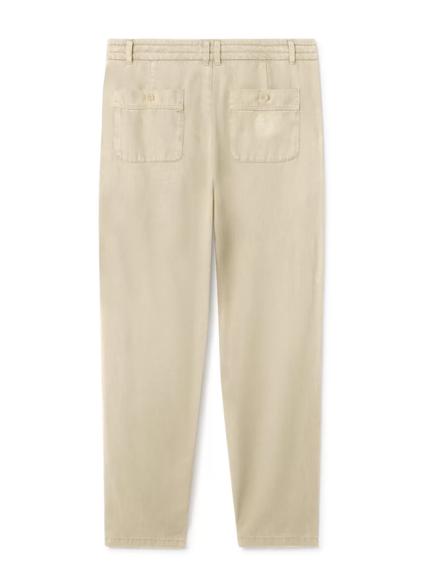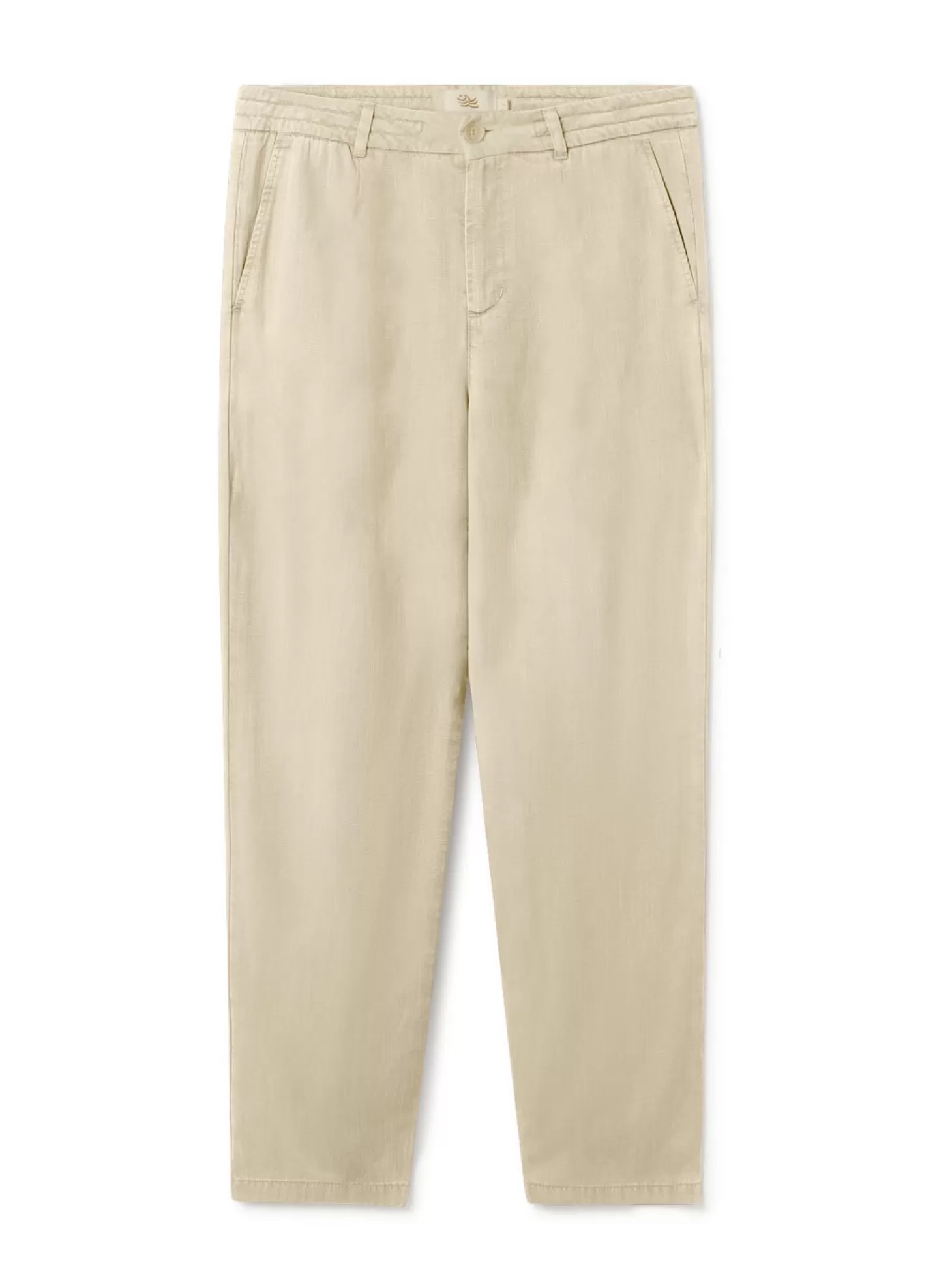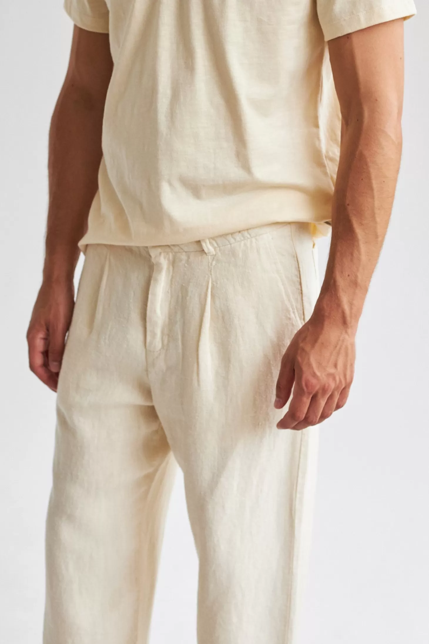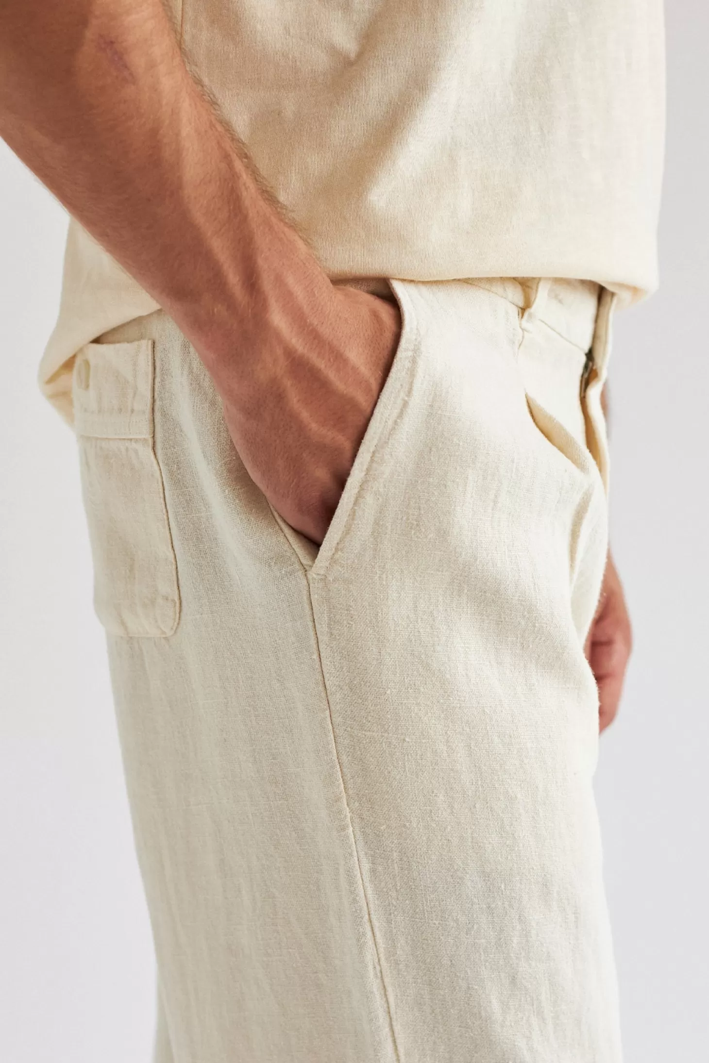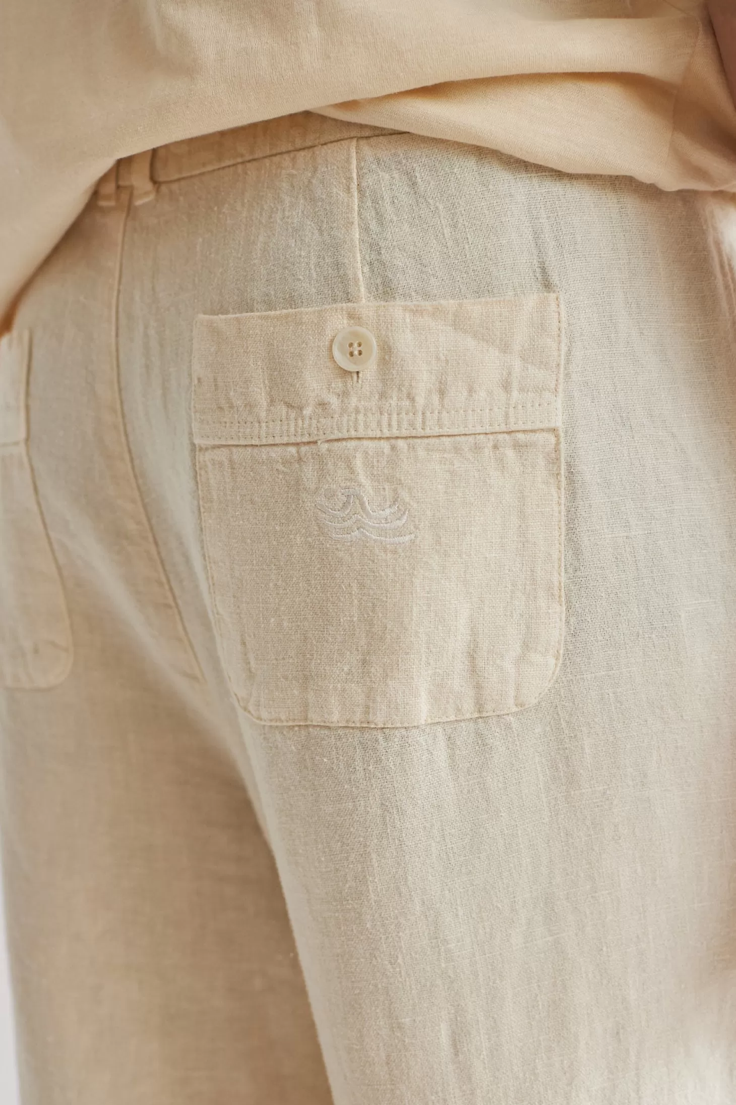 Die Crampton-Bündchenhose strahlt Eleganz und Stil der 80er-Jahre in Los Angeles aus. Sie besteht aus hochwertigem Leinen und hat einen geraden Beinschnitt mit passendem Taillenkordelzug und vier Taschen.