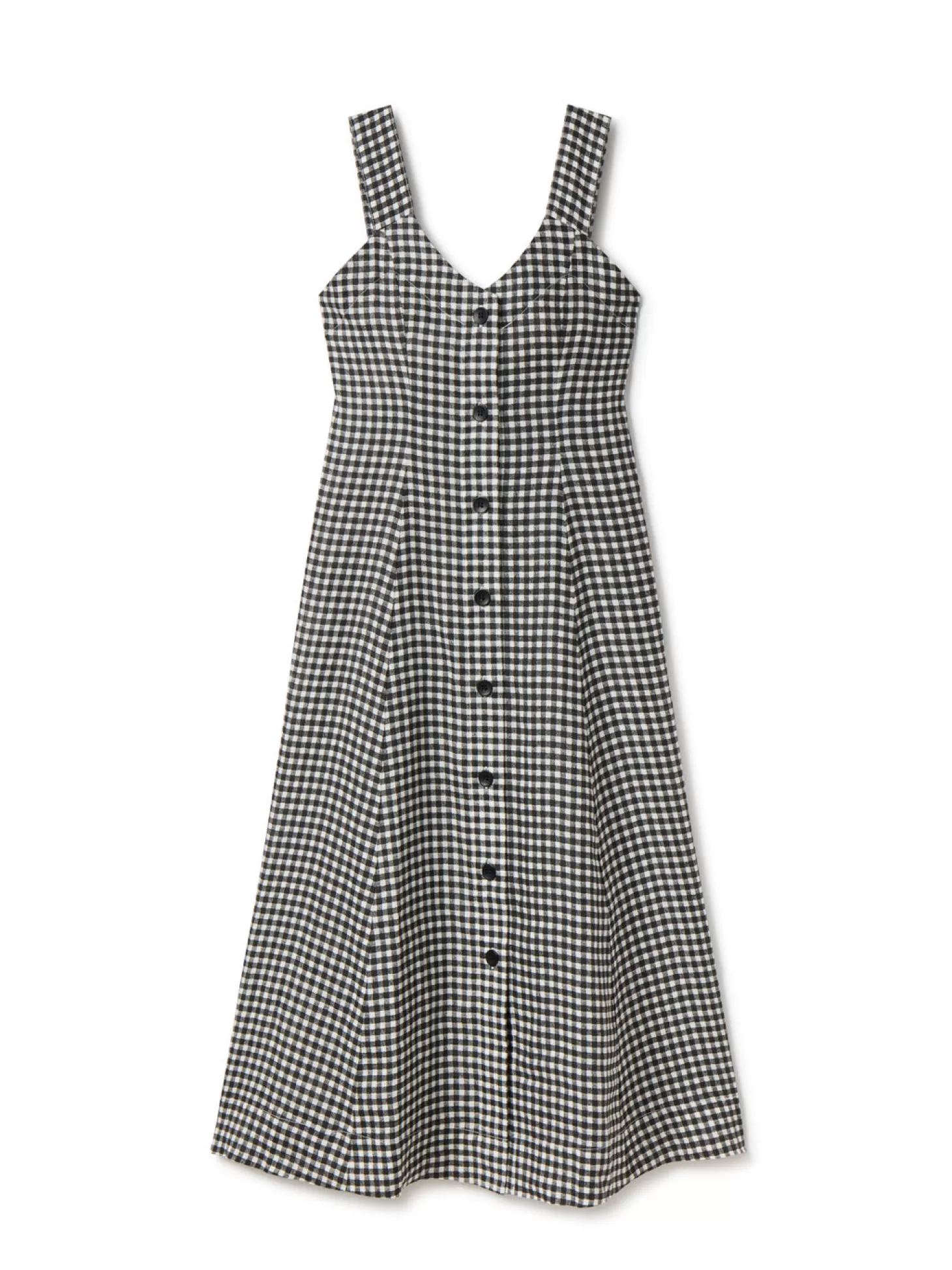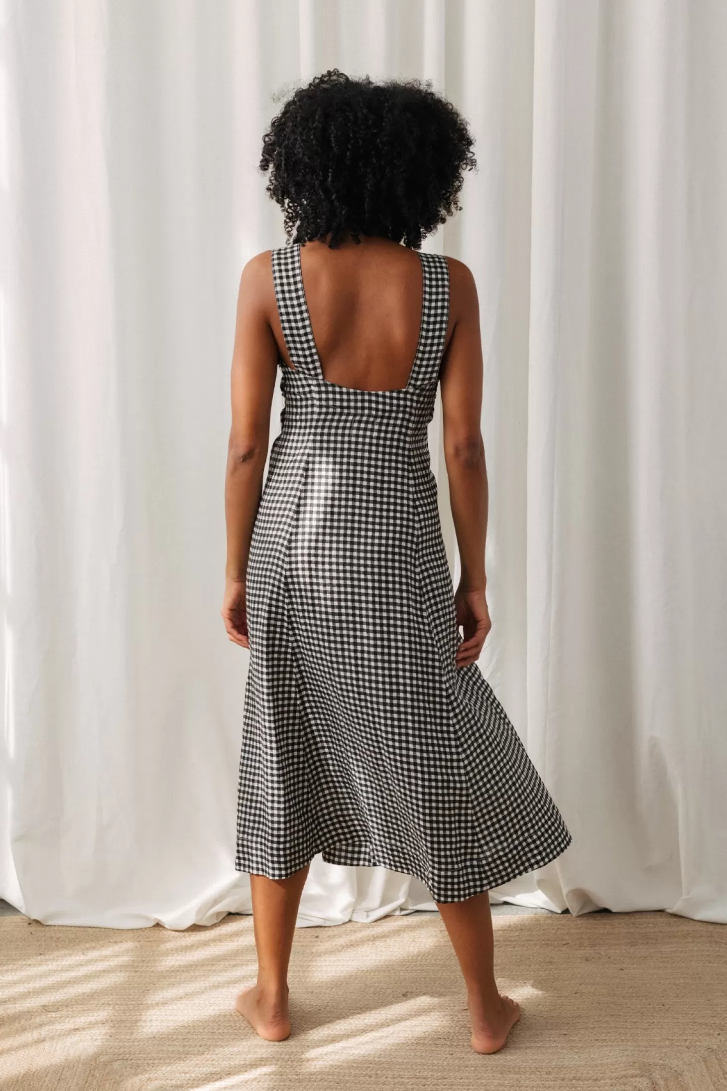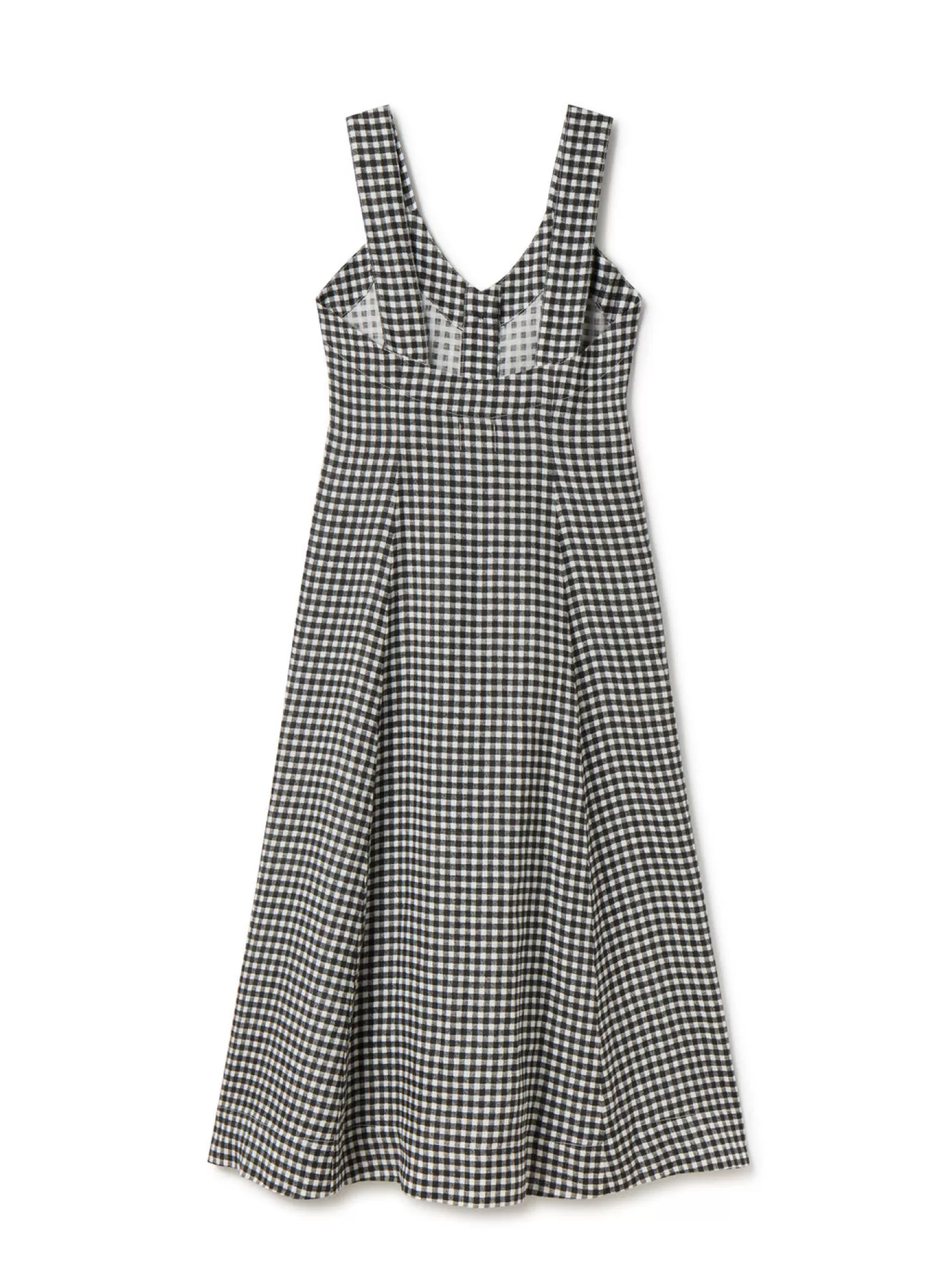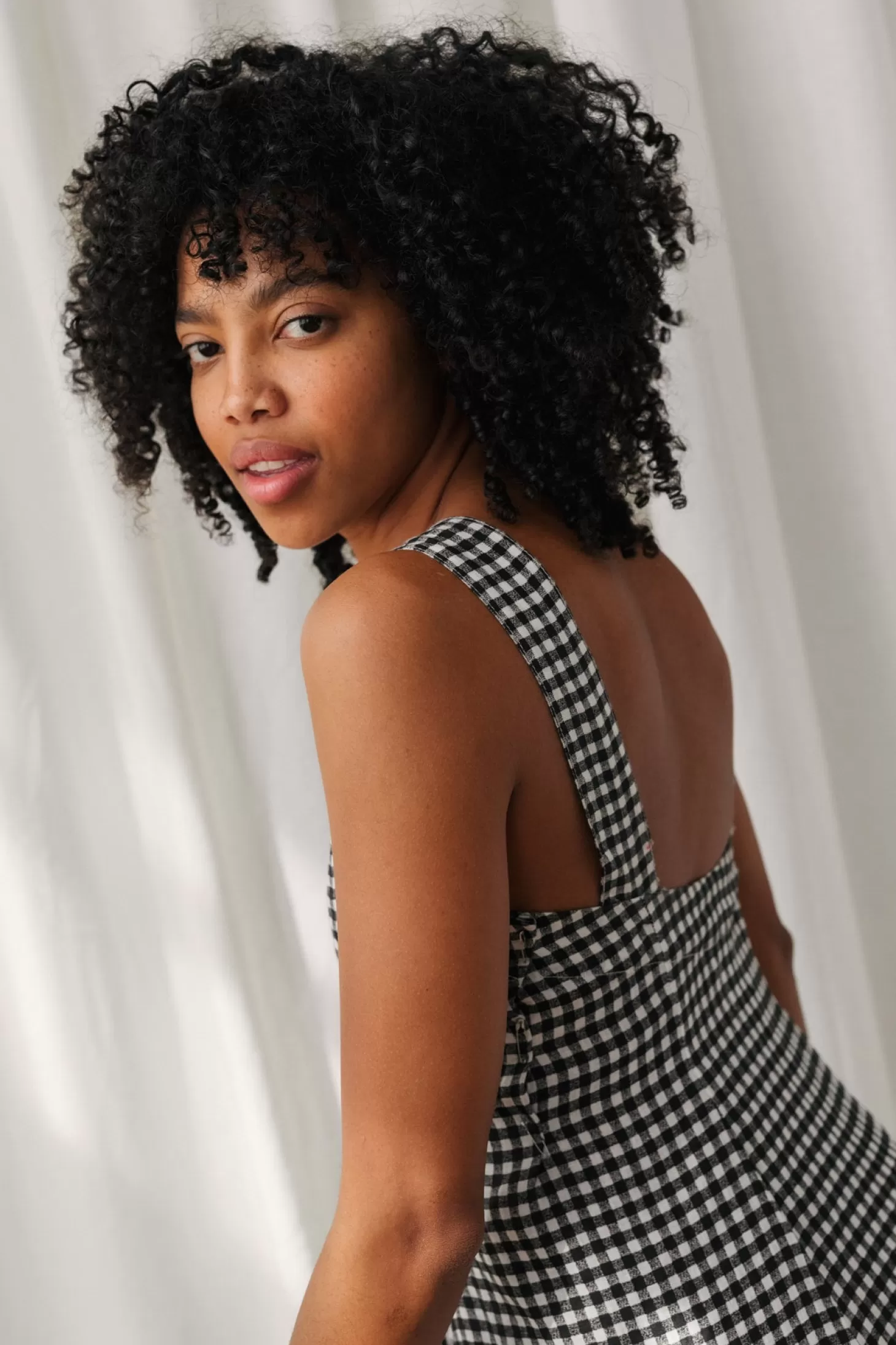 Feste Träger in Kombination mit einem V-Ausschnitt und einem offenen, quadratischen Rücken ergeben das Medni, ein Stück, das das angesagte Vichy-Muster aufgreift und ihm den unverwechselbaren TWOTHIRDS-Touch verleiht.