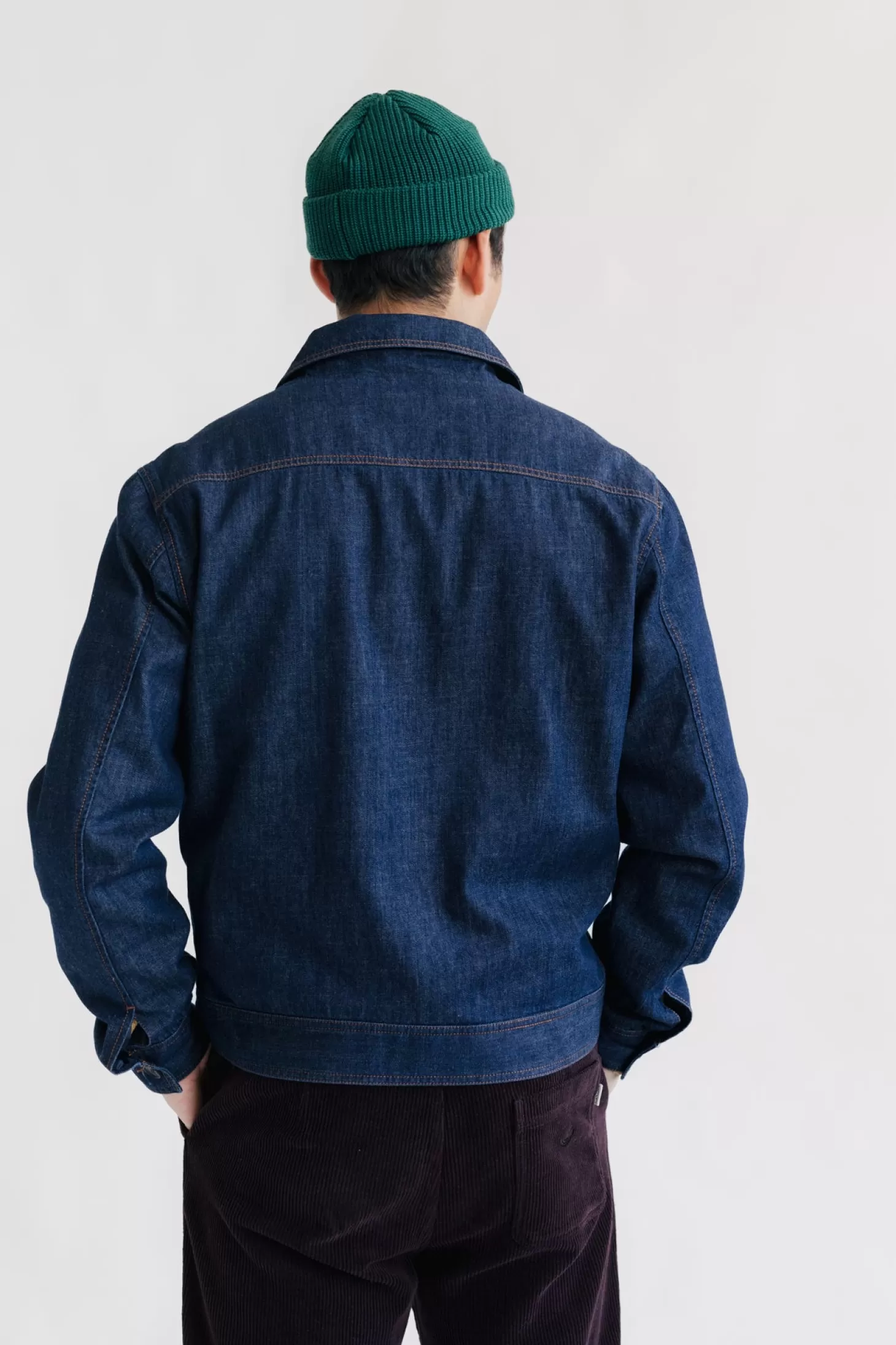 Eine Herren-Jeansjacke im Ocean-Look mit stylisch verkürtztem Schnitt und Knopfverschluss an der Taille. Die Sebree ist ein Schlüsselstück, das das Potenzial jedes nachhaltigen Outfits in deiner Garderobe freisetzen kann.