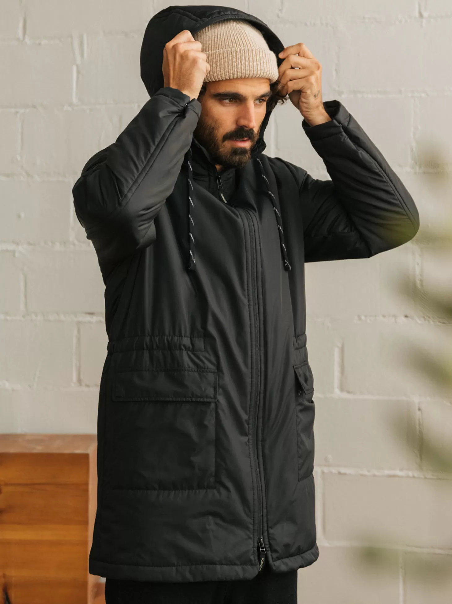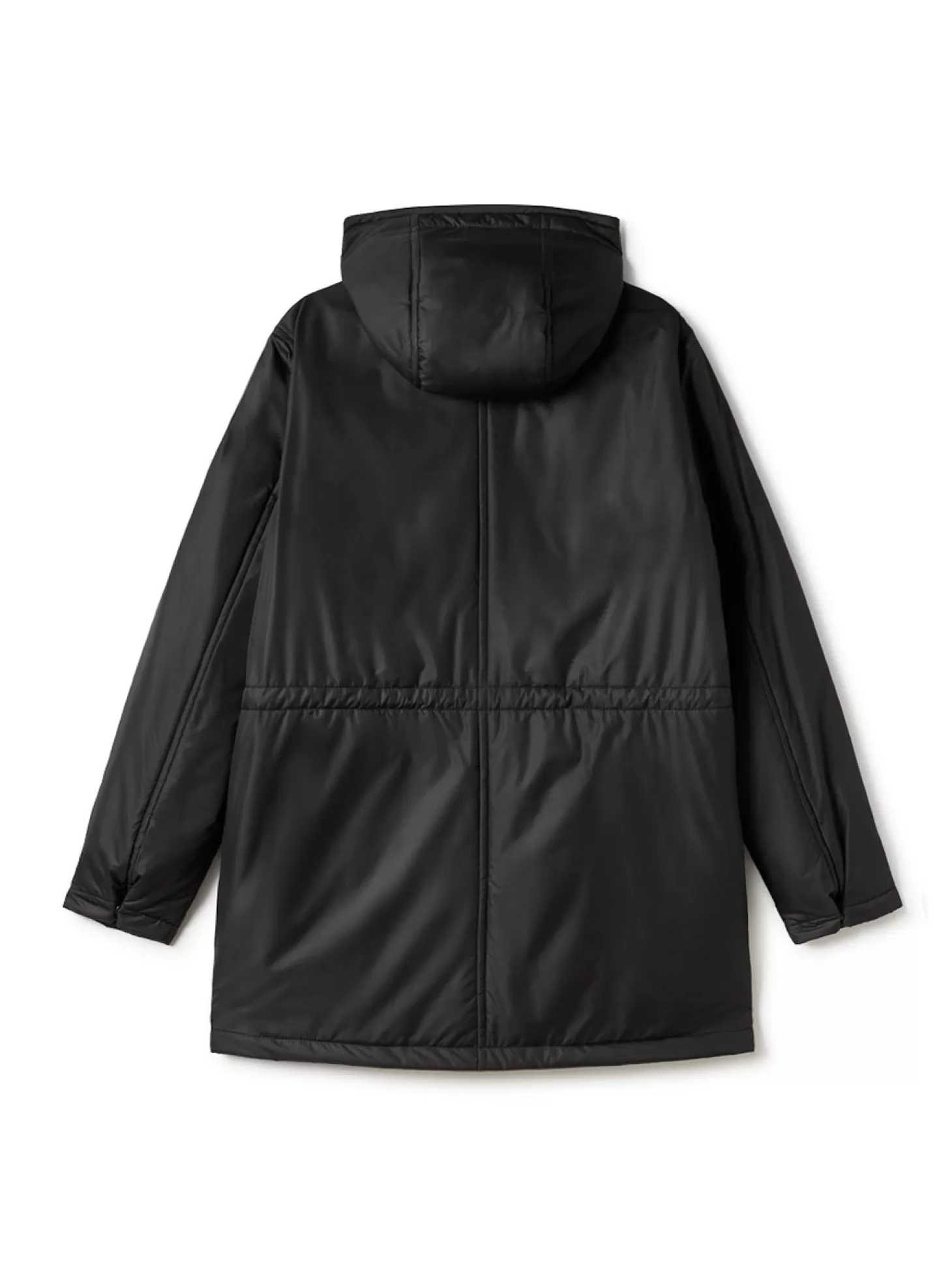 Eine mittelschwere Jacke, die sowohl innen als auch außen vollständig aus recycelten Materialien hergestellt ist. Die Mana hat eine Kapuze mit Kordelzug und einen Taillenzug, damit du dich vor Kälte schützen kannst.