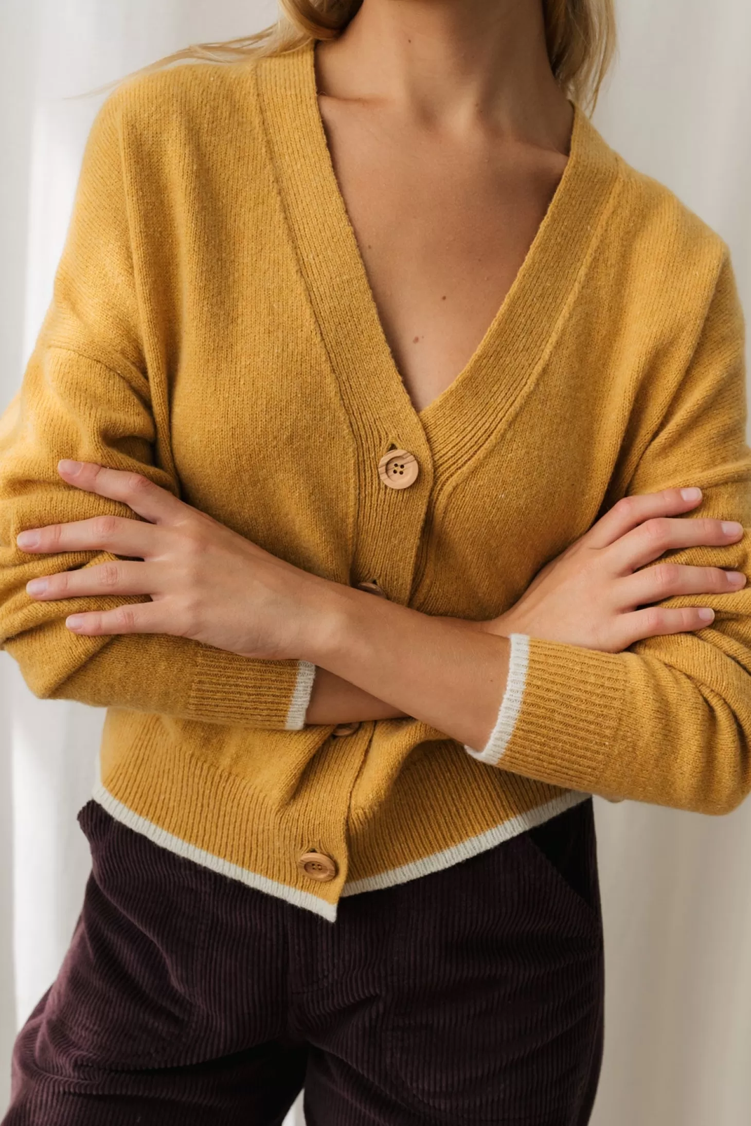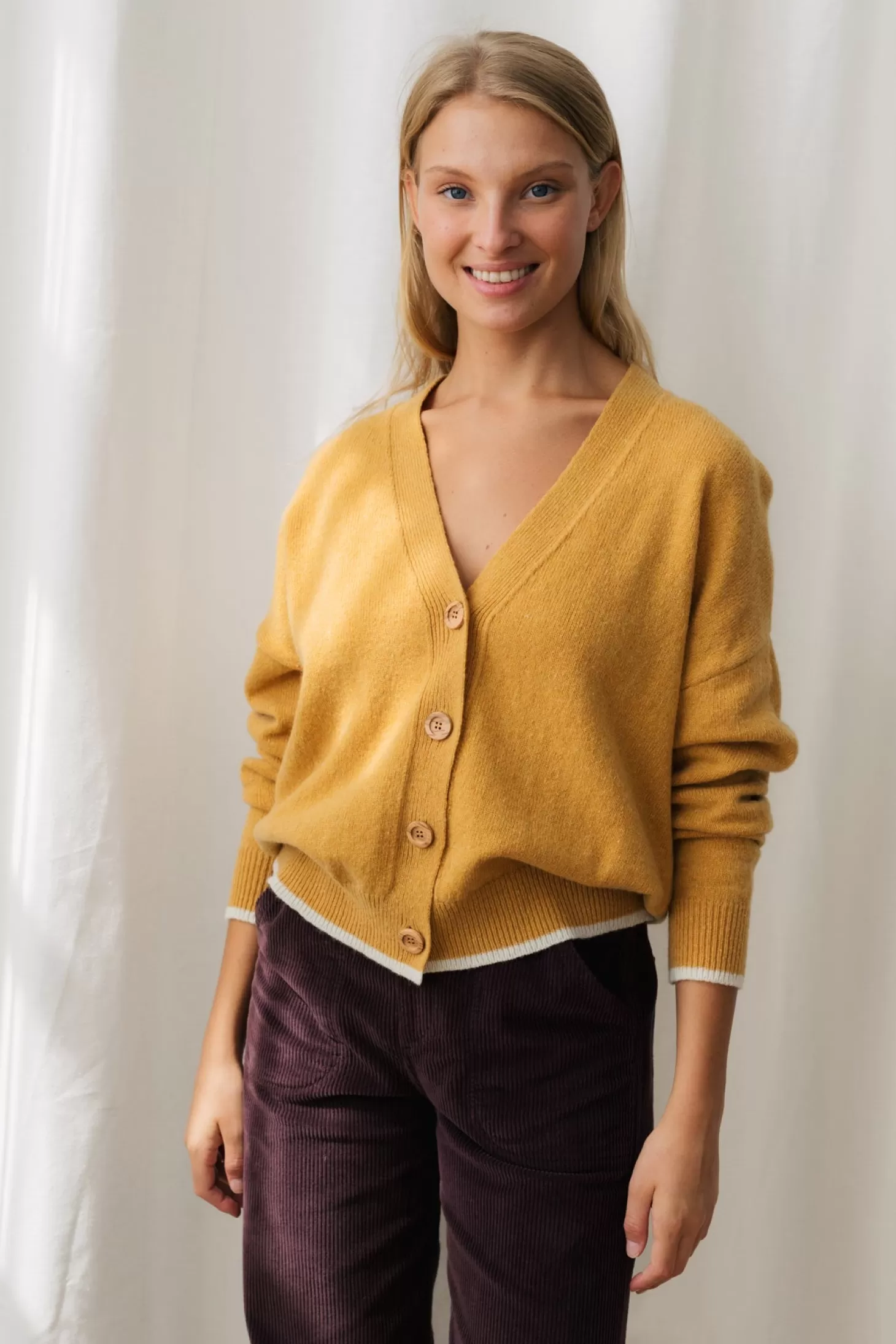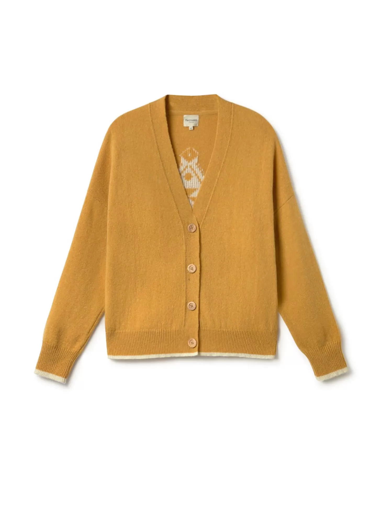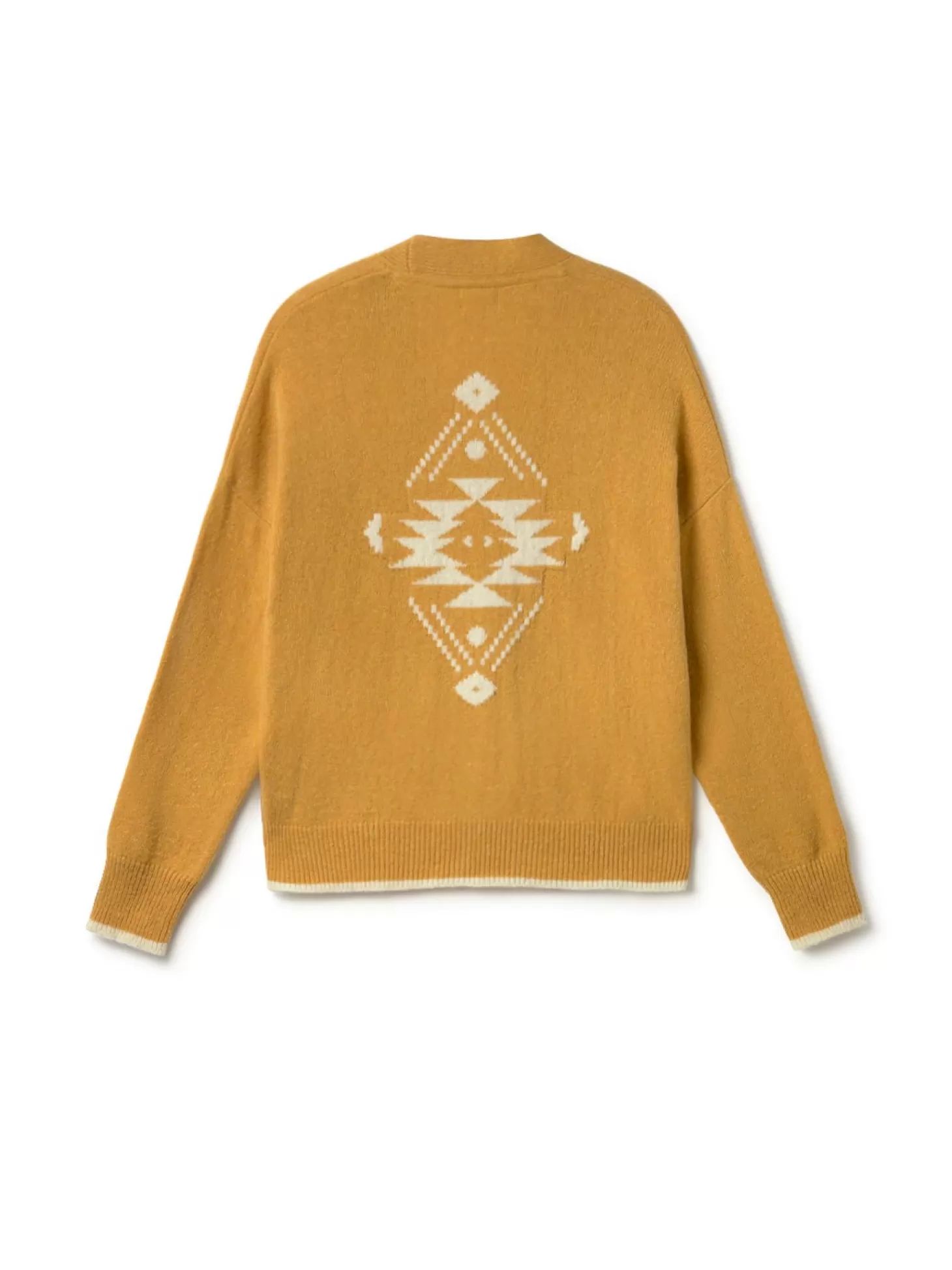 This long sleeve cardigan comes with a jacquard knit design that evokes nomadic surf lifestyles. Its hem and cuffs feature ecru coloured edges.