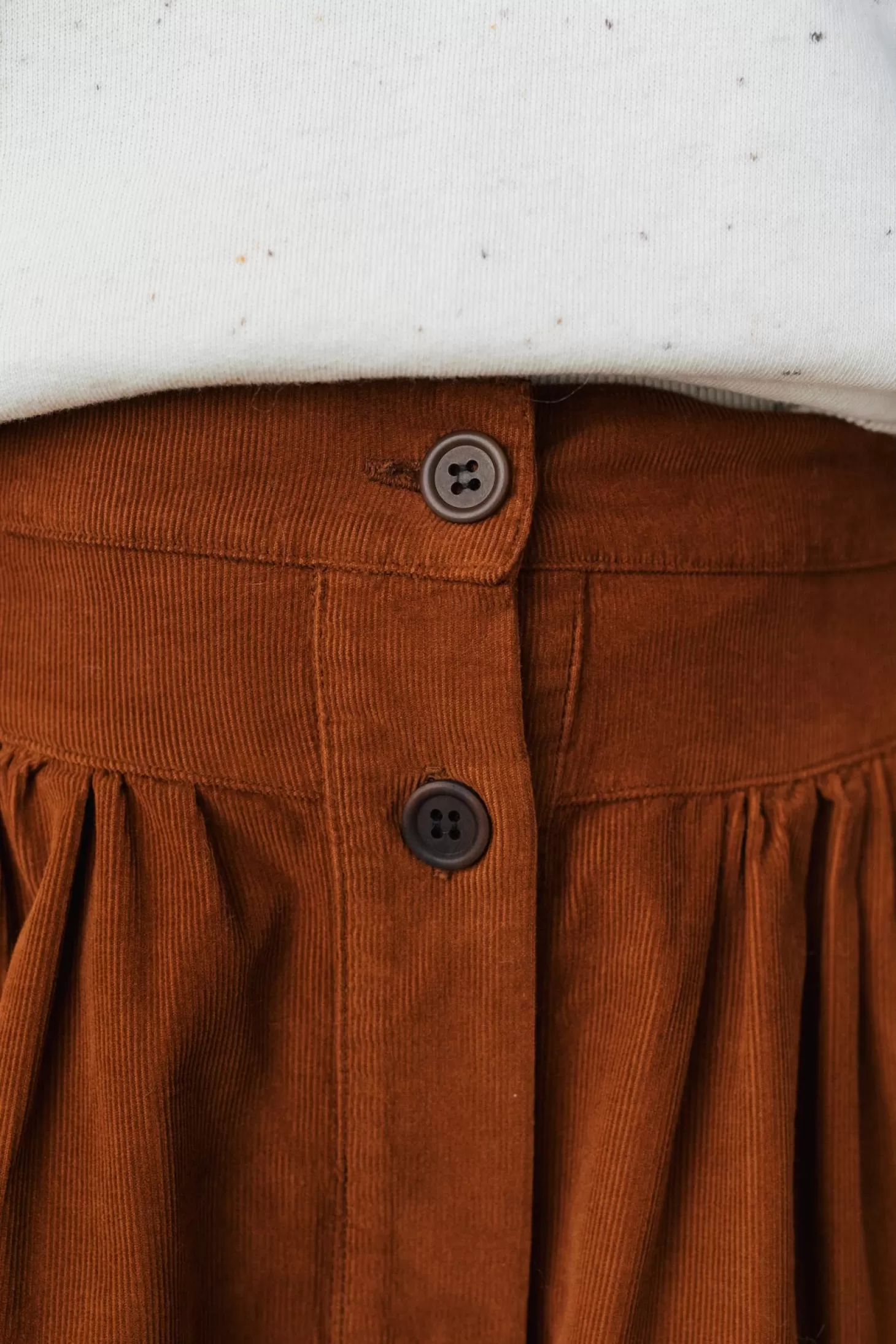 Der nachhaltige Rock Castlerock ist aus wunderschönem Mikrocord gefertigt und hat vorne und hinten eine einzigartige V-förmige Passe. Seitentaschen sowie einen elastischen Bund hinten.