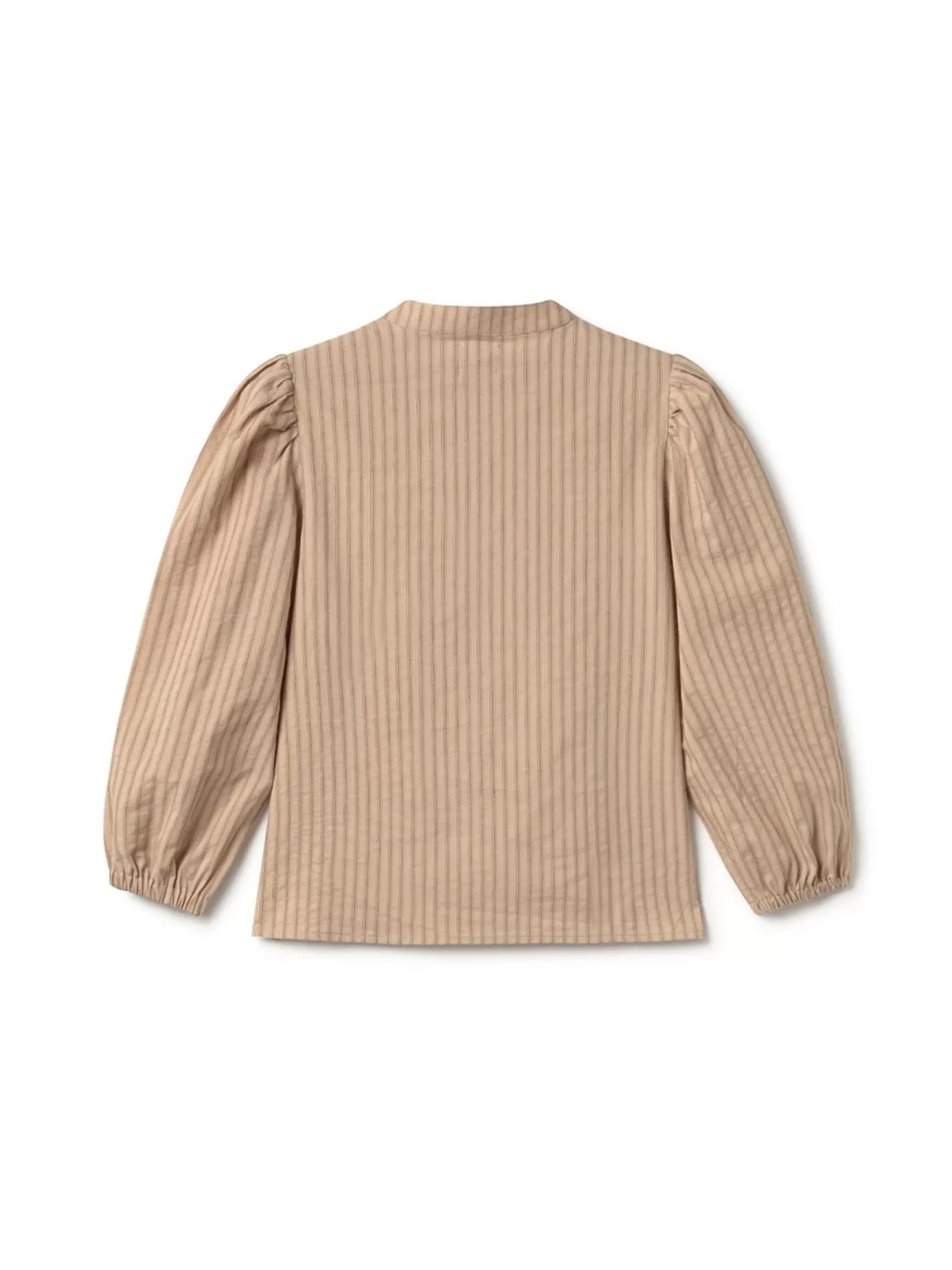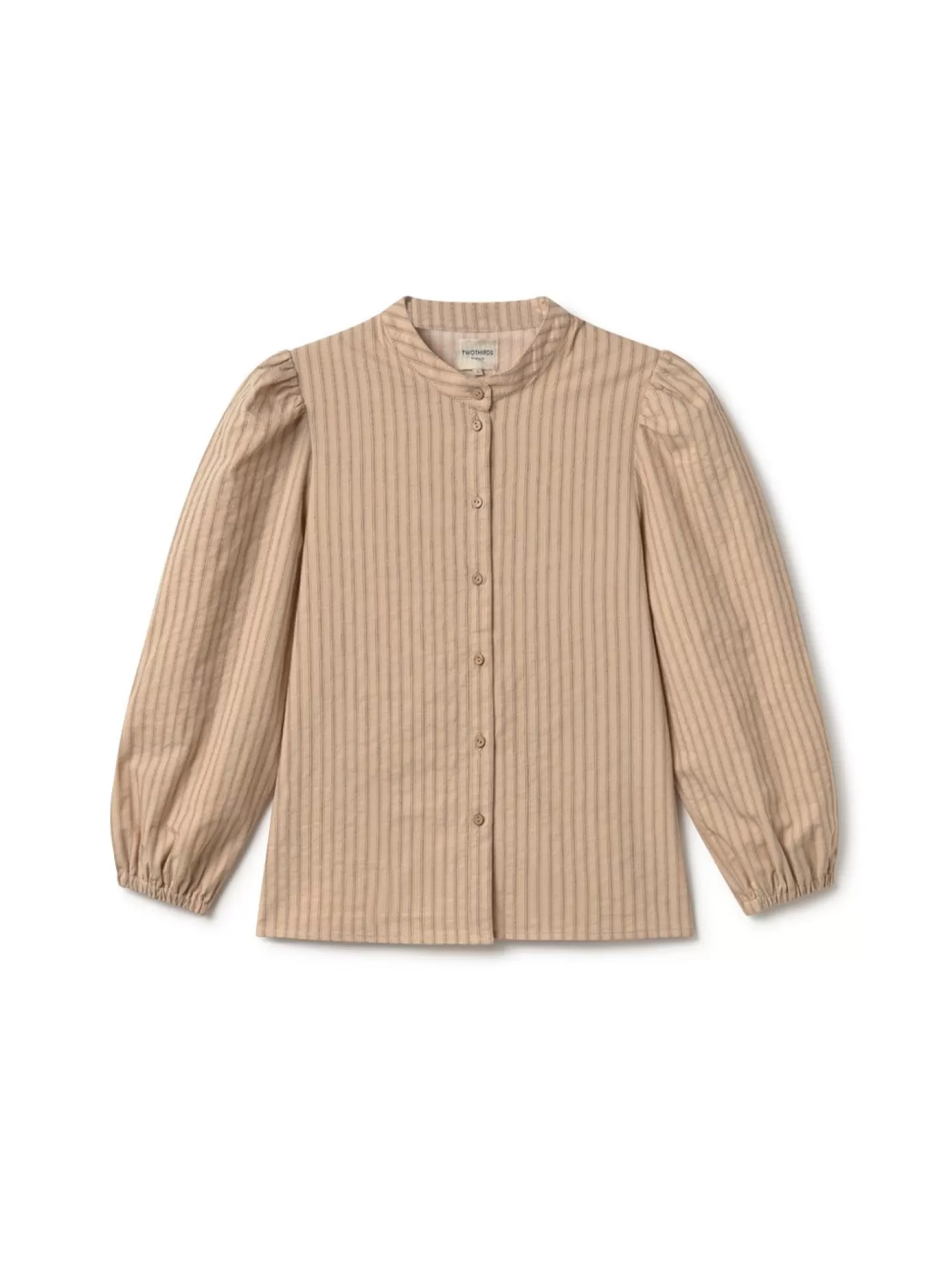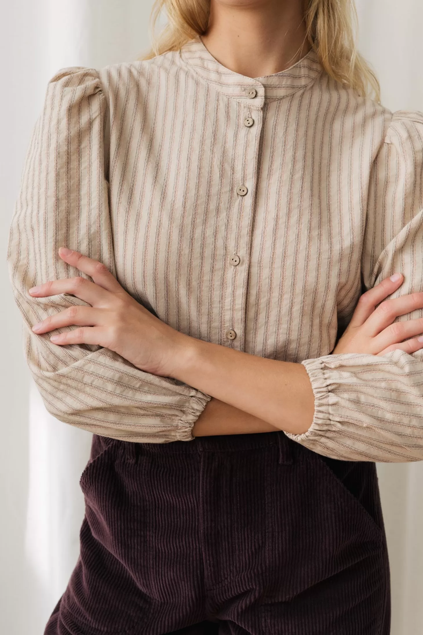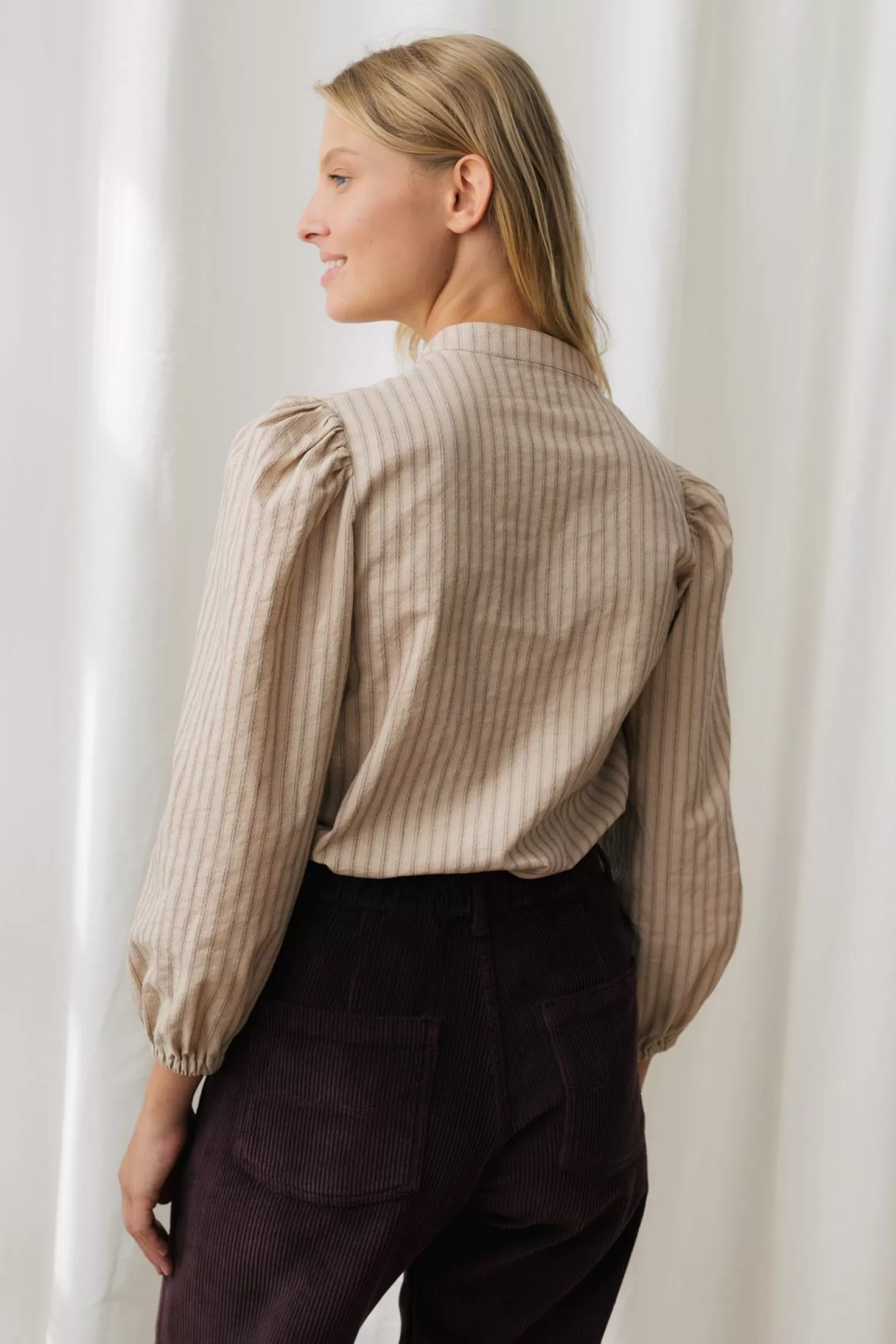 Mao-Ausschnitte sind im Moment der letzte Schrei, also haben wir einen mit unglaublichem Bio-Stoff und Puffärmeln in Dreiviertellänge kombiniert, die sowohl an der Schulter als auch an den Manschetten gerafft sind.