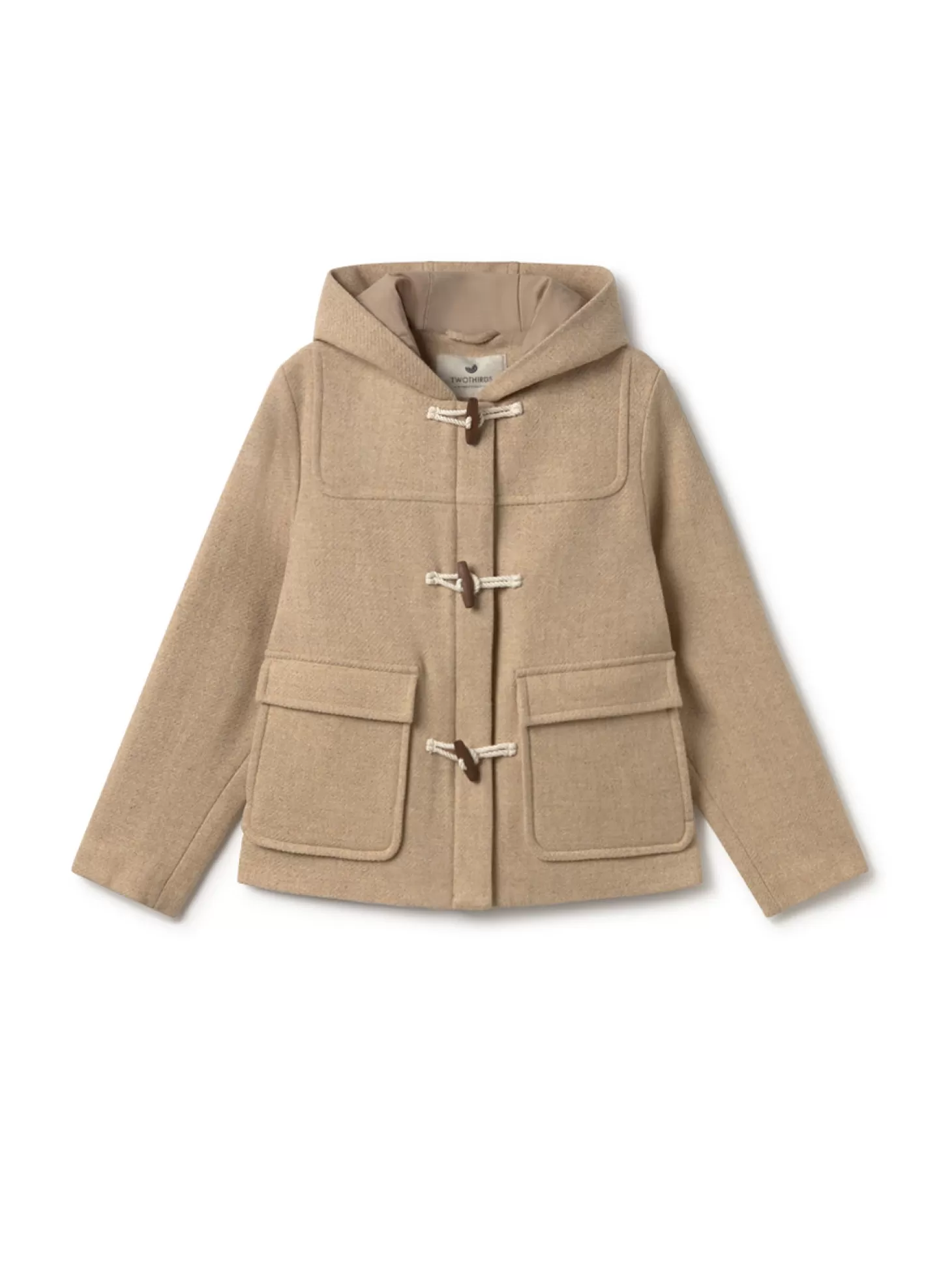 Inspiriert von der bezaubernden irischen Stadt Galway kombiniert dieser charmante Dufflecoat hochwertigen italienischen Stoff, natürliche Holzknebel und eine gemütliche Kapuze.