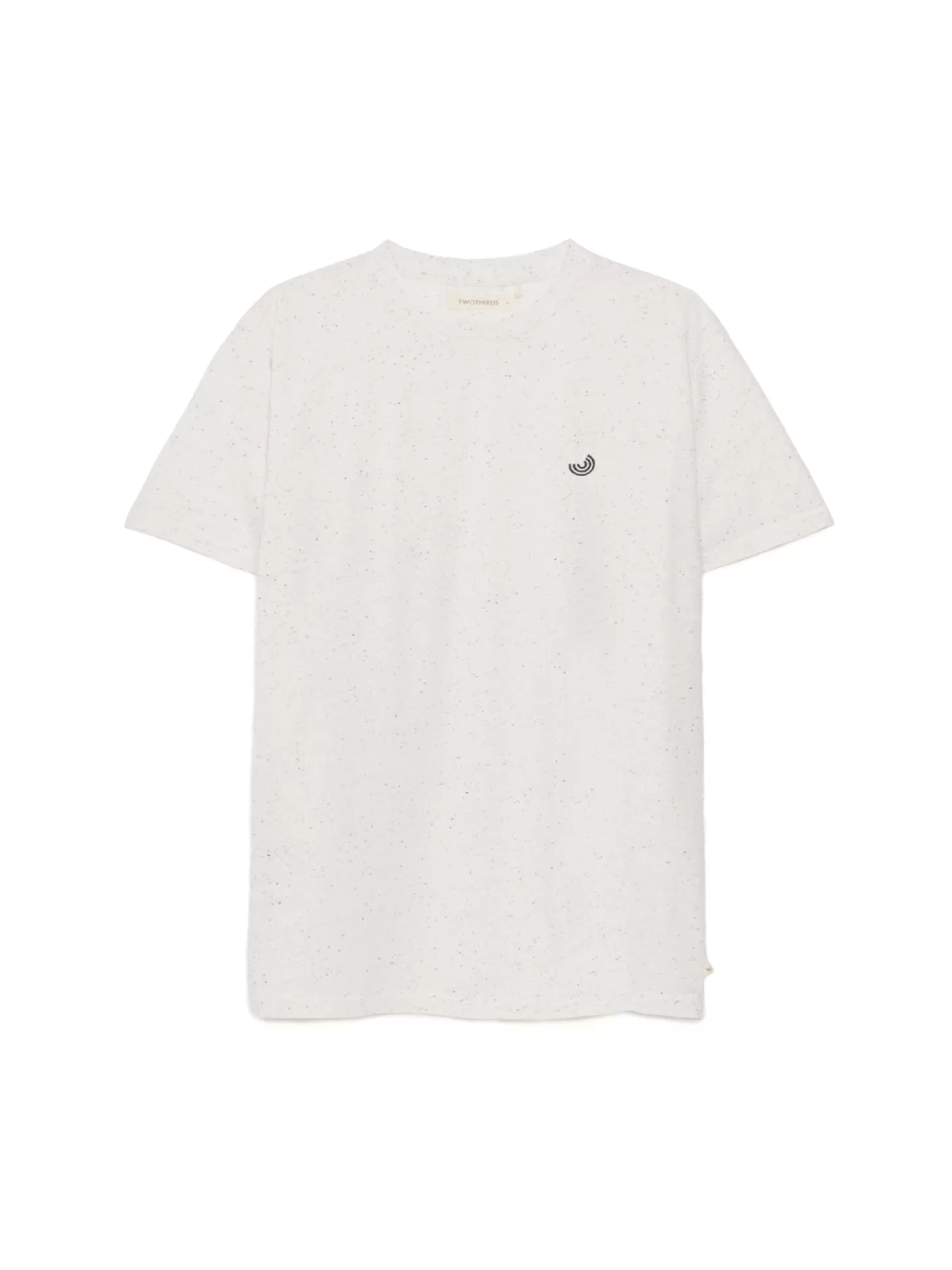 Eine Mischung aus recycelten Materialien verleiht dem Wake-T-Shirt einen gesprenkelten Farbeffekt, mit einer Vielzahl von Sprenkeln auf dem gesamten Kleidungsstück. Das T-Shirt enthält recyceltes Polyester, um Knöllchenbildung zu vermeiden. Es hat eine normale Passform und einen hüftlangen Schnitt. Mit gesticktem Logo auf der Brust und einem kleinen dreieckigen Etikett am unteren Rand.