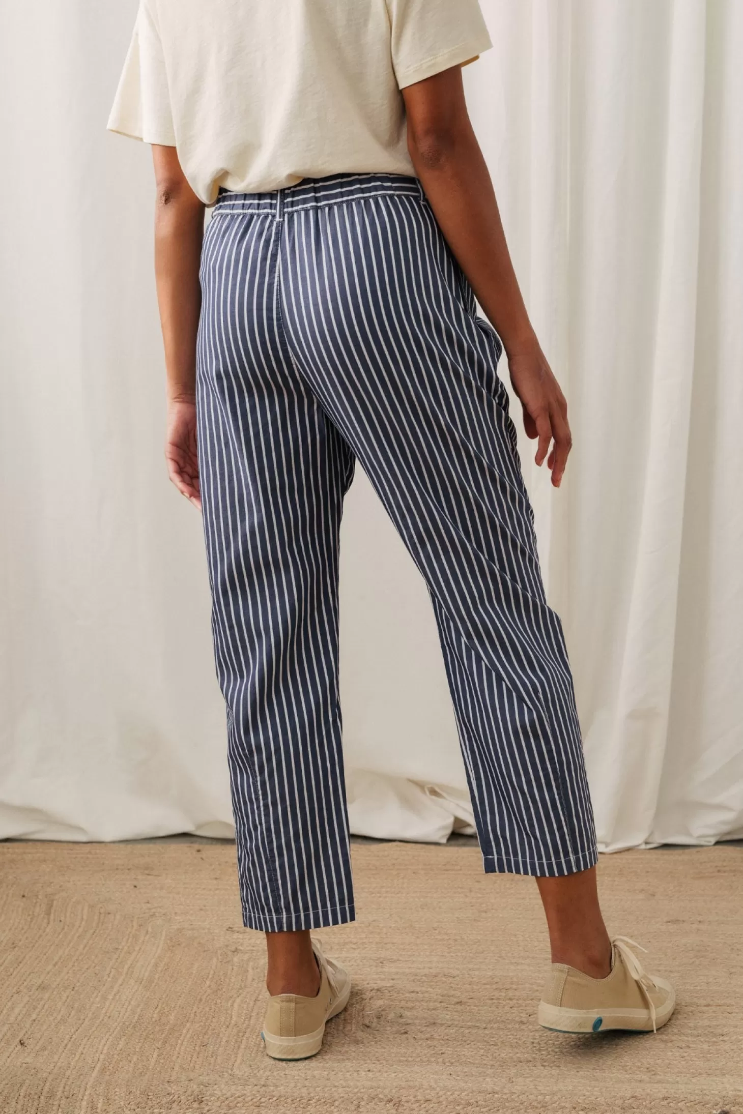 Leichter Popeline-Stoff kombiniert mit einem zeitlosen, minimalistischen Design ergibt die Kyrklandet: frei fließende, locker sitzende Hose, die mithilfe stilvoller Abnäherdetails leicht zum Knöchel hin schmaler wird.