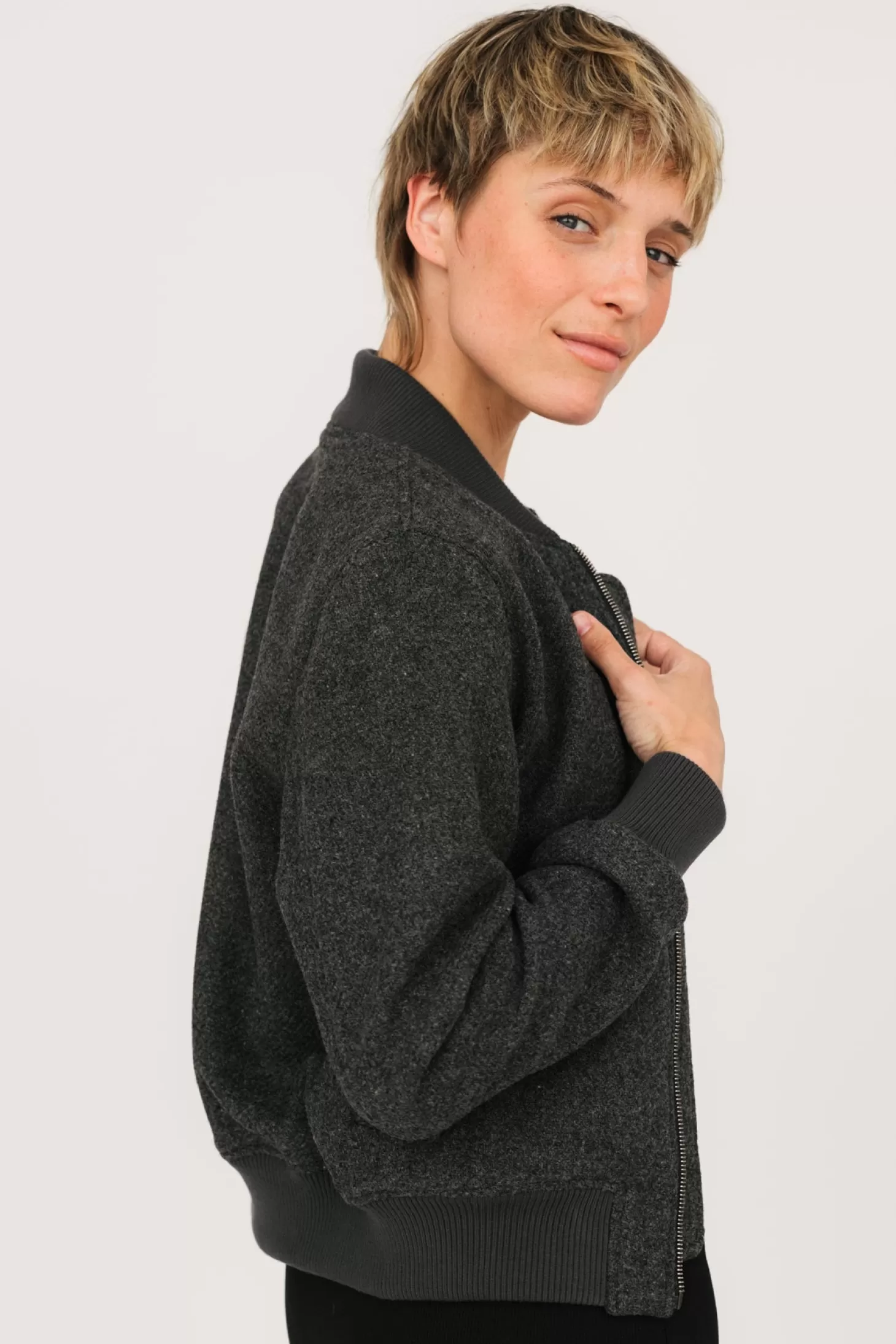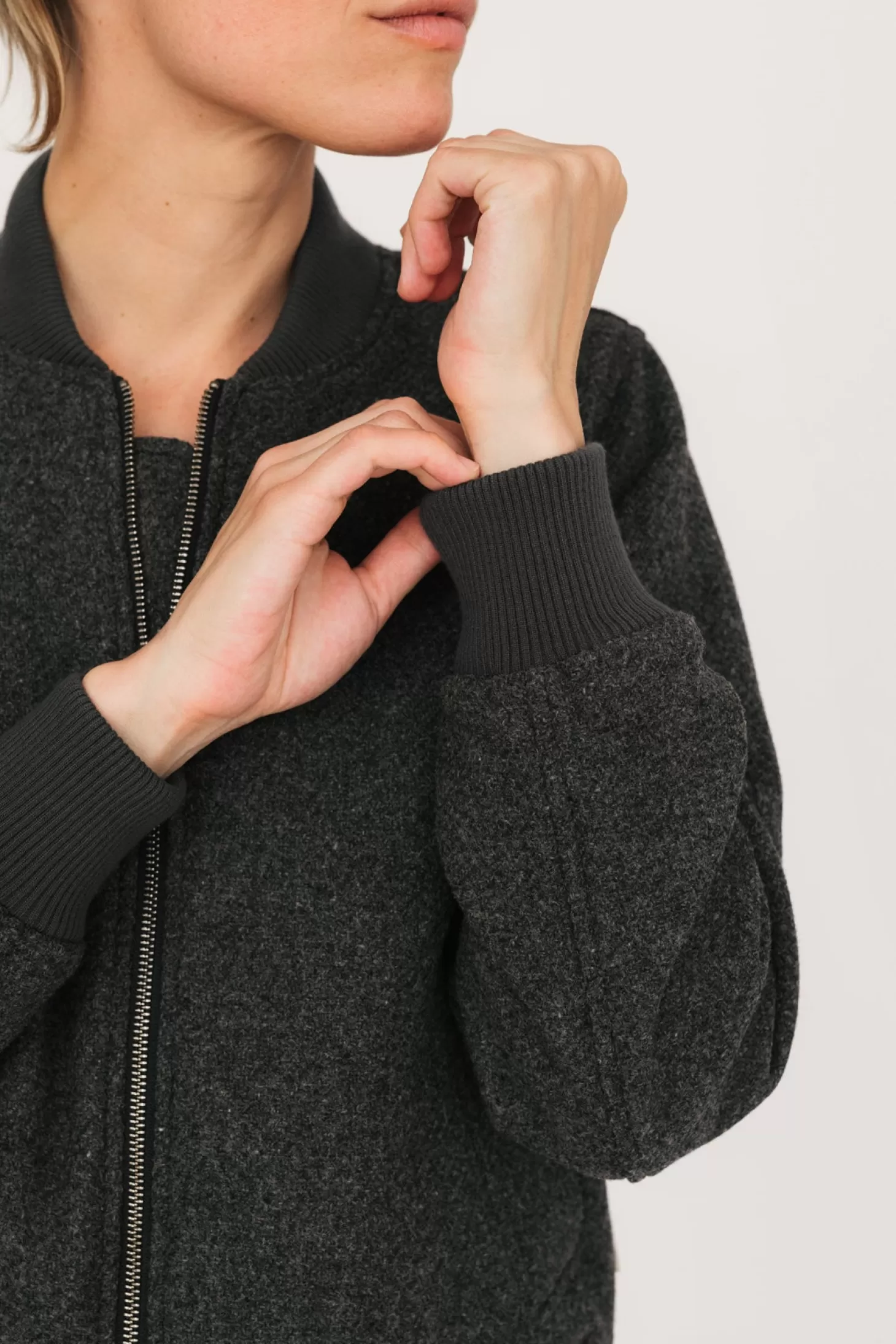 Diese mittelschwere, nachhaltige Bomberjacke besteht aus hochwertiger Wolle und einer Reihe anderer umweltfreundlicher S…