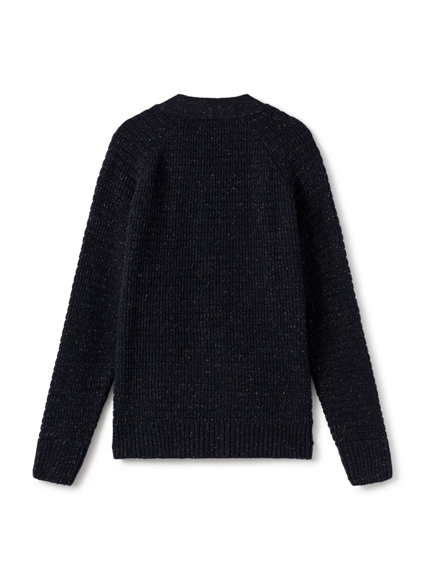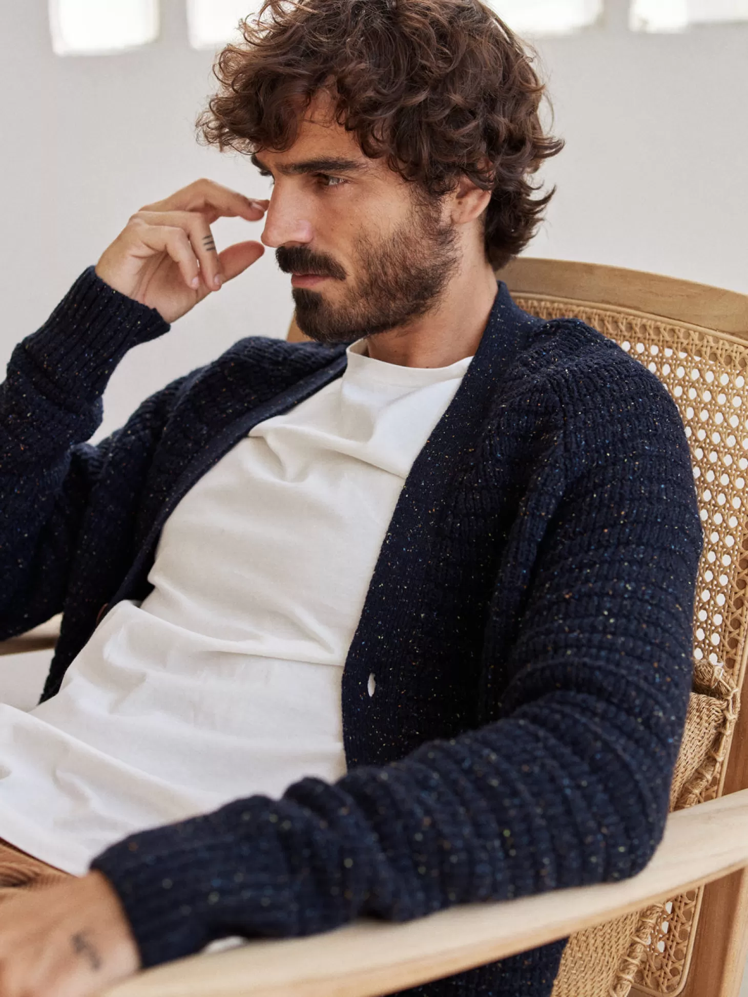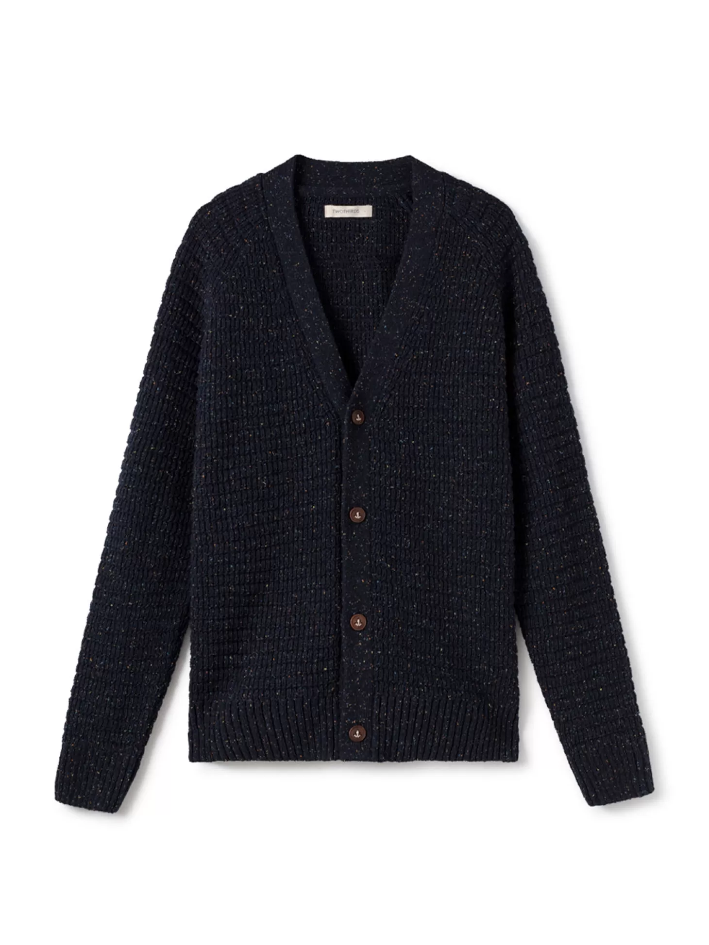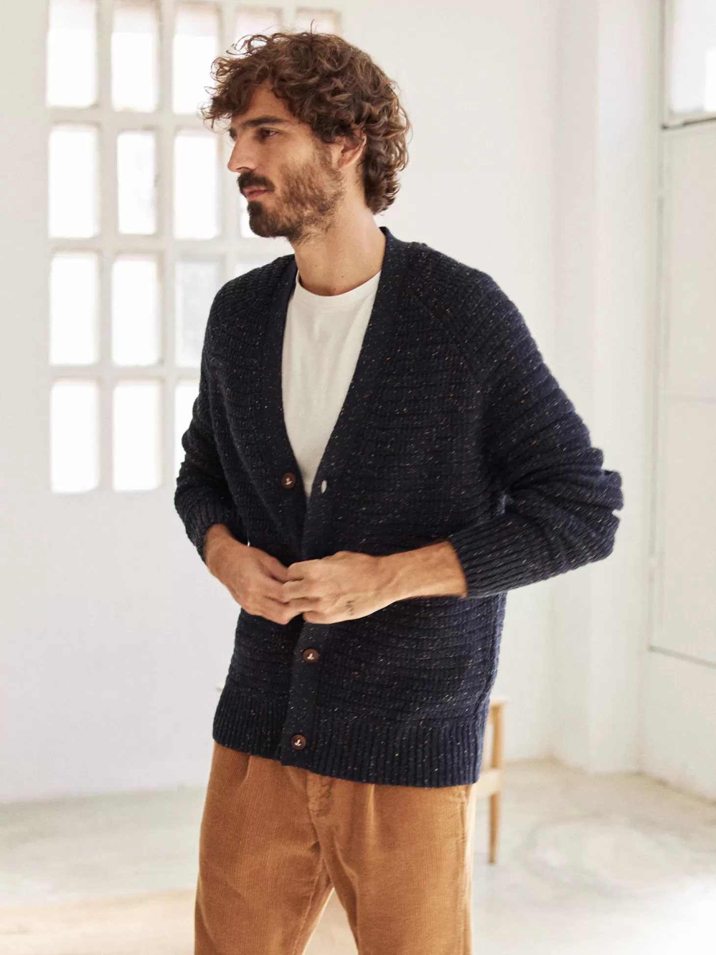 Die Vir ist eine vielseitige Strickjacke mit zarten Design-Highlights wie dem Ankerfaden-Detail an den Knöpfen und kontrastierenden Farbsprenkeln. Sie lässt sich ganz einfach und stilvoll über jedes Outfit ziehen und wärmt zusätzlich.