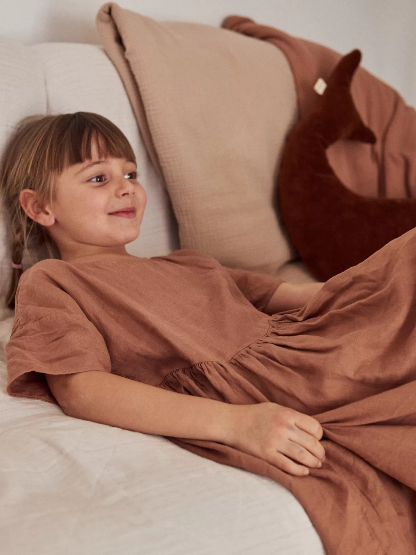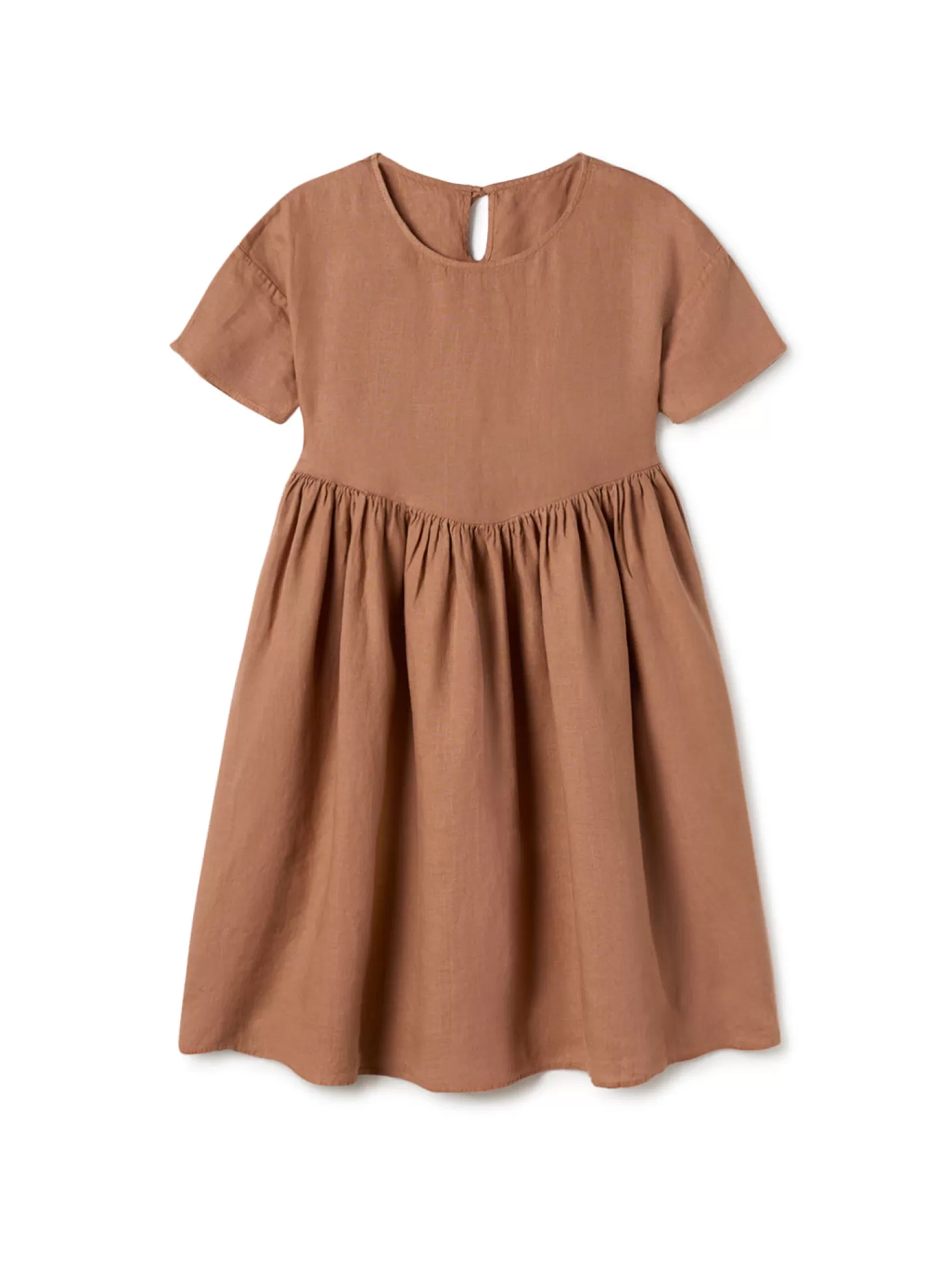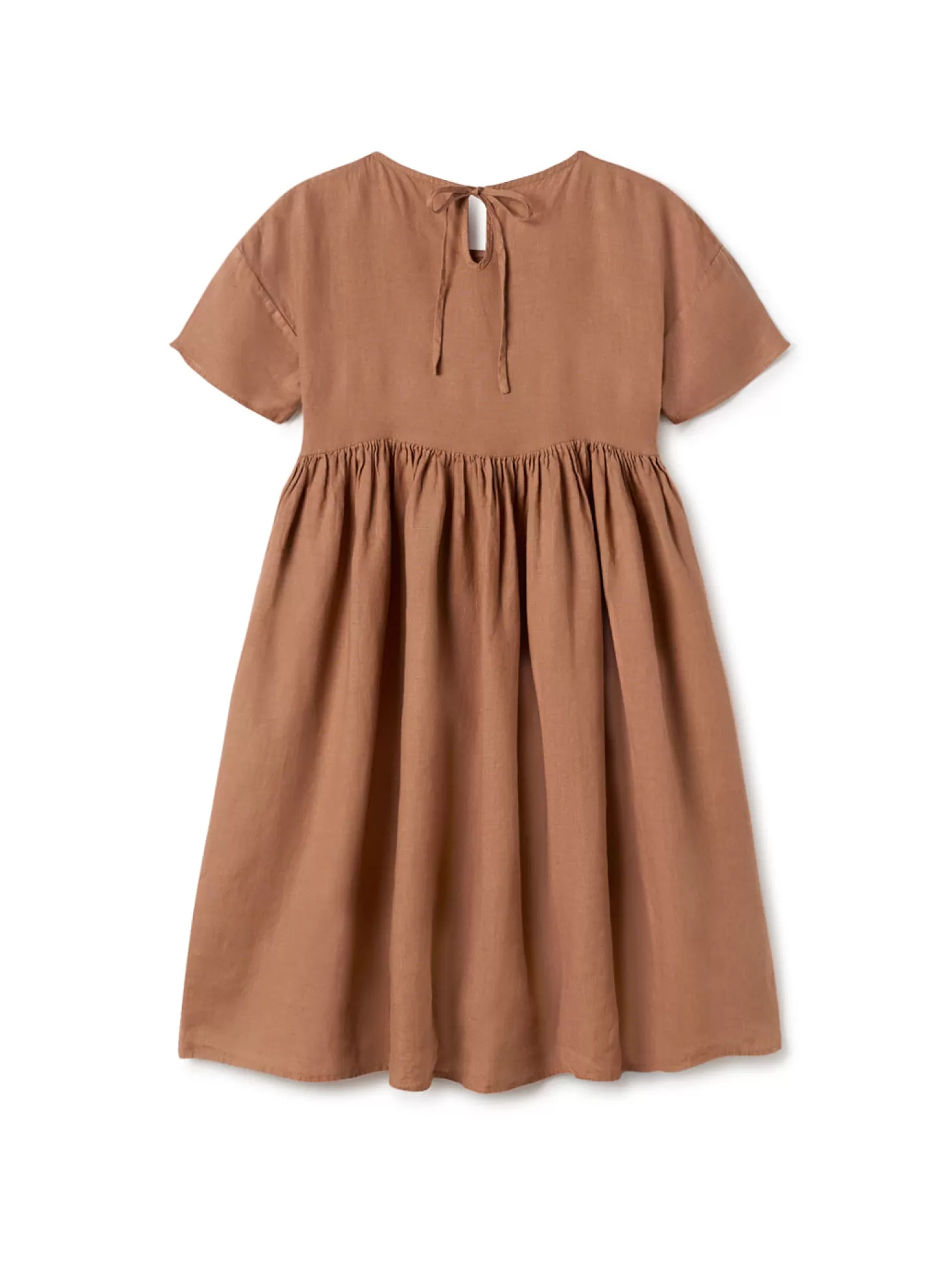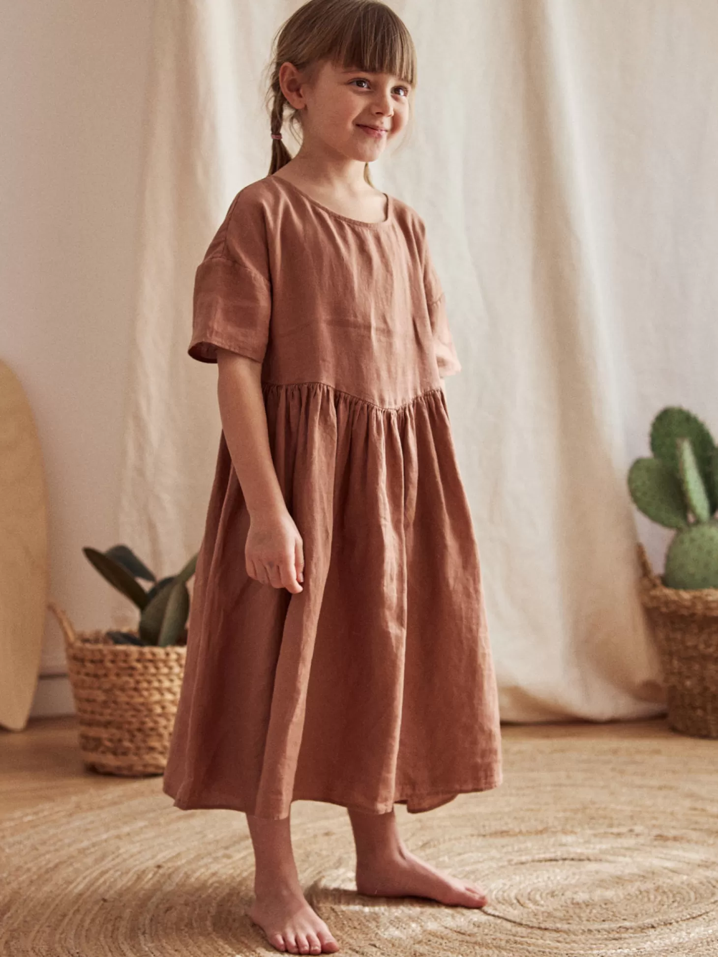 Ein tolles Sommerkleid, das zu sonnigem Strandwetter passt! Zapillo ist aus wunderbar weichem und atmungsaktivem Bio-Leinen gefertigt und hat eine Raffung an der Taille sowie ein dekoratives Schnürband im Nacken.