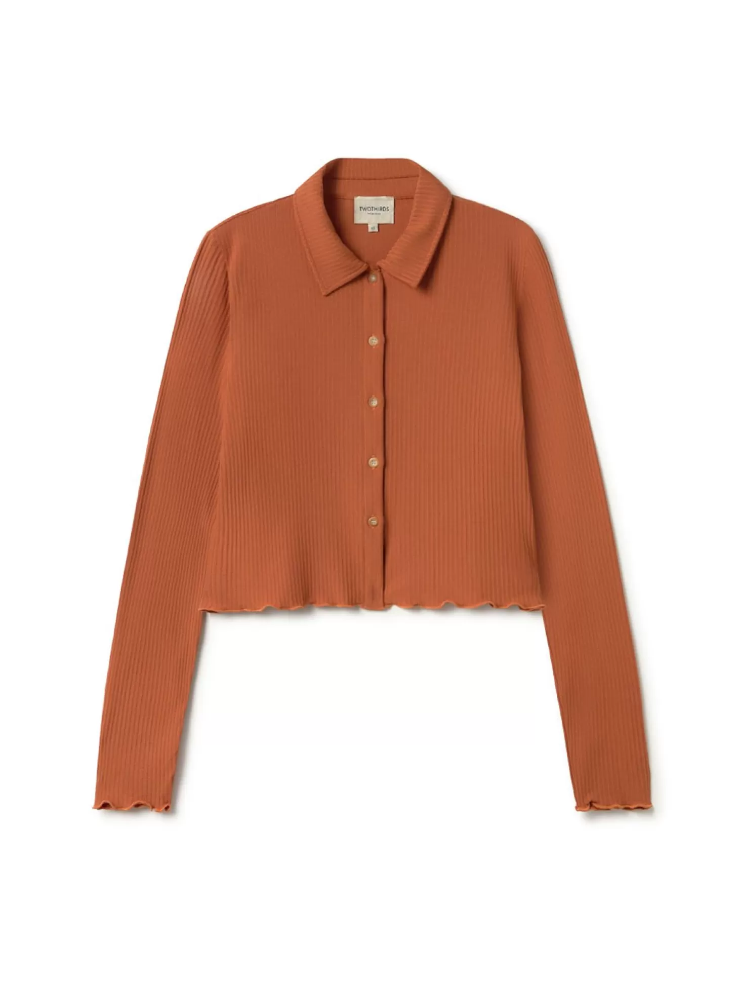 Dieses langärmelige, leichte Hemd hat ein vertikales Rippenmuster, das von einem herrlich gerüschten Saum und Manschetten begleitet wird. Ein weicher, formbarer Kragen rundet den Look ab.