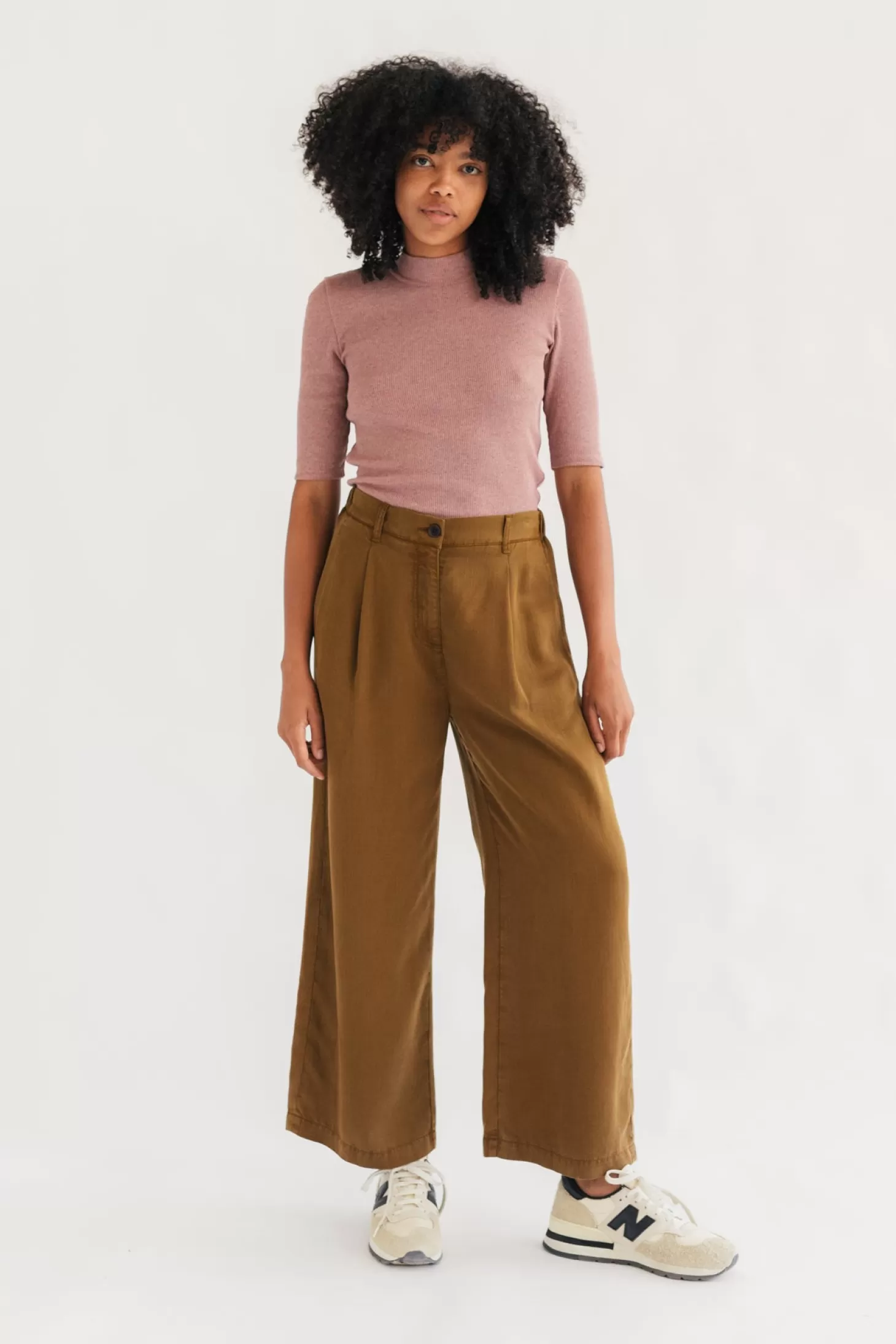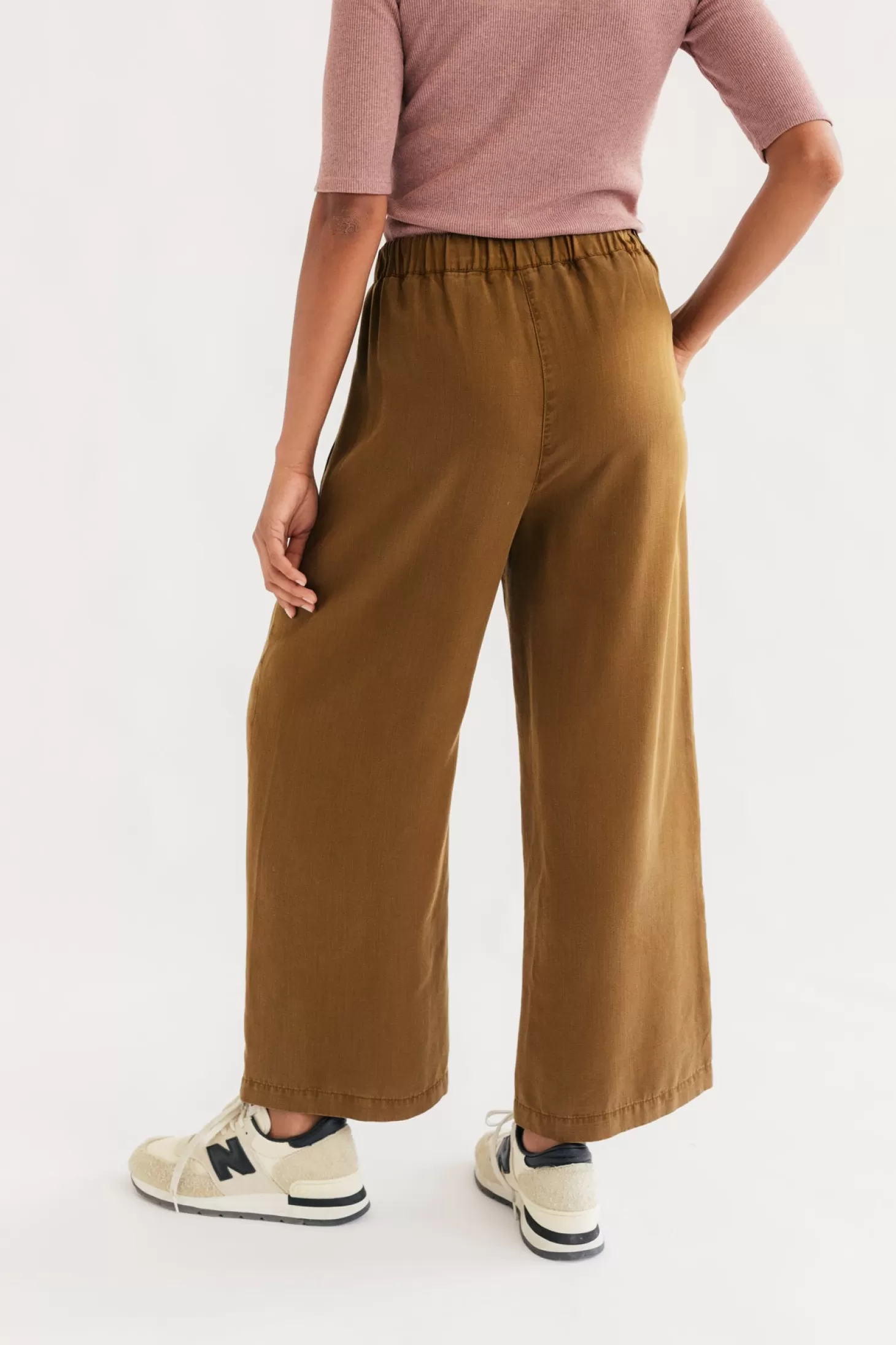 Die Nanpu hat einen weiten Beinschnitt, der sich dank seiner unglaublichen botanischen Fasern seidig weich anfühlt. Sie hat hinten einen elastischen Bund, der vorne mit einem Knopf verschlossen wird.