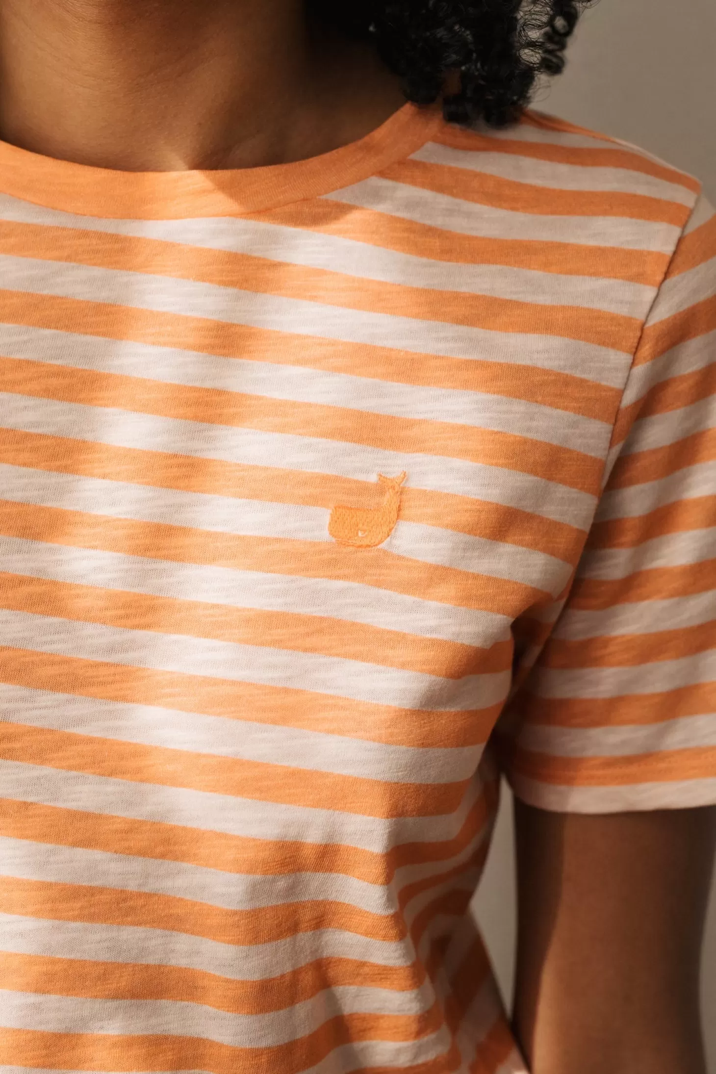 Jedes nachhaltige Bablon-T-Shirt besteht aus dem weichsten Bio-Slub-Stoff und ist einzigartig. Die garngefärbten Streifen variieren von Stück zu Stück leicht. Unsere geliebten gestickten Walmerkmale.