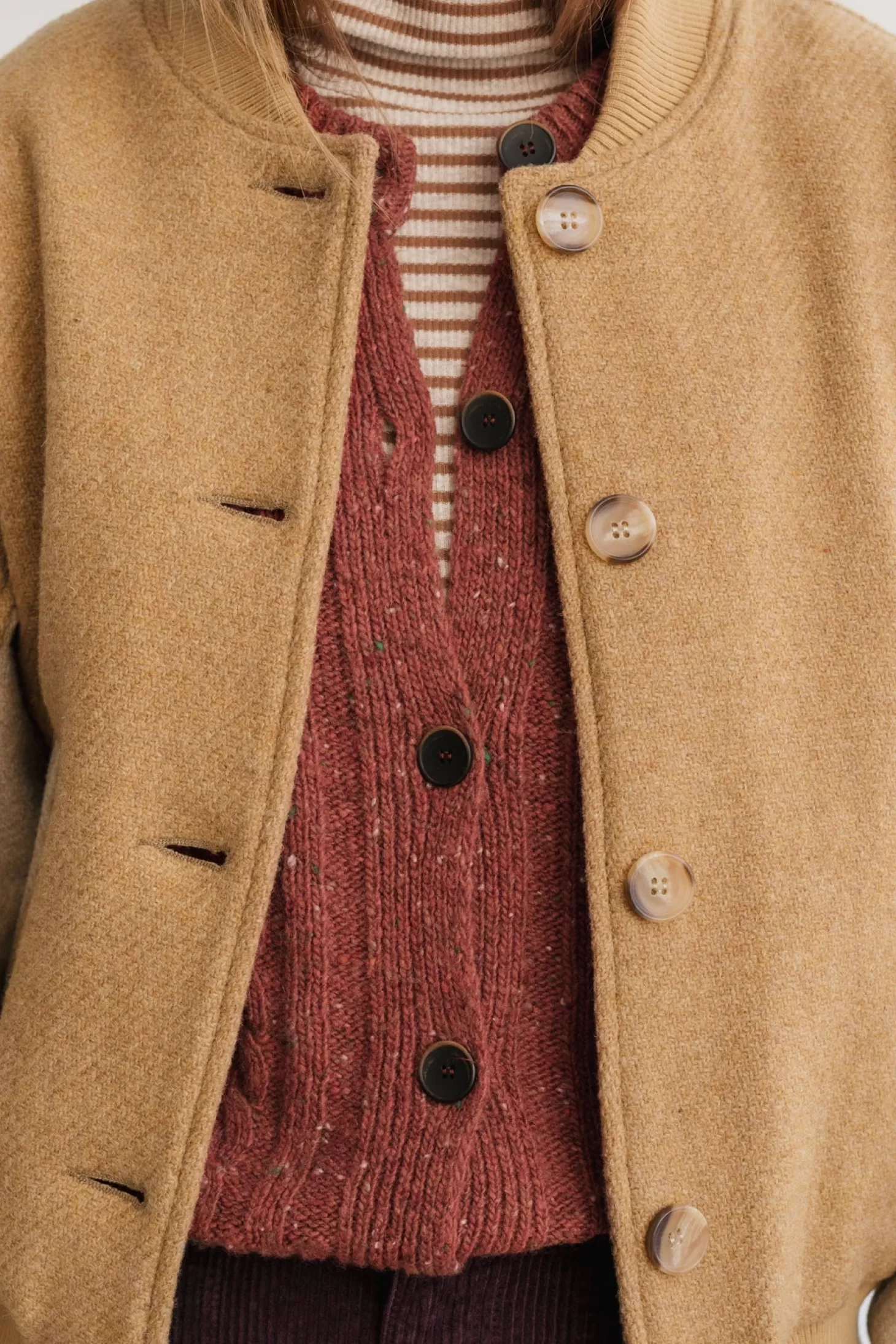 Eine Jacke im College-Stil aus feinstem portugiesischen Stoff, hergestellt aus Shetlandwolle höchster Qualität. Die Coldita hat zwei Vordertaschen und bequeme Rippbündchen.