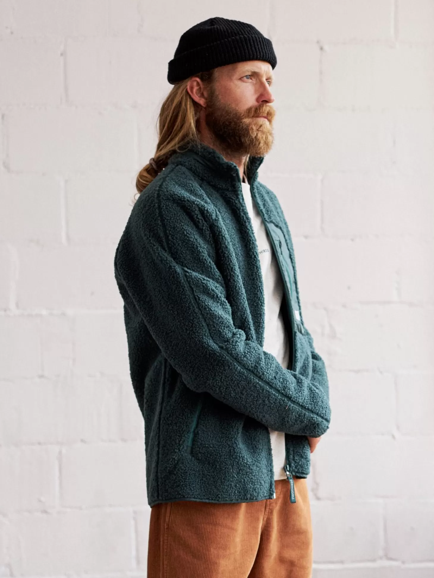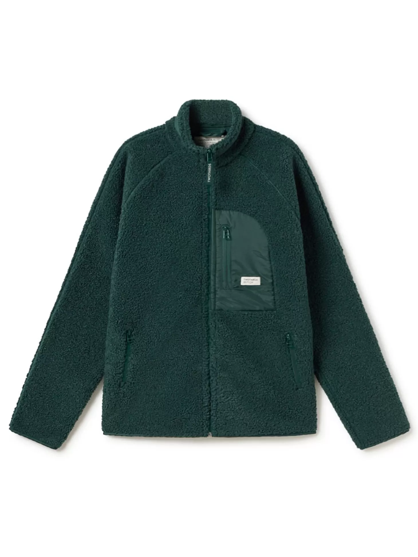 Eine technische Sherpa-Fleecejacke mit warmem, doppelseitigem Material, das sie innen und außen superweich macht. Drei Reißverschlusstaschen, ein hoher Halsausschnitt und Raglanärmel machen sie ausserdem besonders vielseitig.