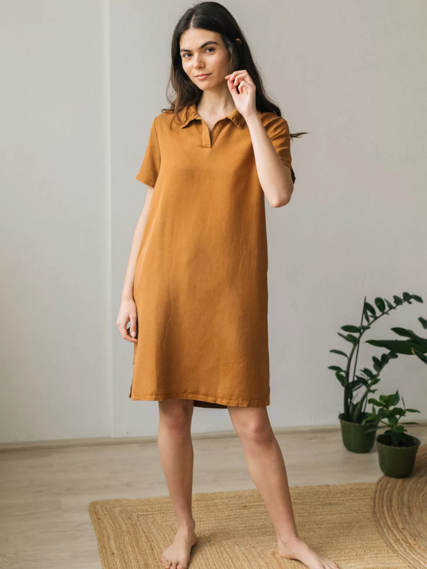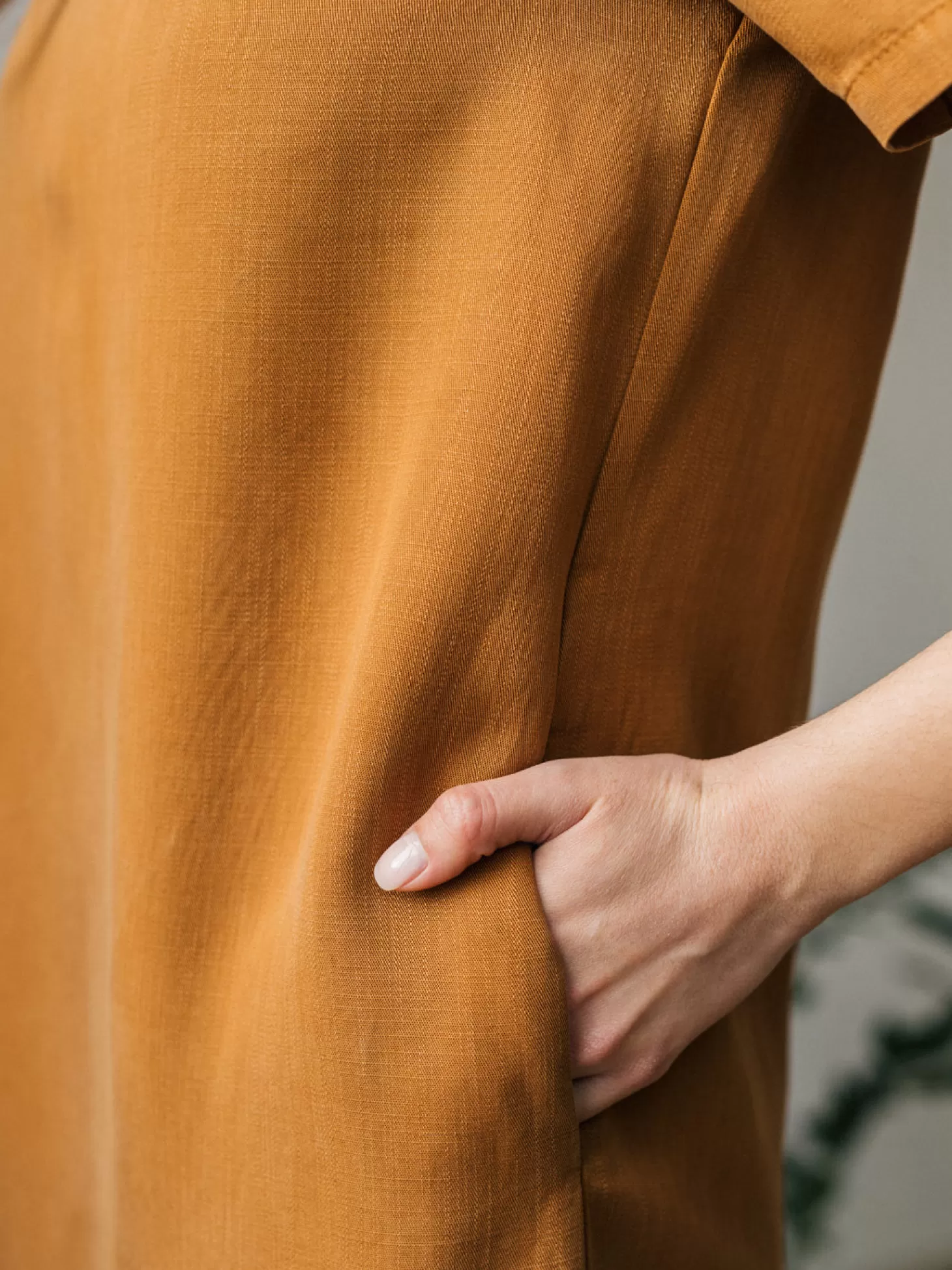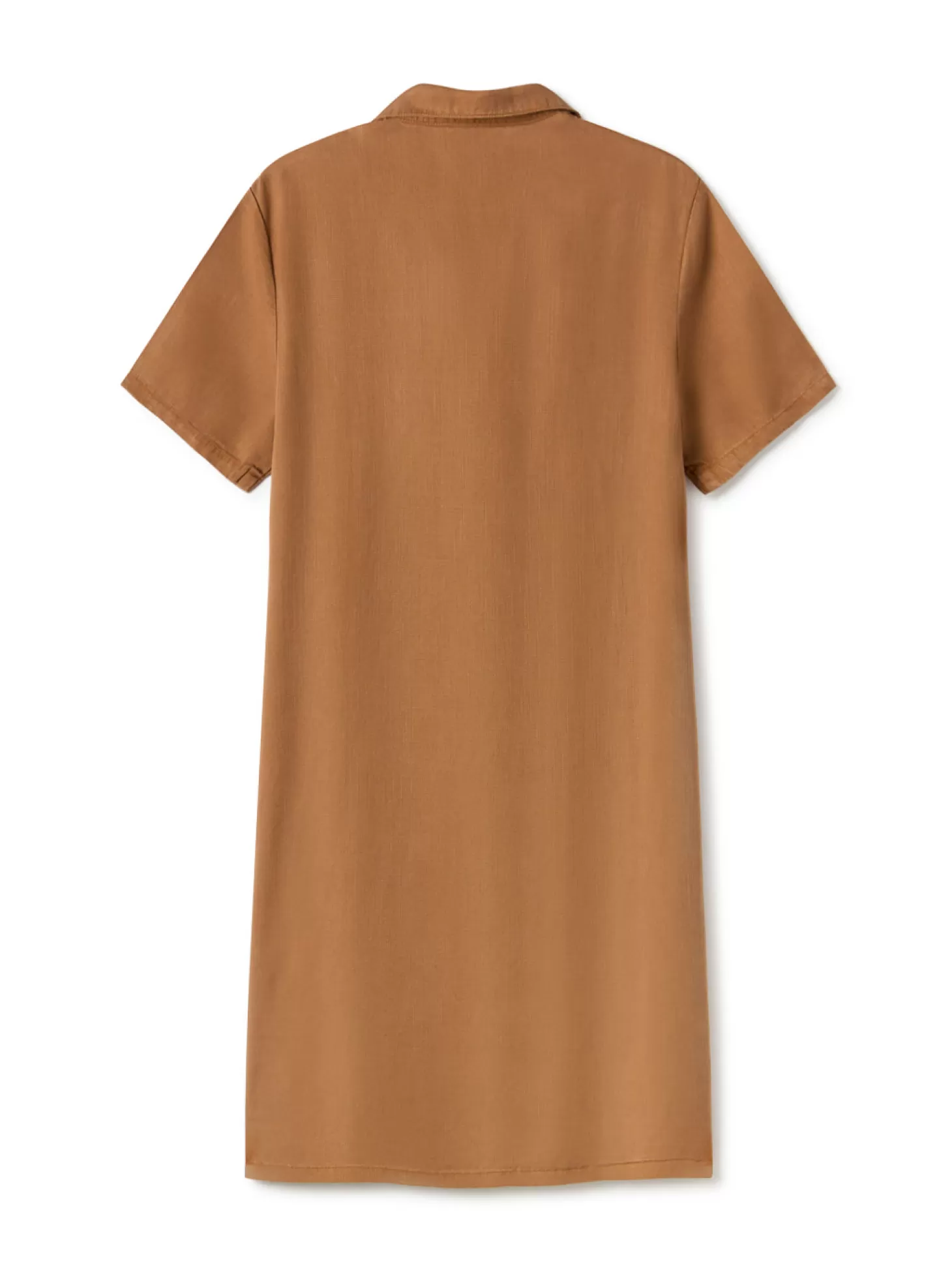 Ginger ist ein tolles Hemdkleid aus weichem und atmungsaktivem Stoff, der zudem auch noch nachhaltig ist. Das Kleid ist mit seitlichen Eingriffstaschen, einem regulären, offenen Kragen und Seitenschlitzen versehen. Es hat eine normale Passform, aber wird nach unten hin lockerer und endet oberhalb der Knie.