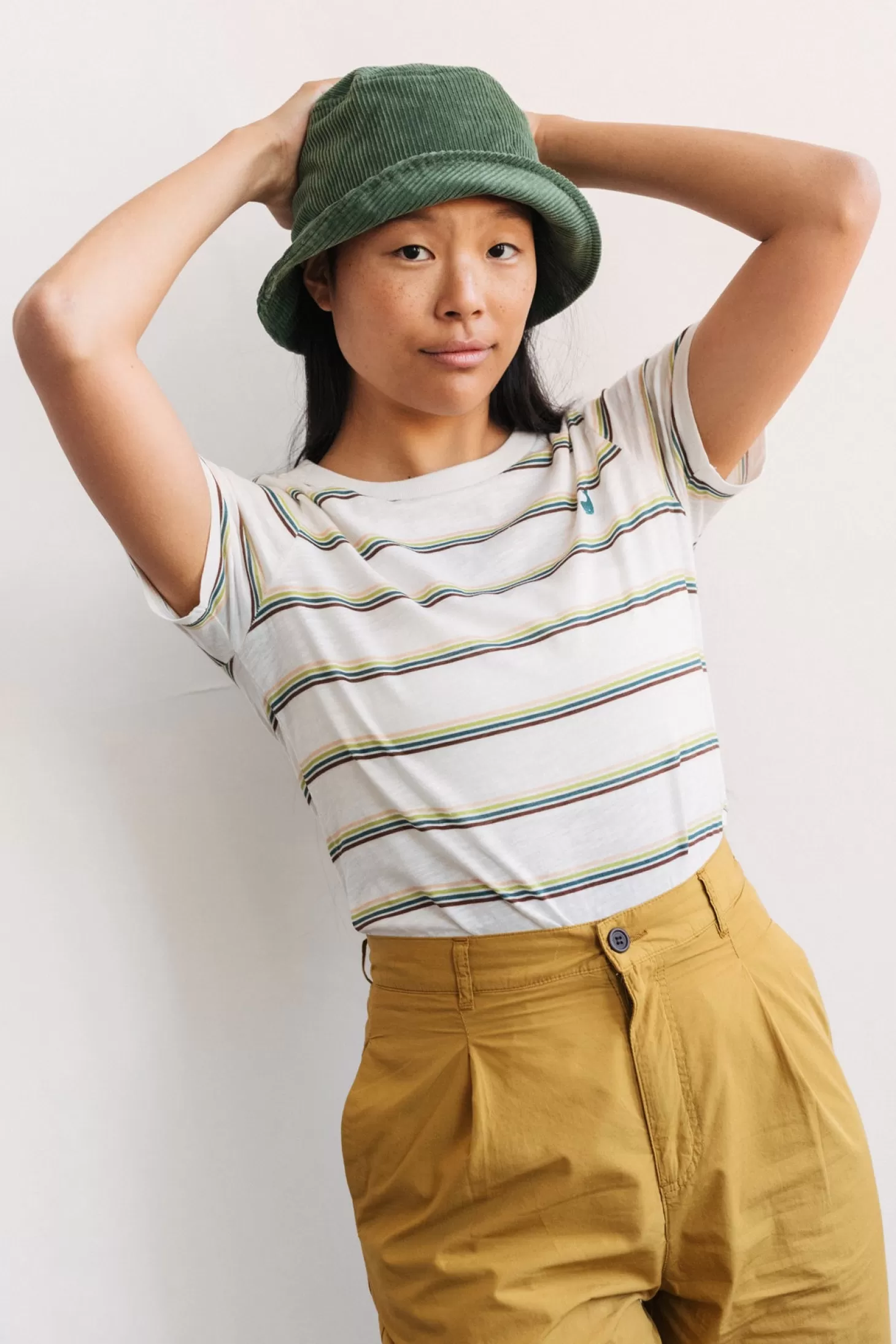 Frühling und Sommer können erst dann richtig beginnen, wenn die Streifen von TWOTHIRDS mit von der Partie sind! Unser beliebtes gesticktes Wal-Logo ist auf dem sanften Bio-Flammengewebe von Puna zu sehen.
