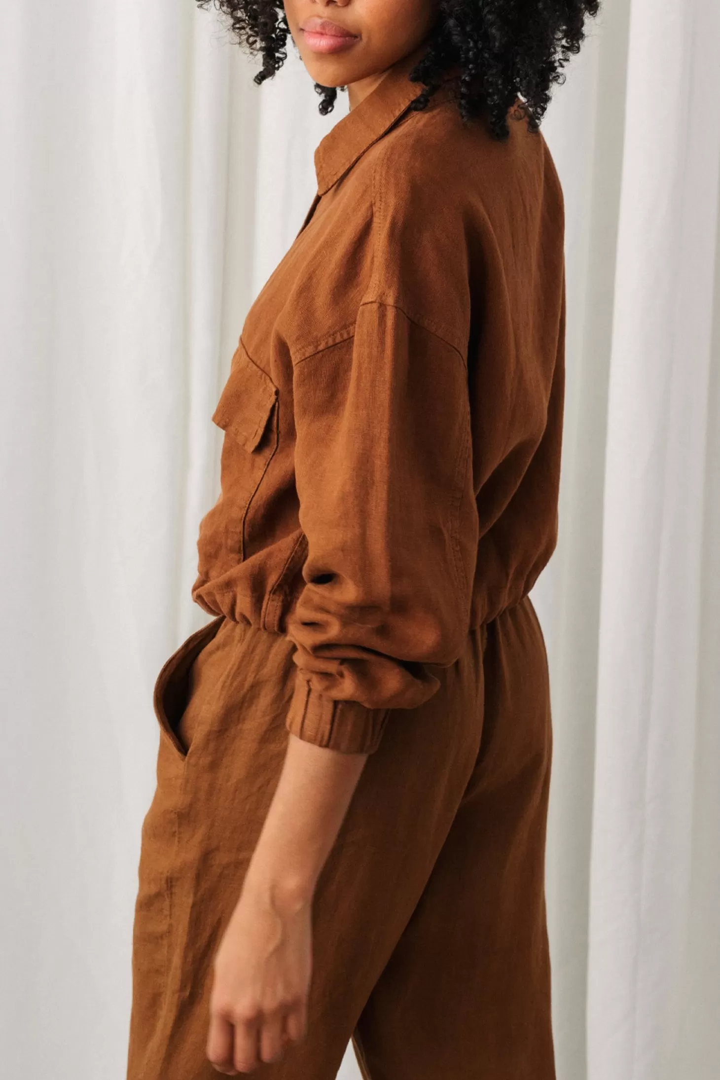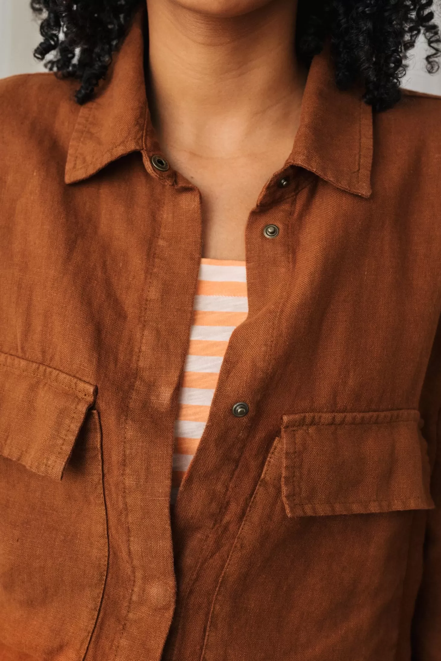 Du wirst es nicht bereuen, deiner nachhaltigen Sommergarderobe ein Leinen-Overshirt hinzugefügt zu haben, insbesondere eines mit zwei Vordertaschen, einem Kordelzug in der Taille, elastischen Bündchen und vielseitigen Druckknöpfen.