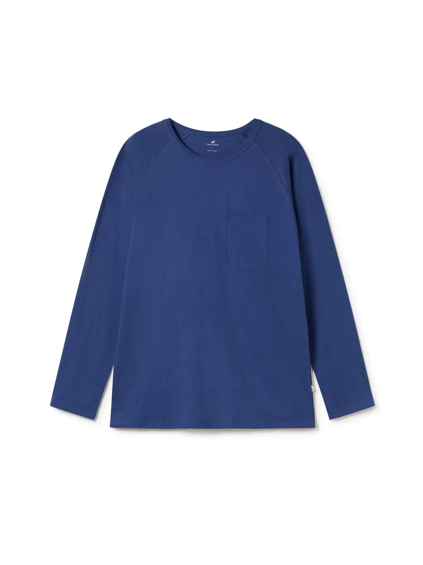Das Mitkof ist ein langärmeliges, nachhaltiges Oberteil, dessen Schönheit in der Schlichtheit liegt. Es hat eine einzelne Brusttasche, Raglanärmel und einen gerippten Halsausschnitt, alles aus weichem und sanftem Stoff.